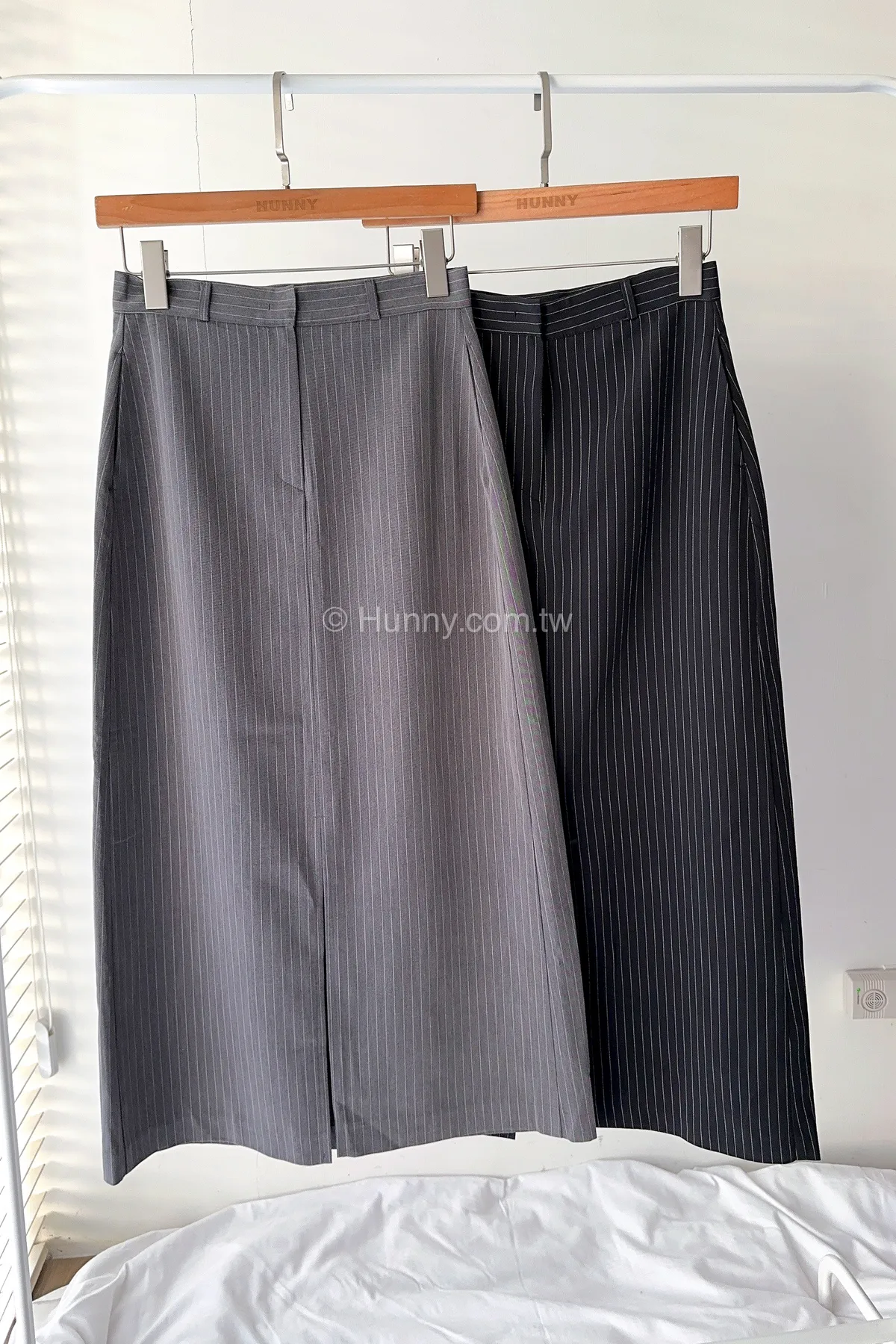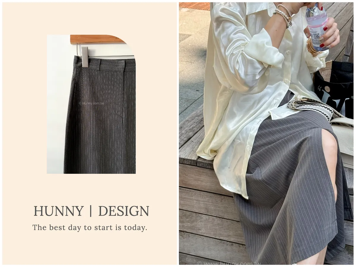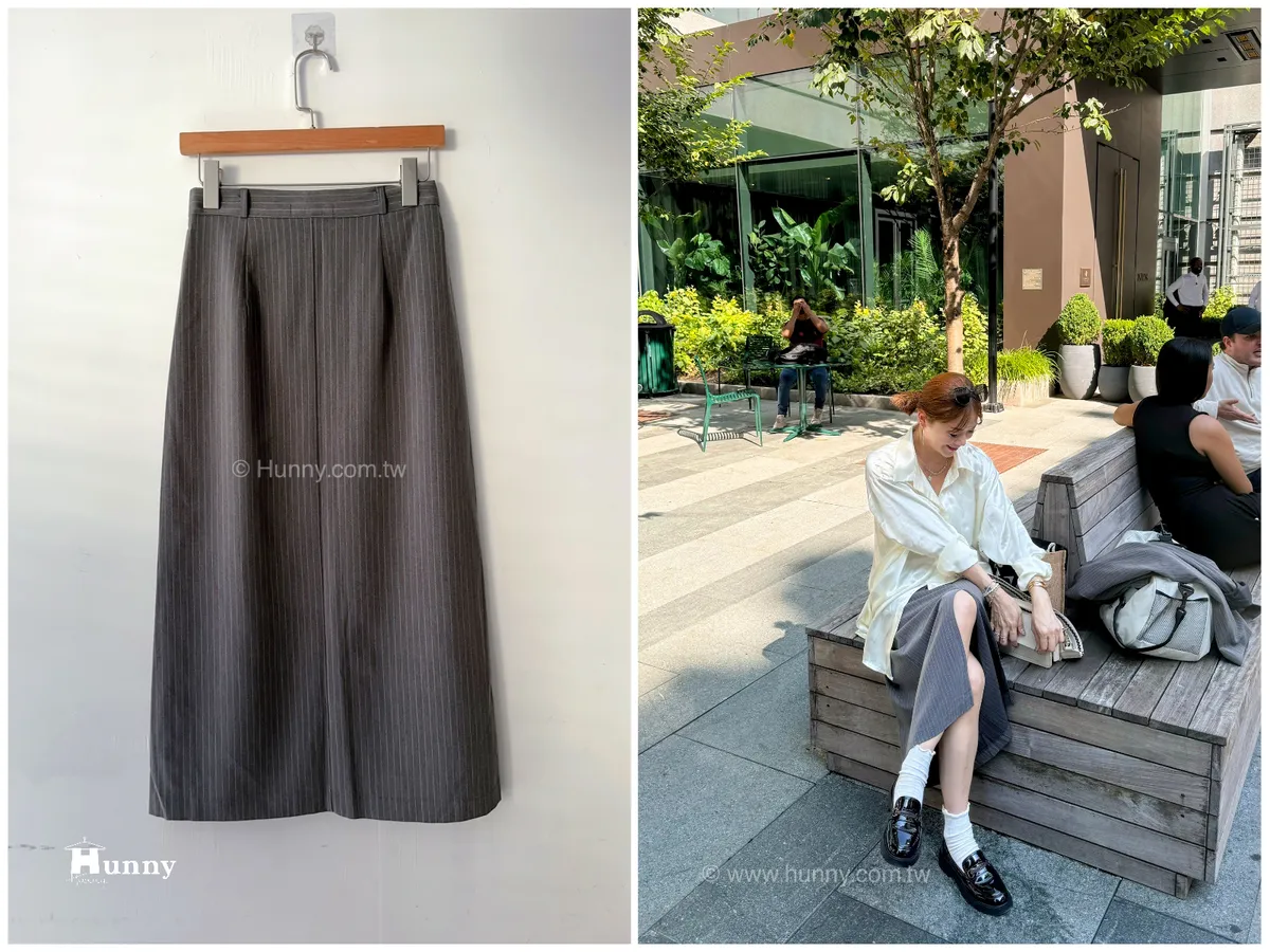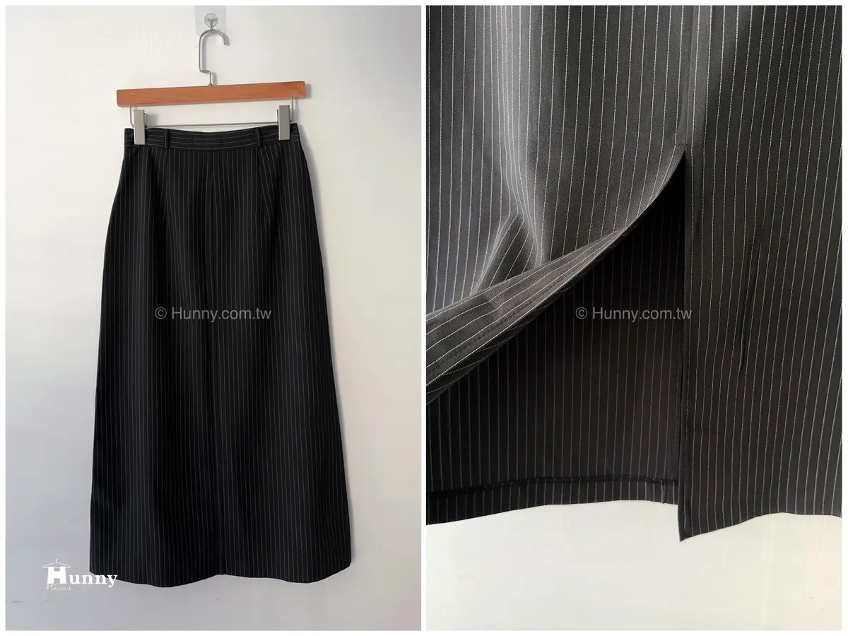 HUNNY573 獨家 份量感西裝棉高級料子直條鉛筆裙 黑/灰