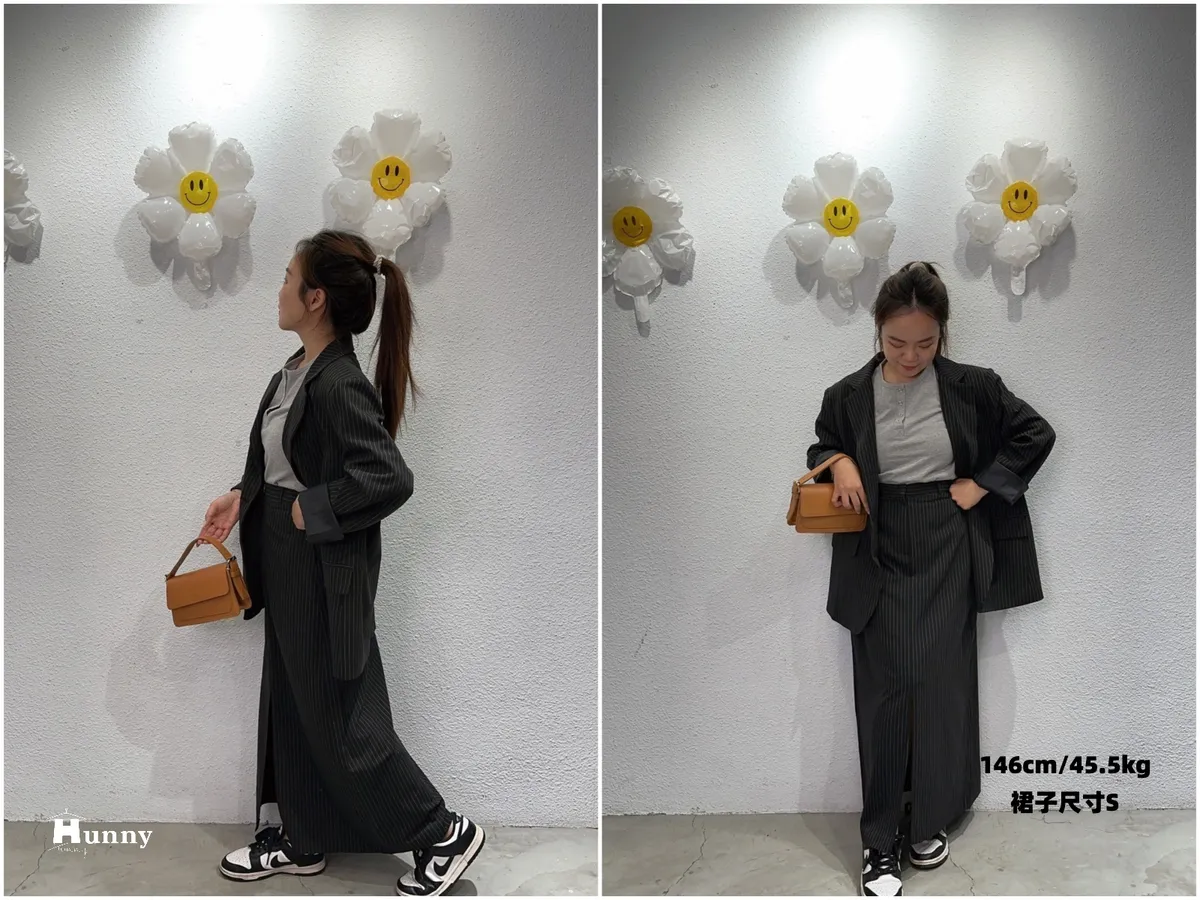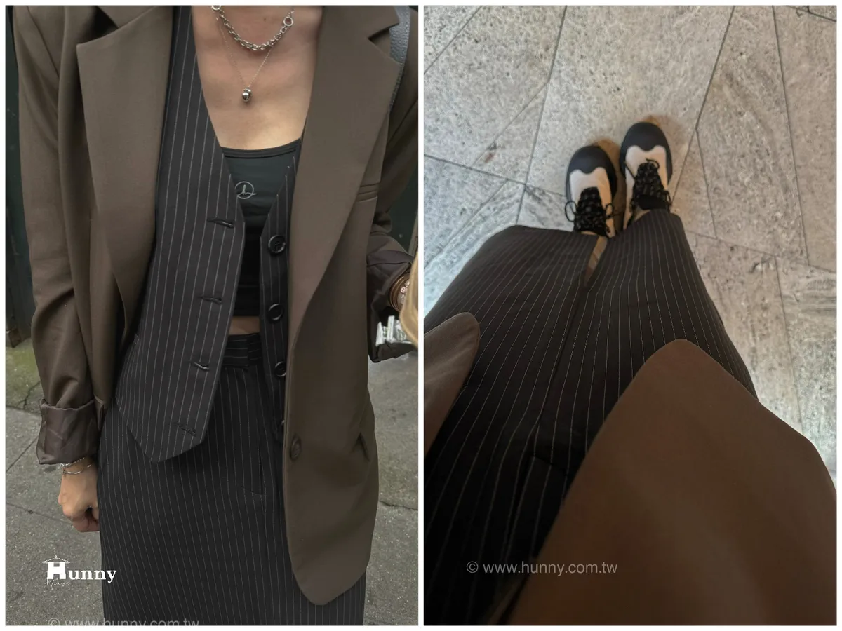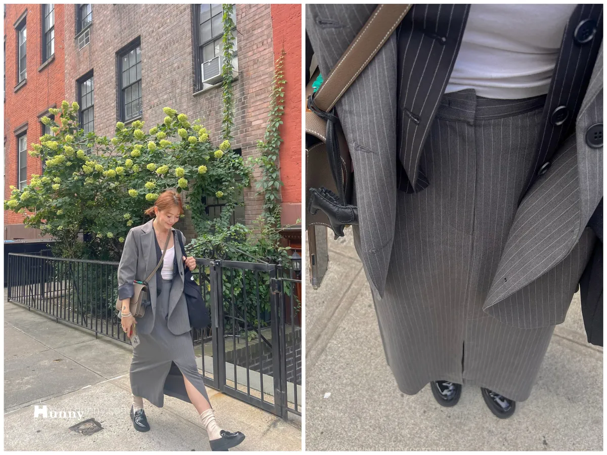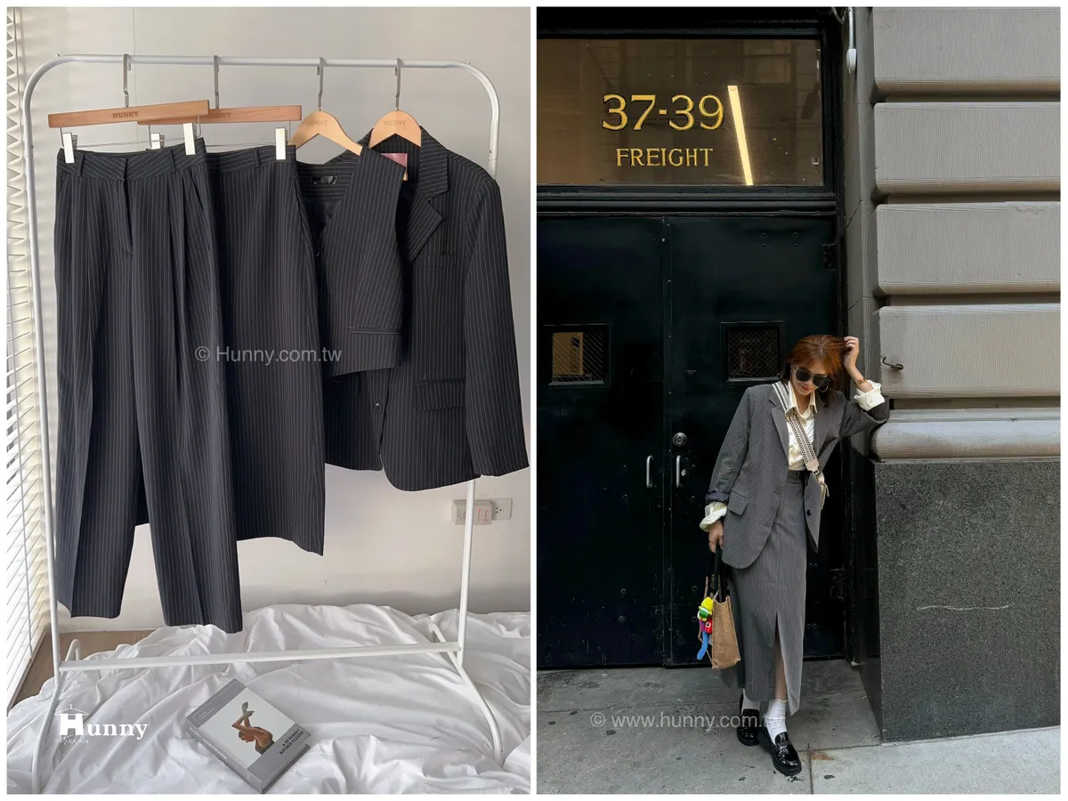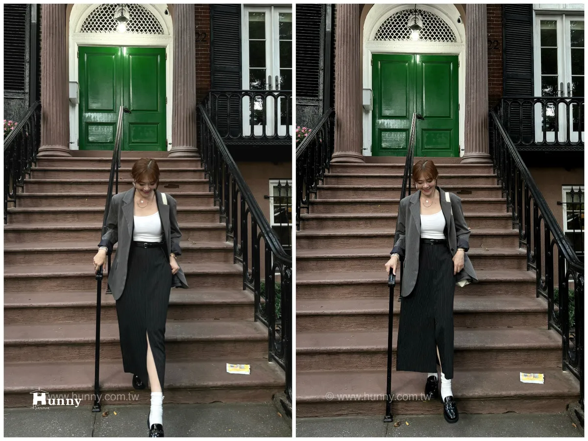 HUNNY573 獨家 份量感西裝棉高級料子直條鉛筆裙 黑/灰