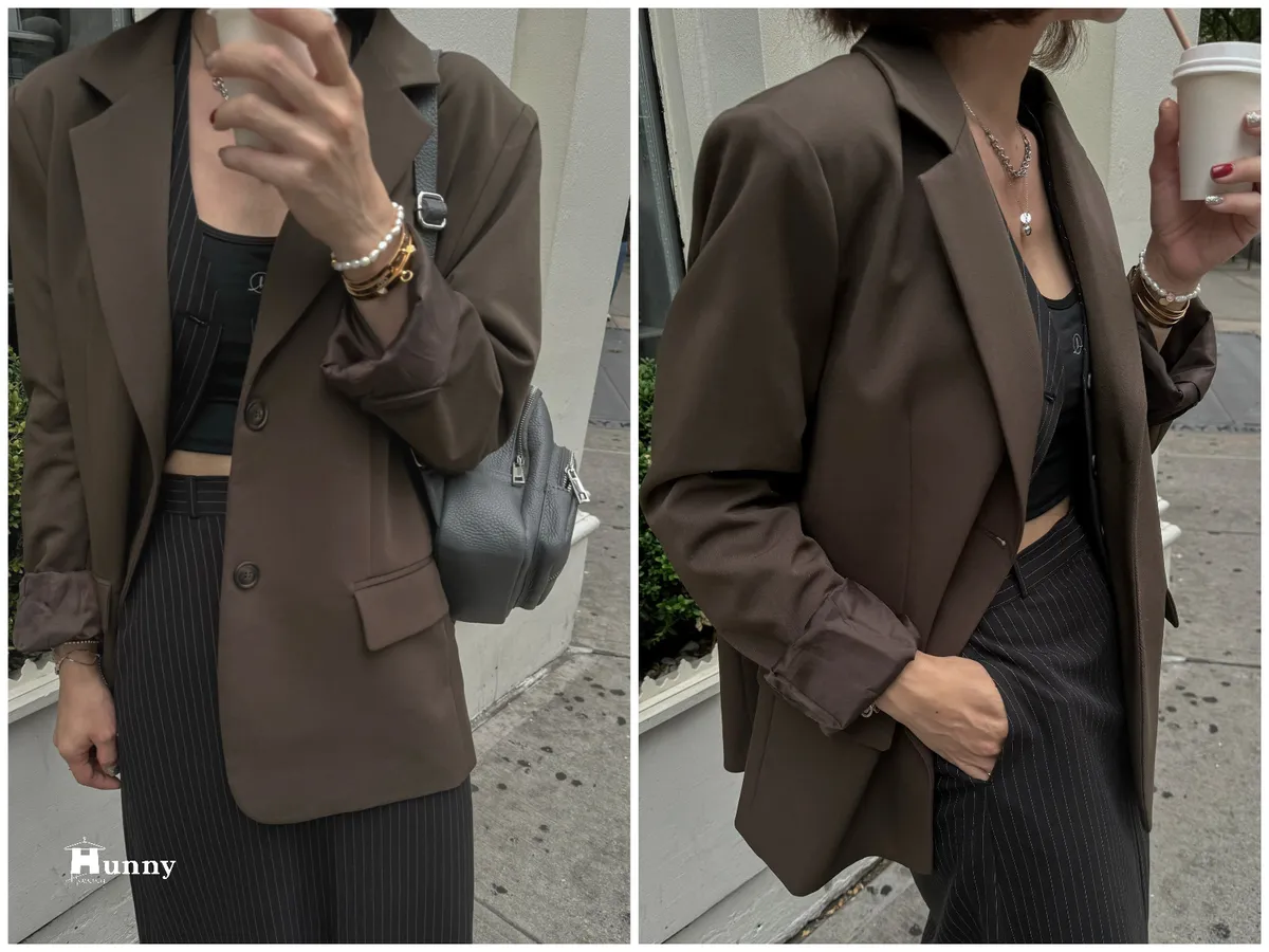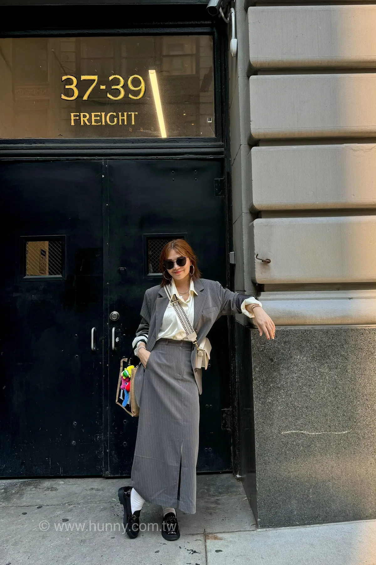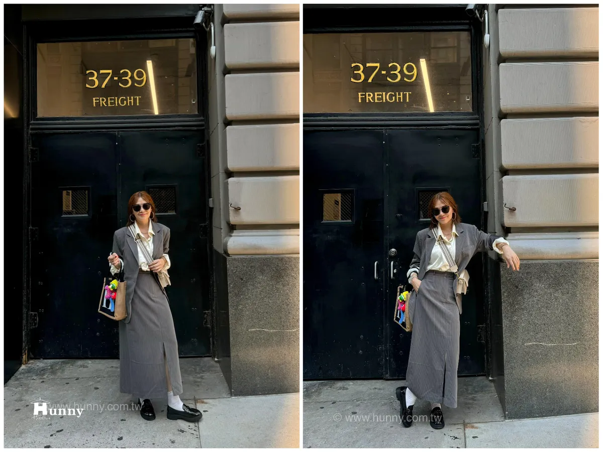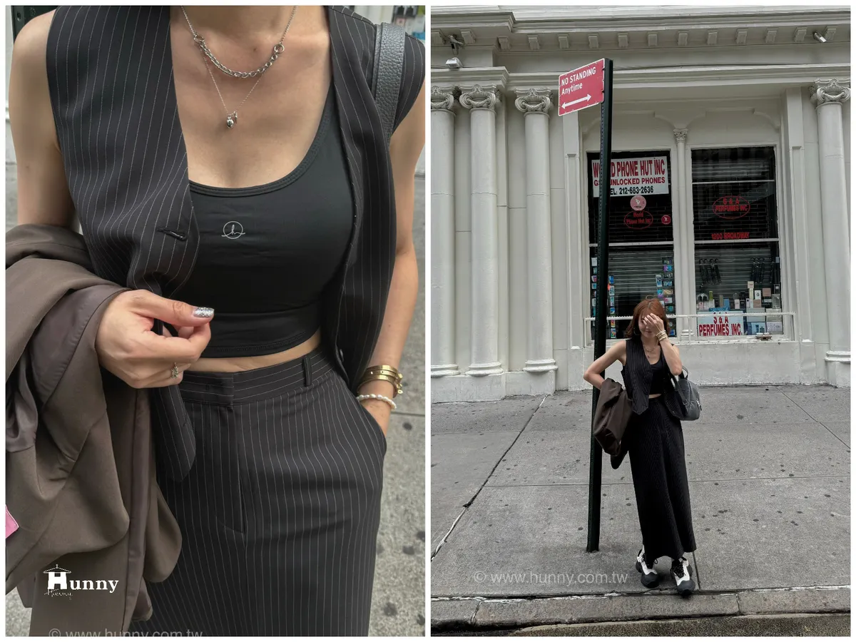 HUNNY573 獨家 份量感西裝棉高級料子直條鉛筆裙 黑/灰