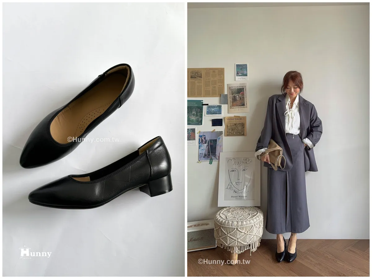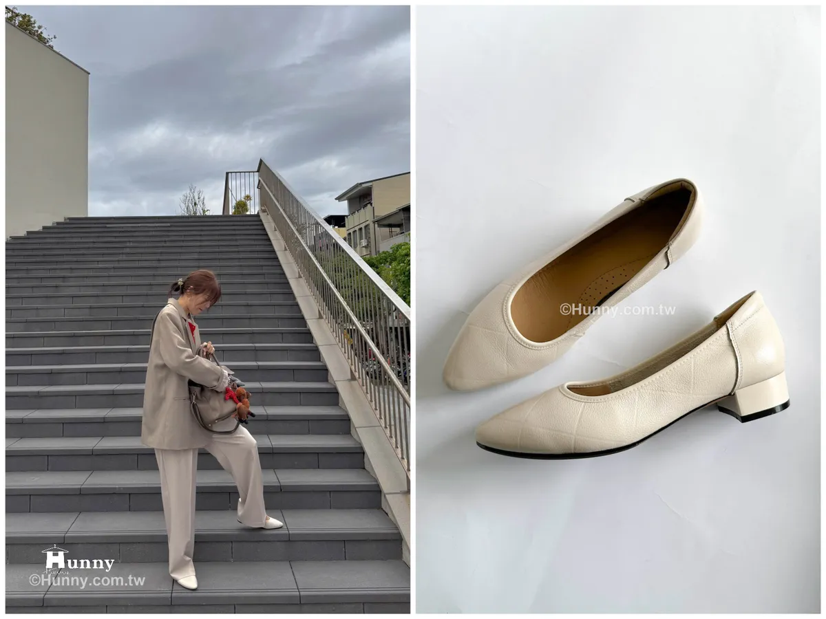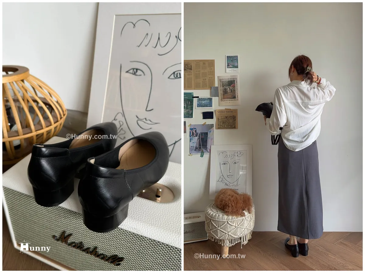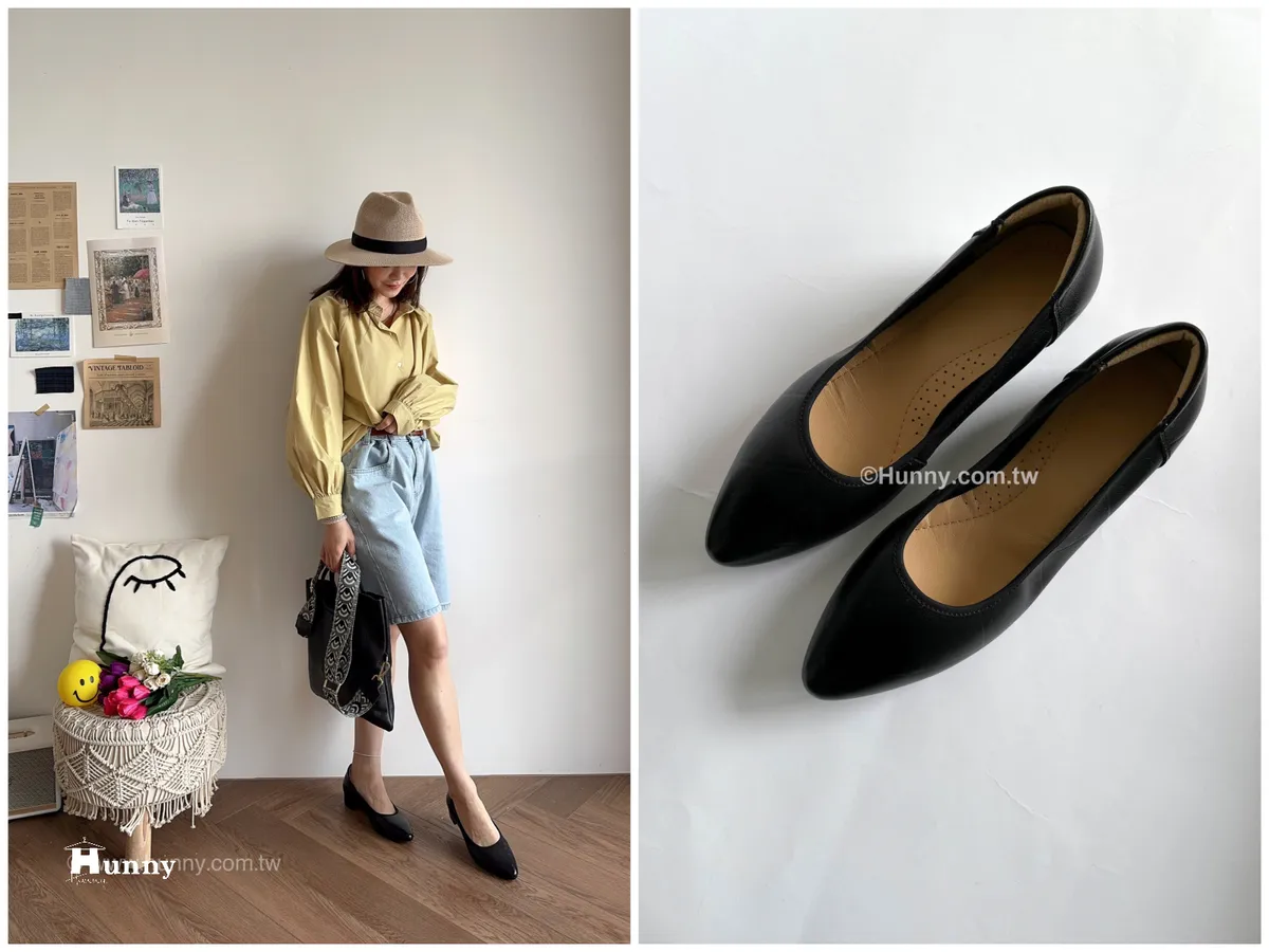 HUNNY670 獨家!巴黎香頌菱形壓紋羊皮低跟鞋 黑/杏 正常版