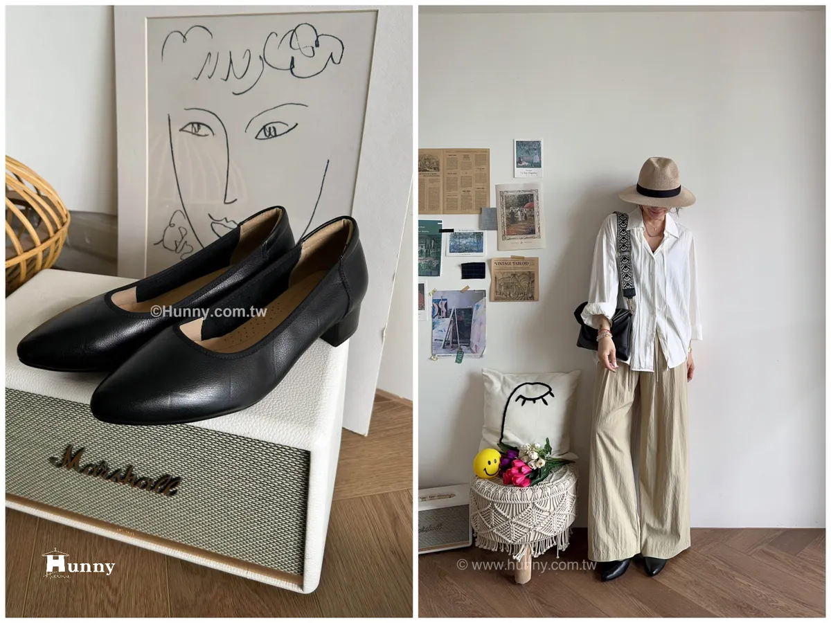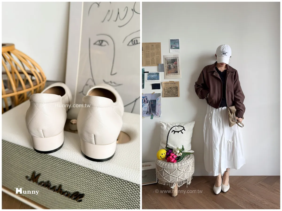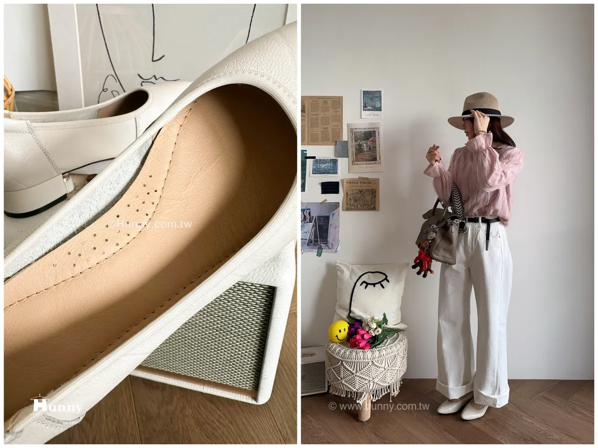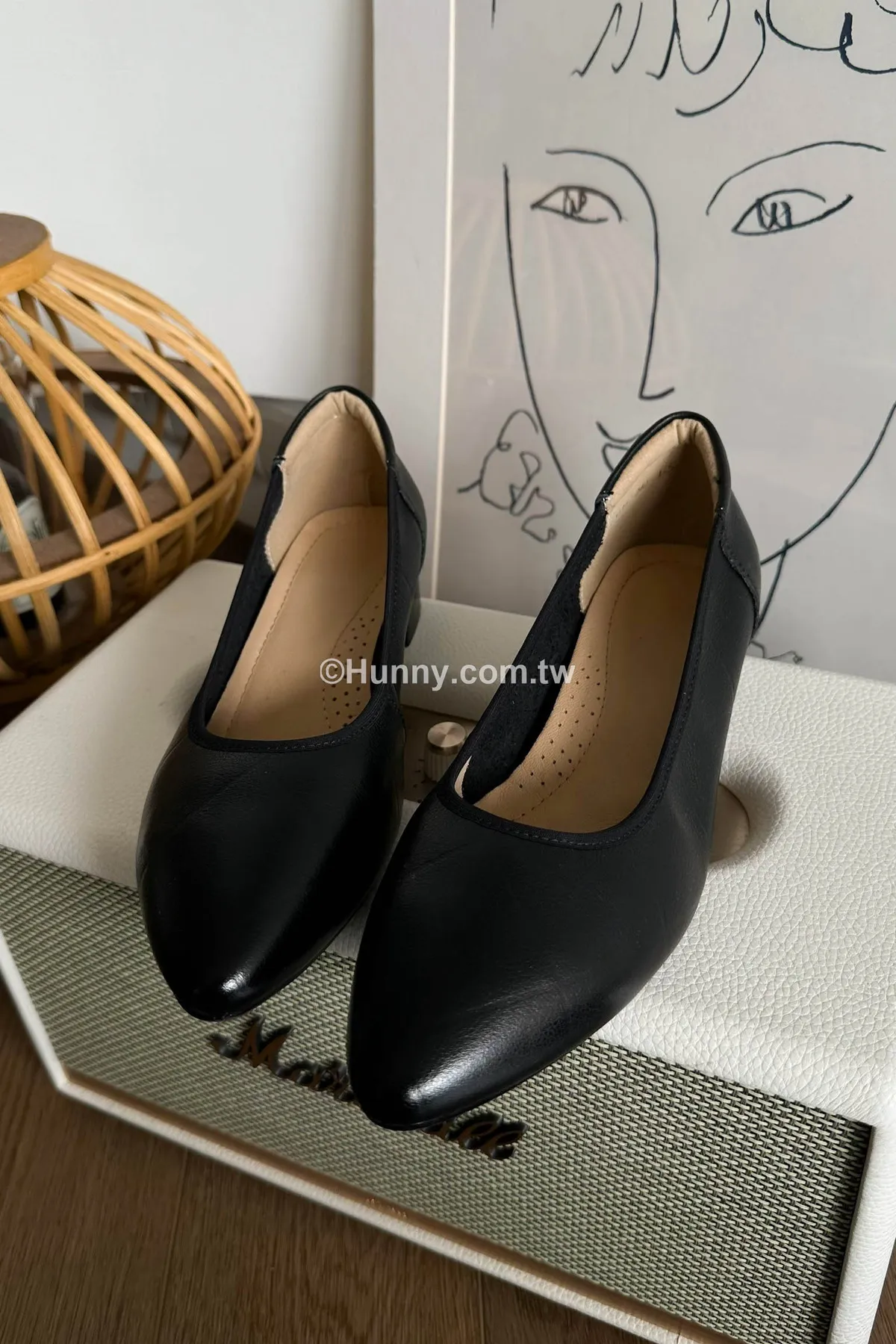 HUNNY670 獨家!巴黎香頌菱形壓紋羊皮低跟鞋 黑/杏 正常版
