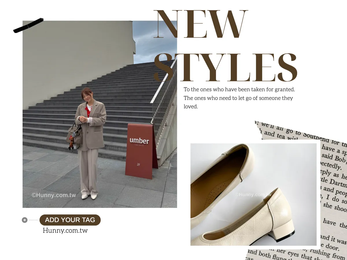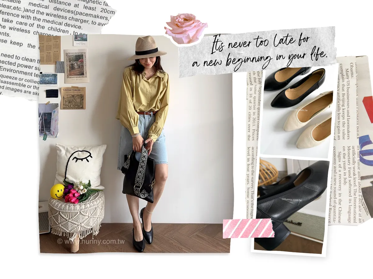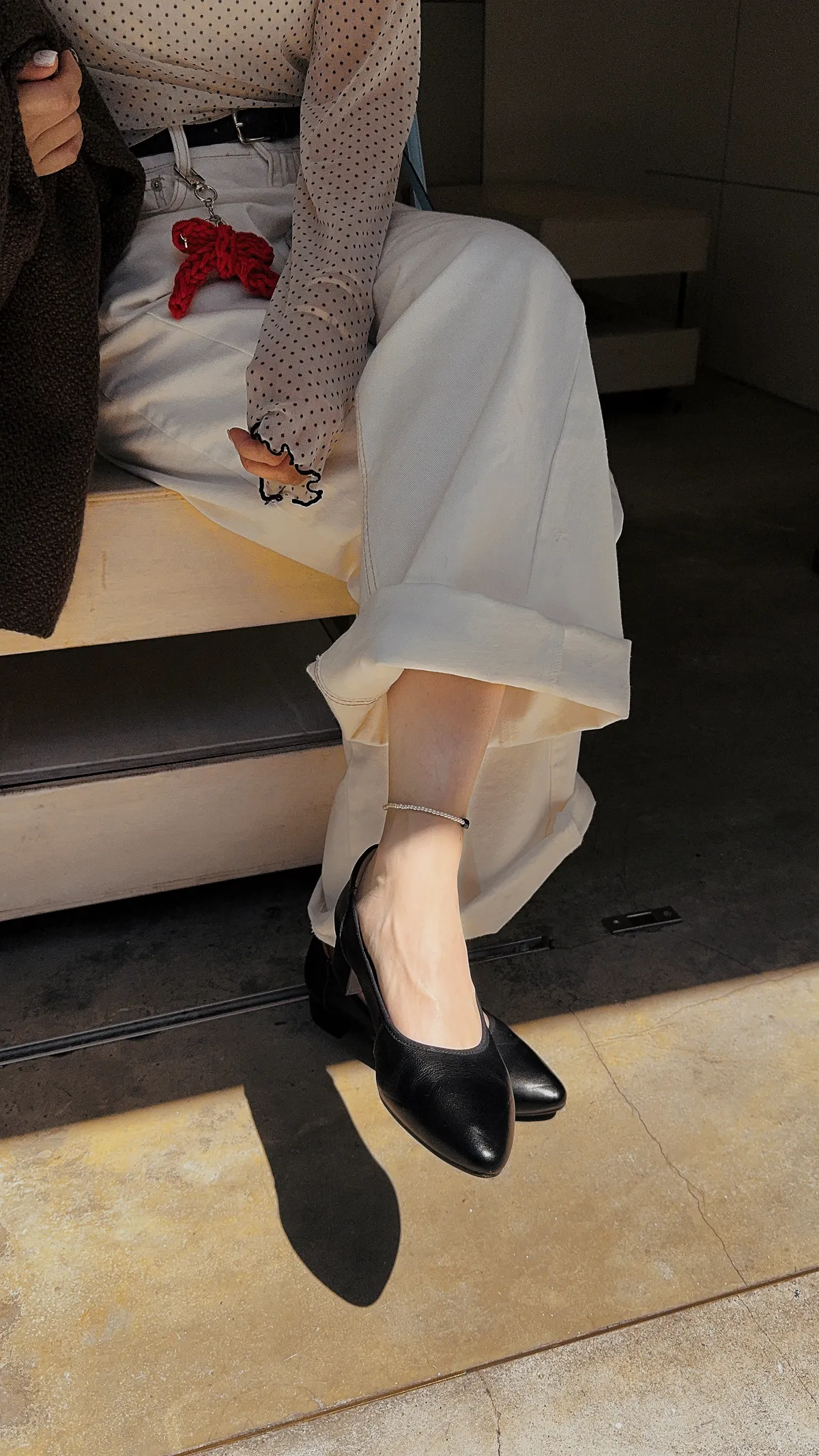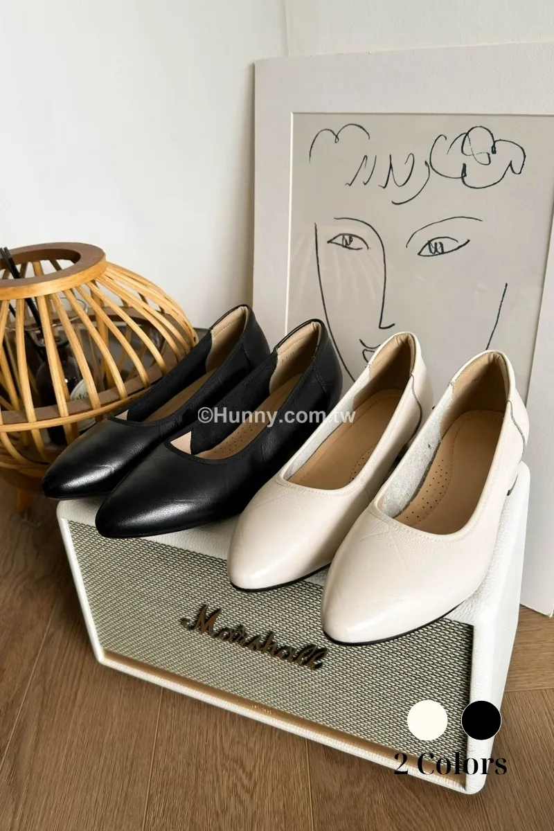 HUNNY670 獨家!巴黎香頌菱形壓紋羊皮低跟鞋 黑/杏 正常版