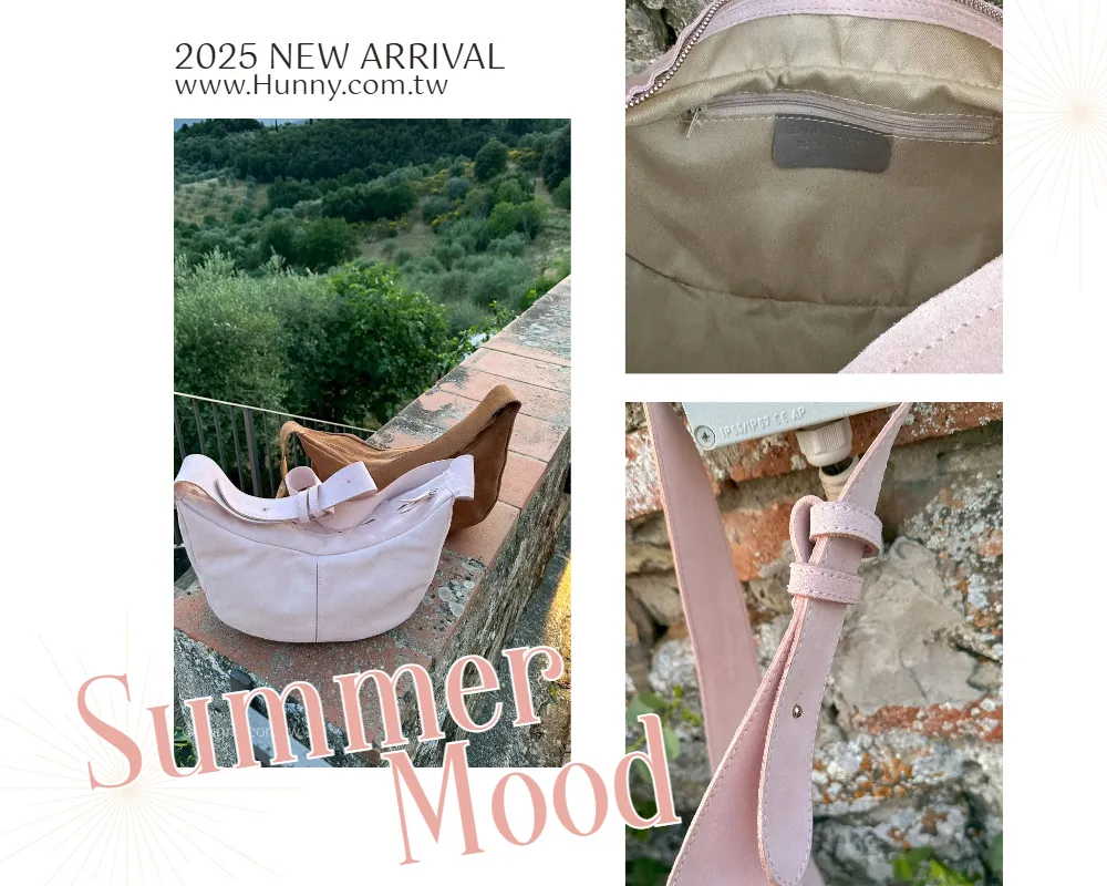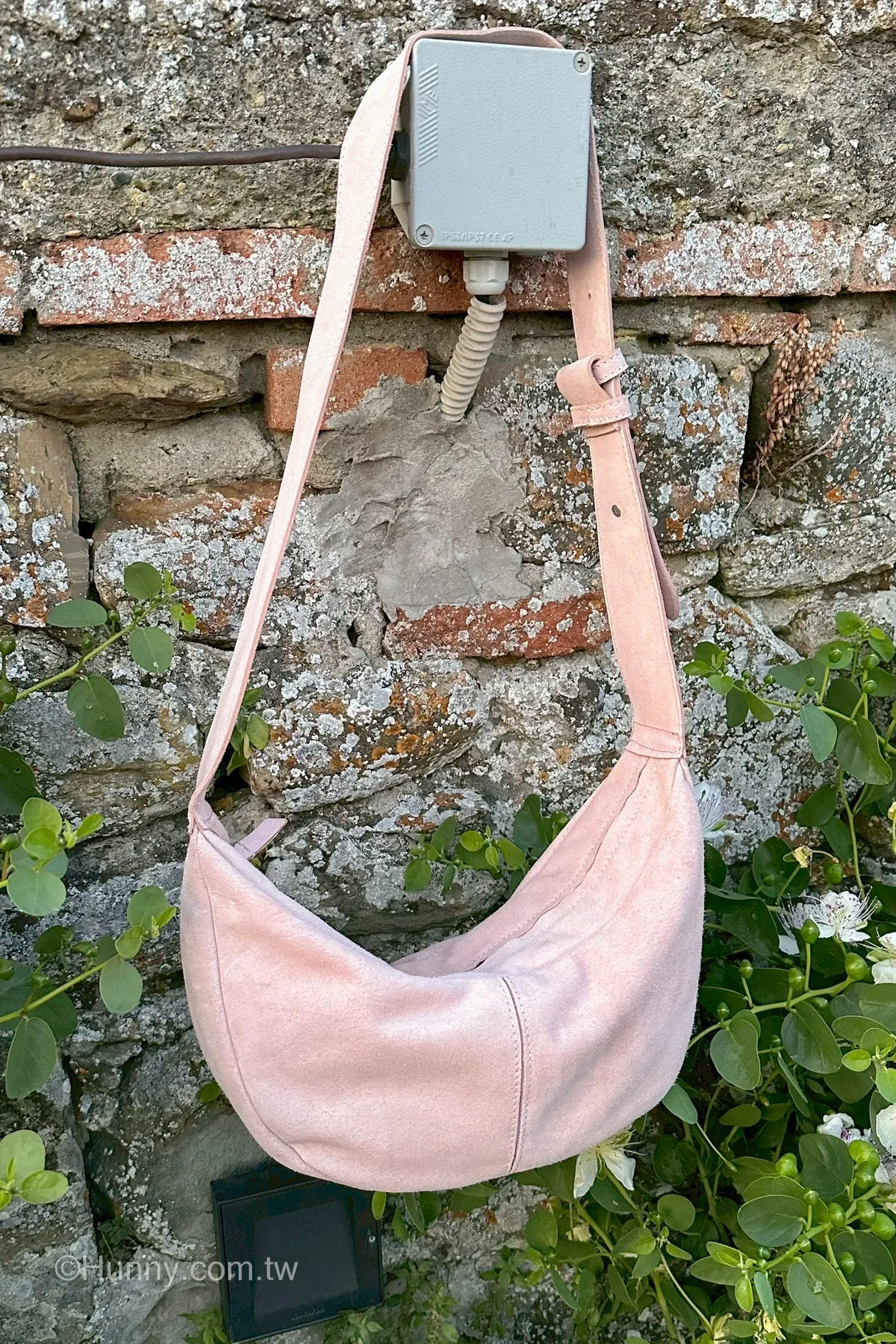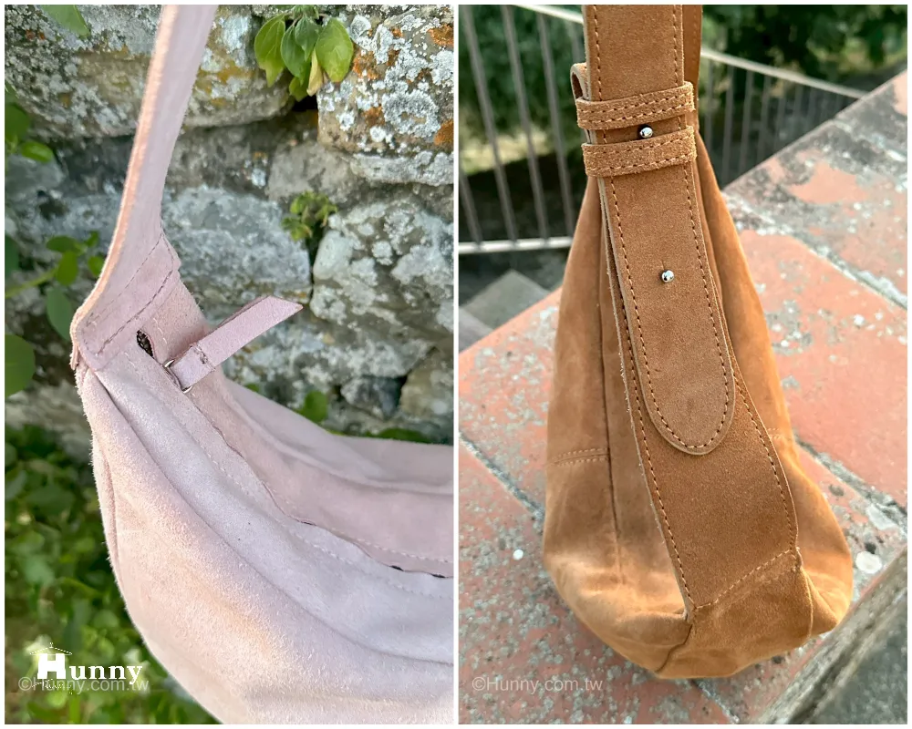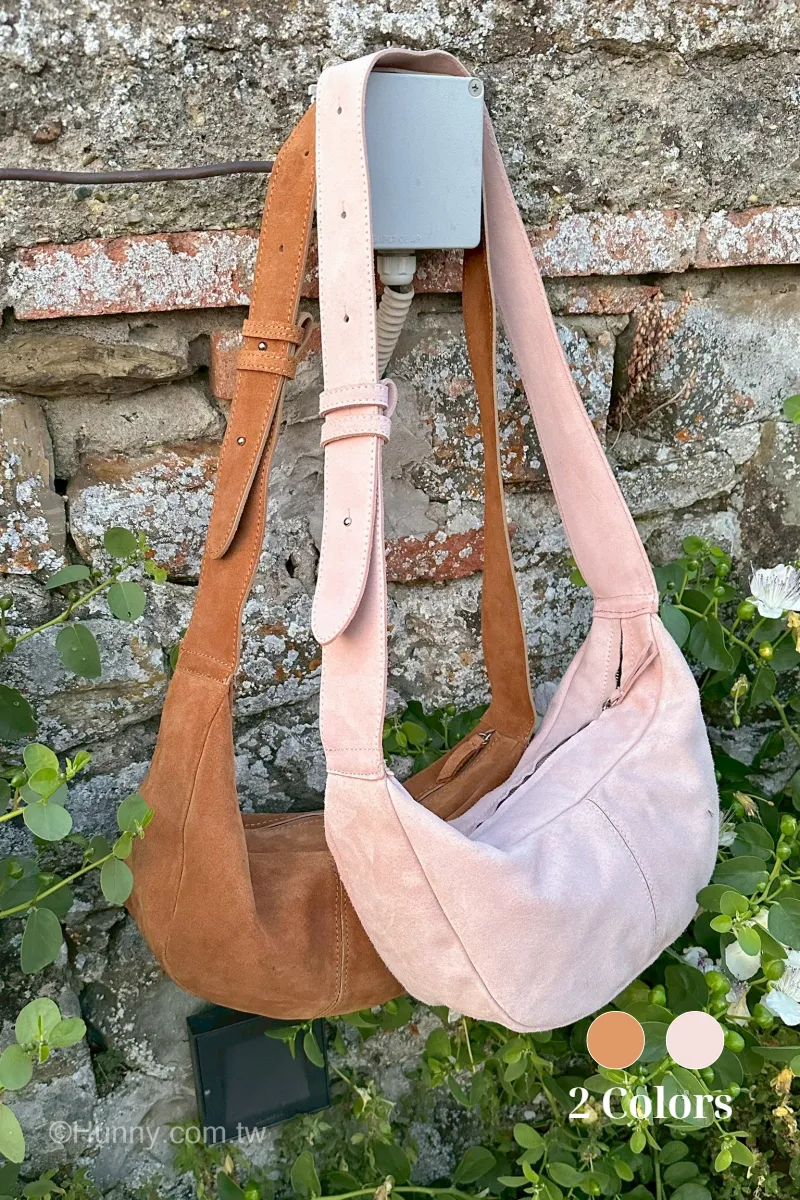 Hunny714 italy義大利麂皮絨面皮革 mocca半月包 粉現貨