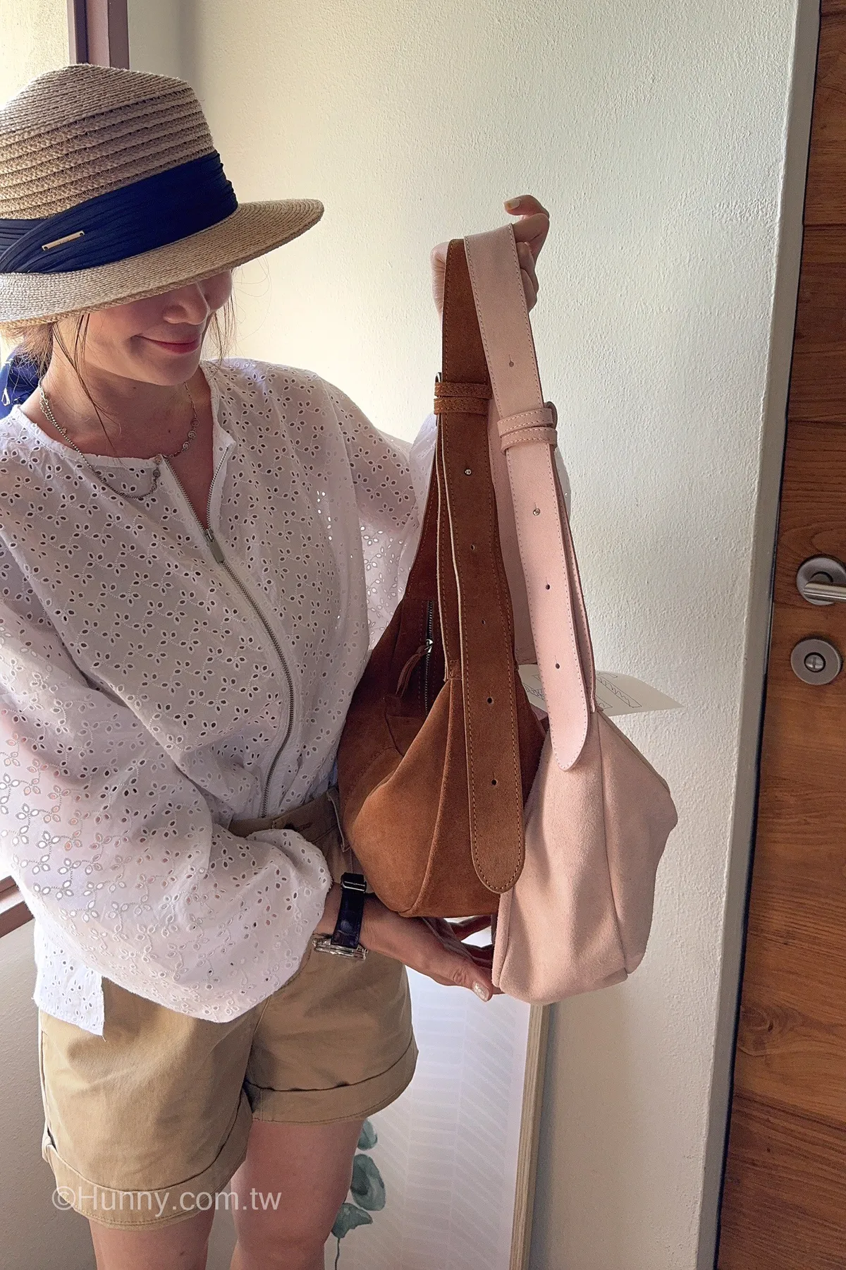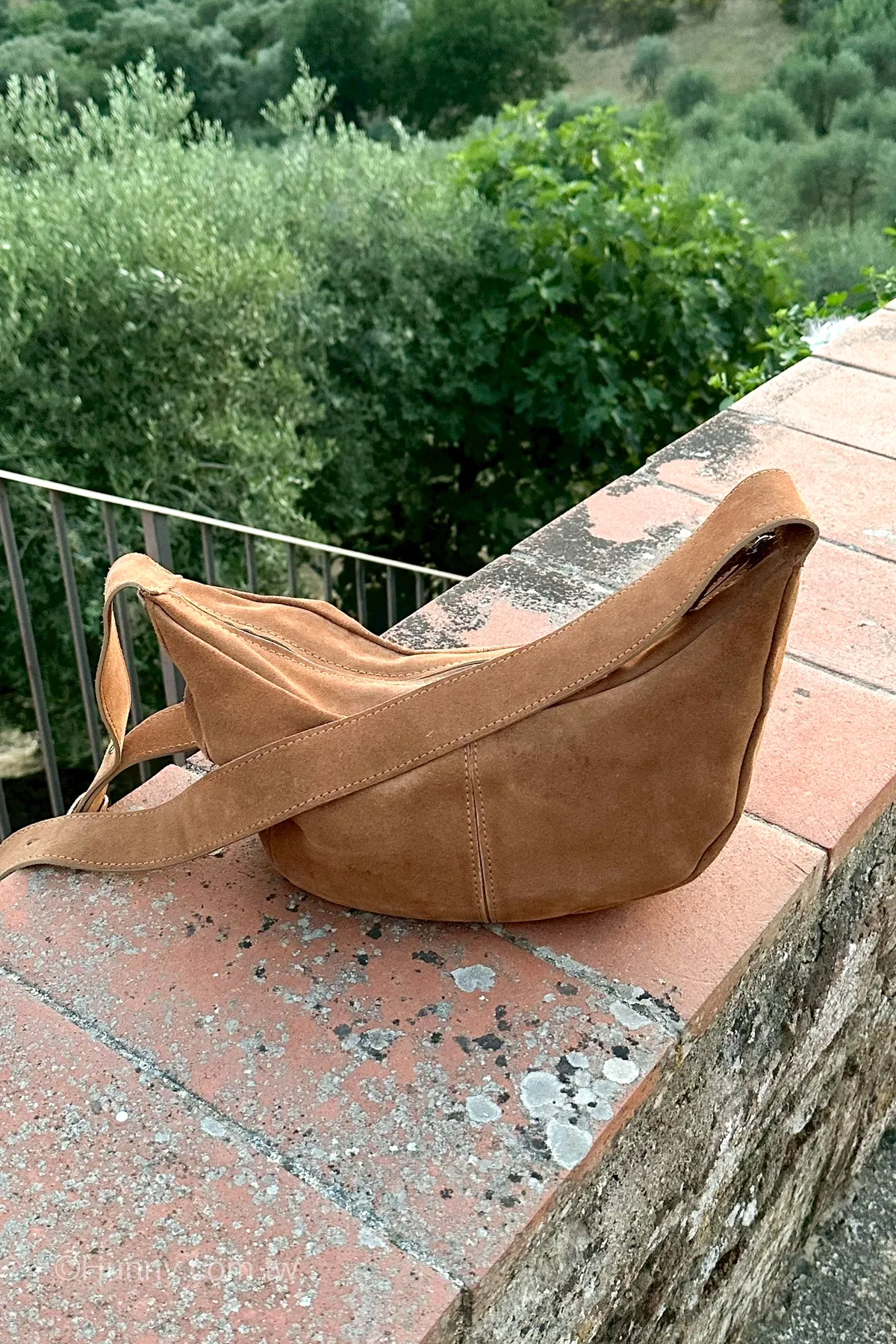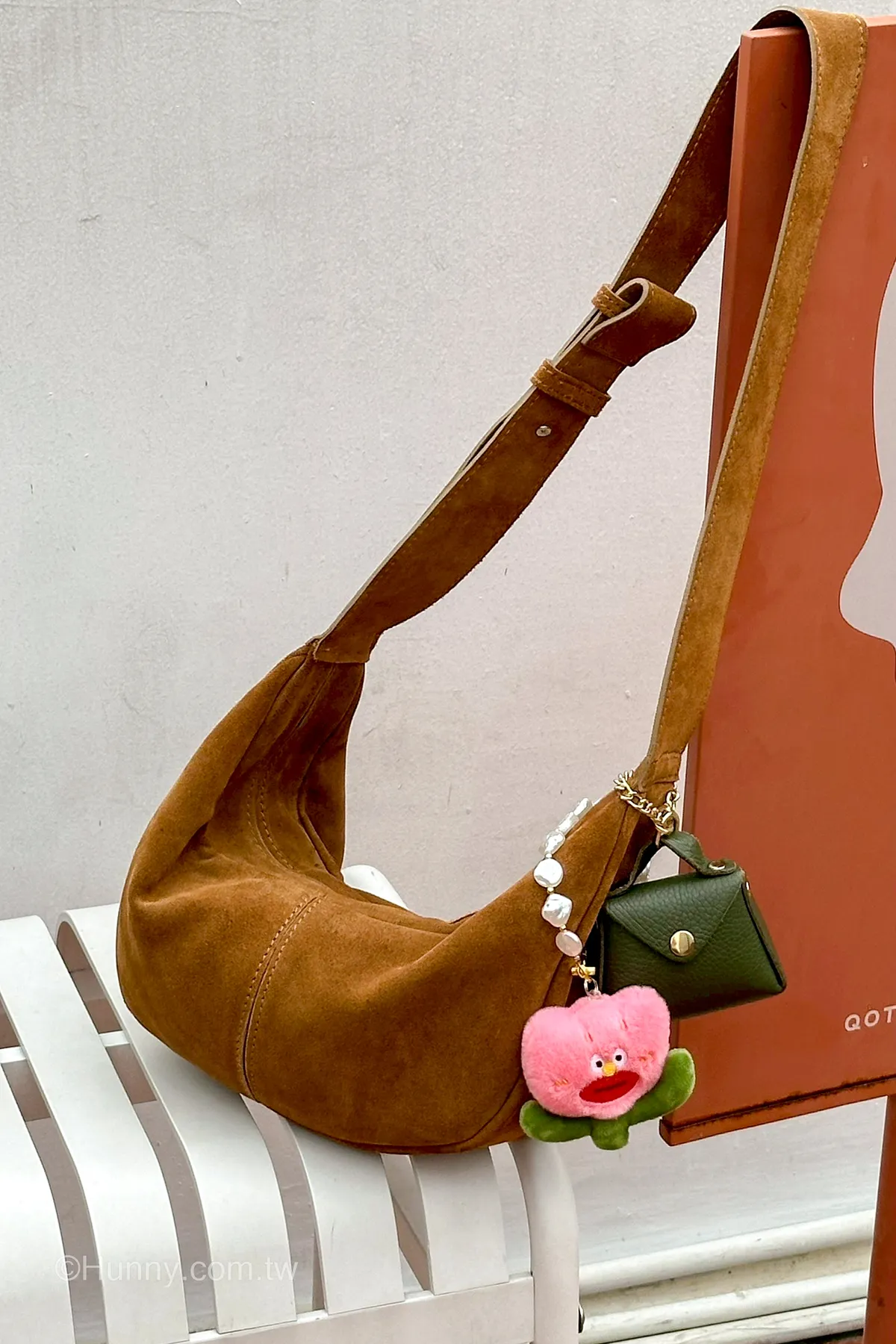 Hunny714 italy義大利麂皮絨面皮革 mocca半月包 粉現貨
