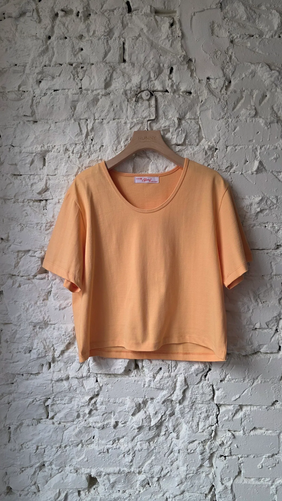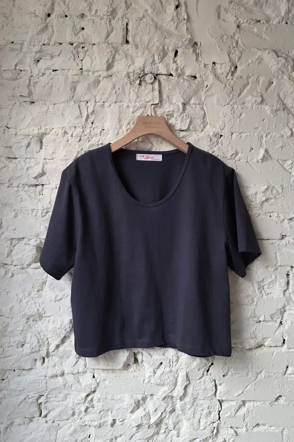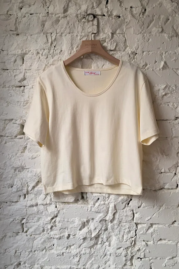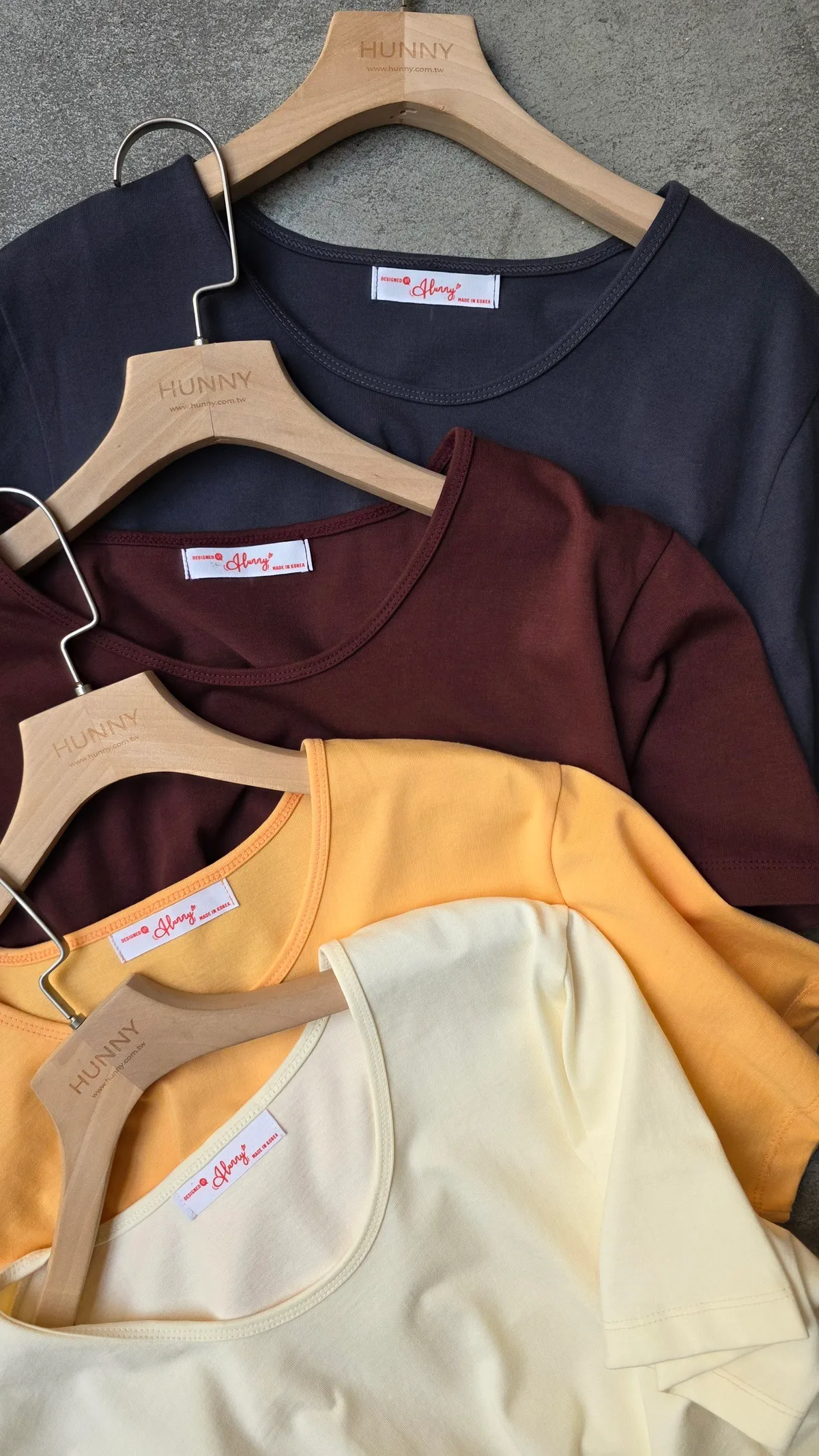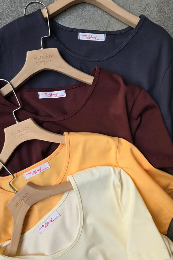 HUNNY812 獨家設計 漂亮u領高磅棉短t 墨/酒紅/黃/杏