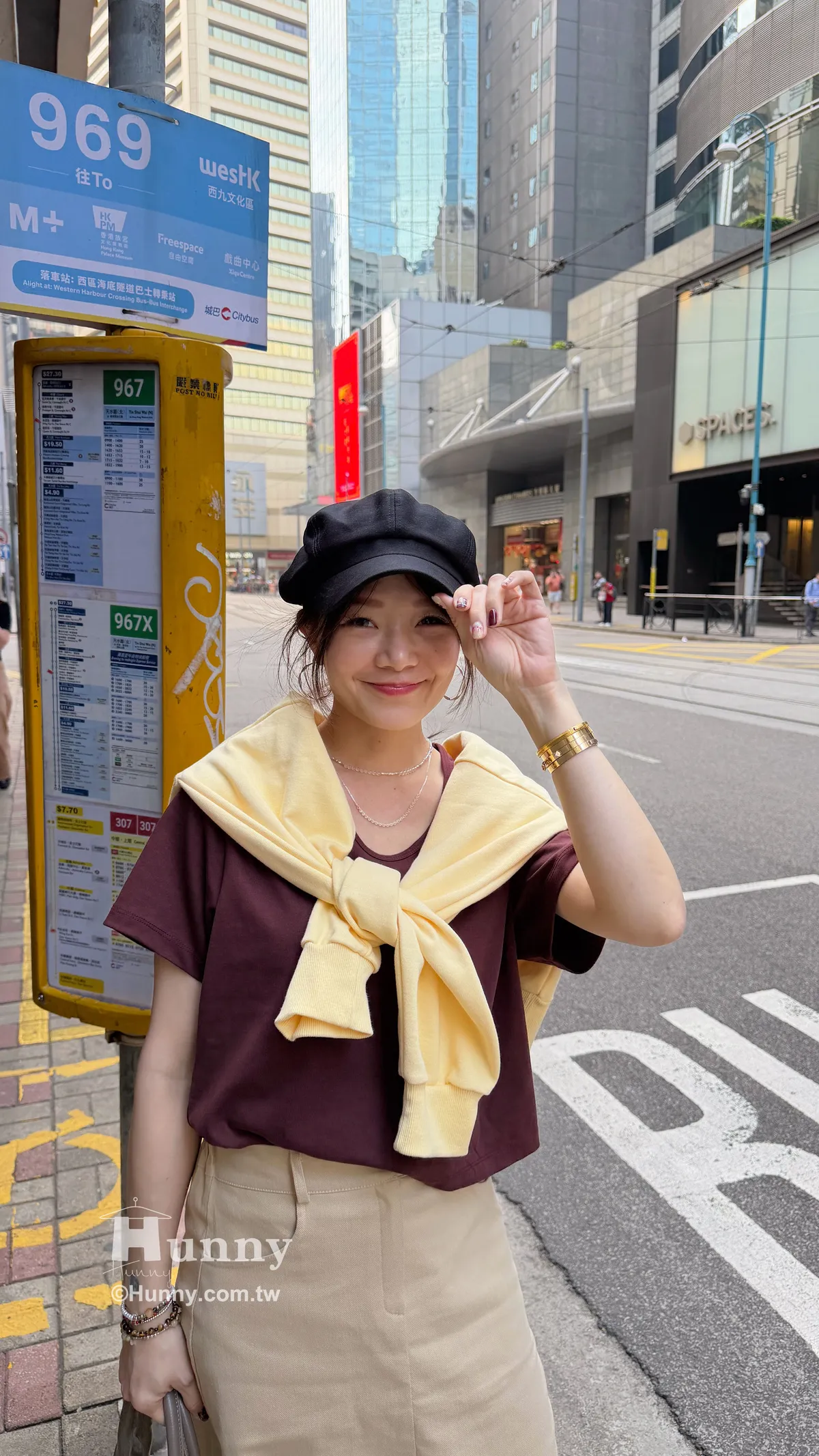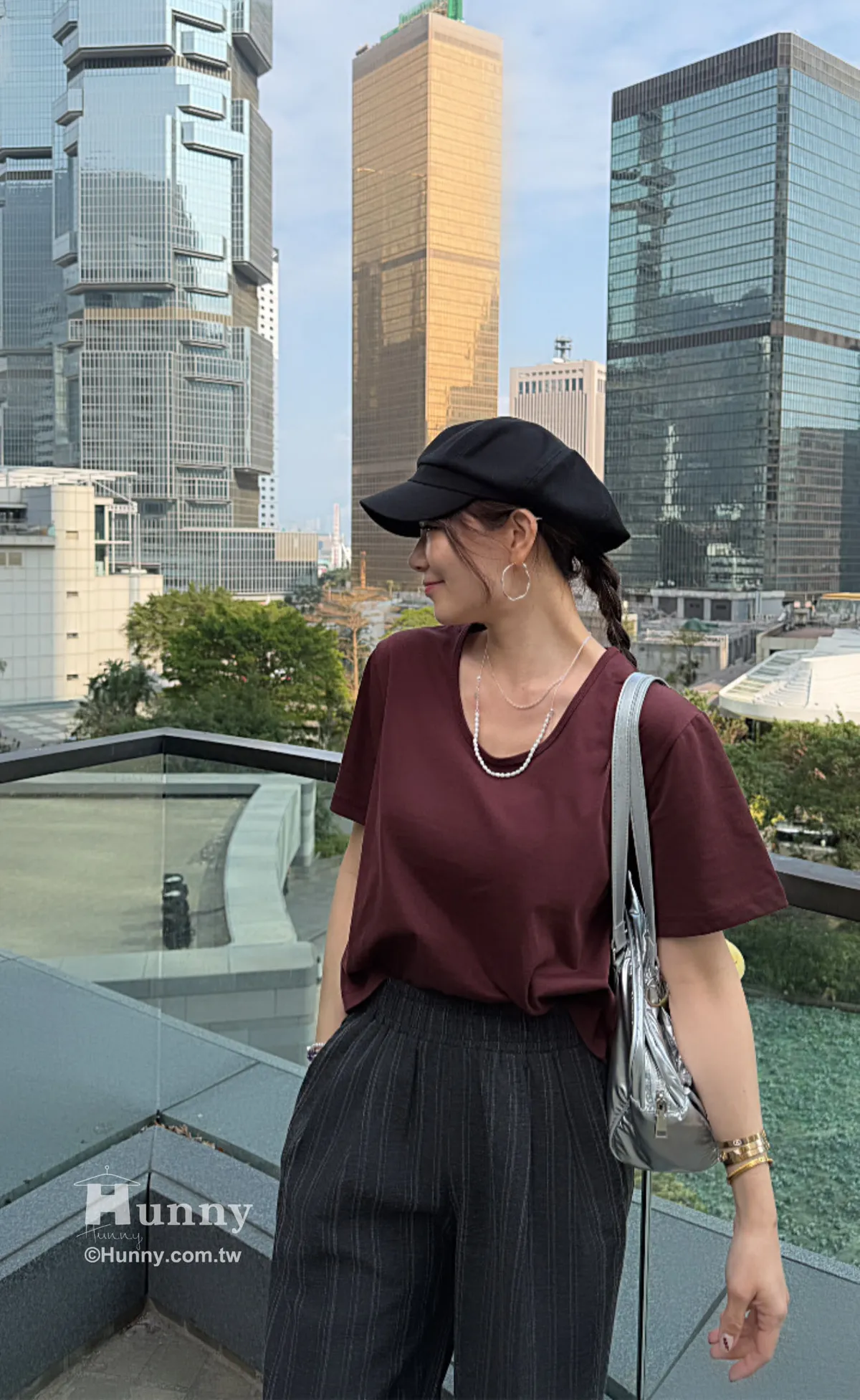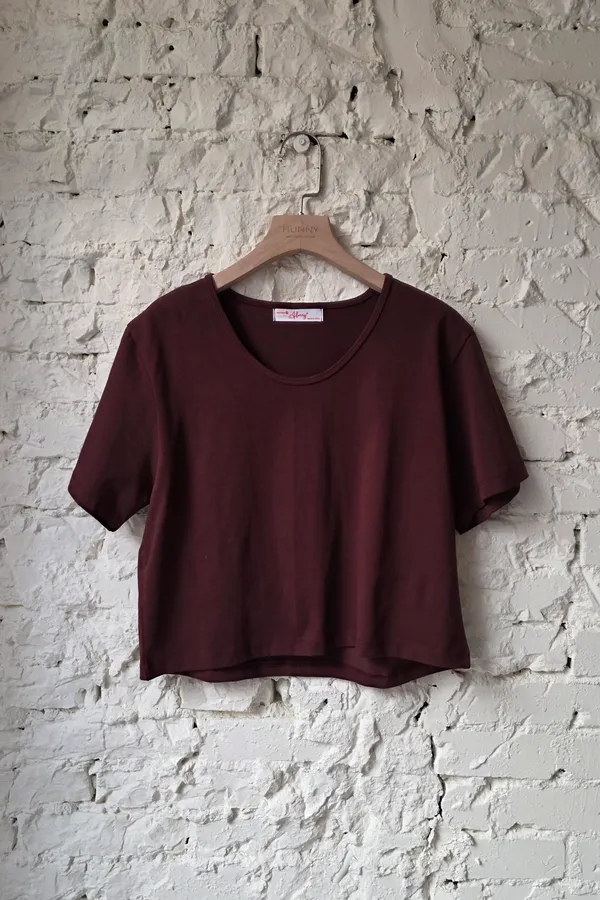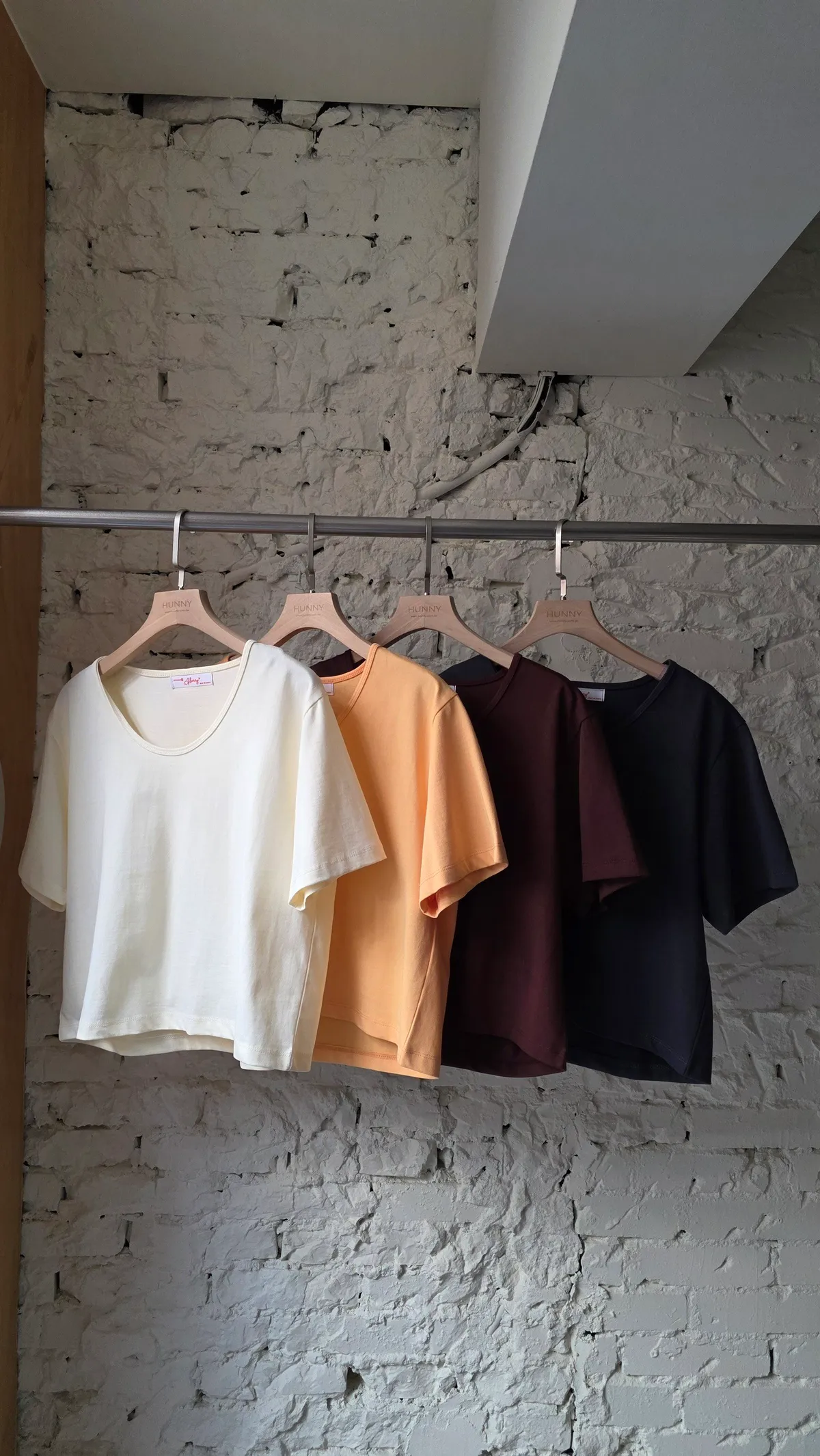 HUNNY812 獨家設計 漂亮u領高磅棉短t 墨/酒紅/黃/杏
