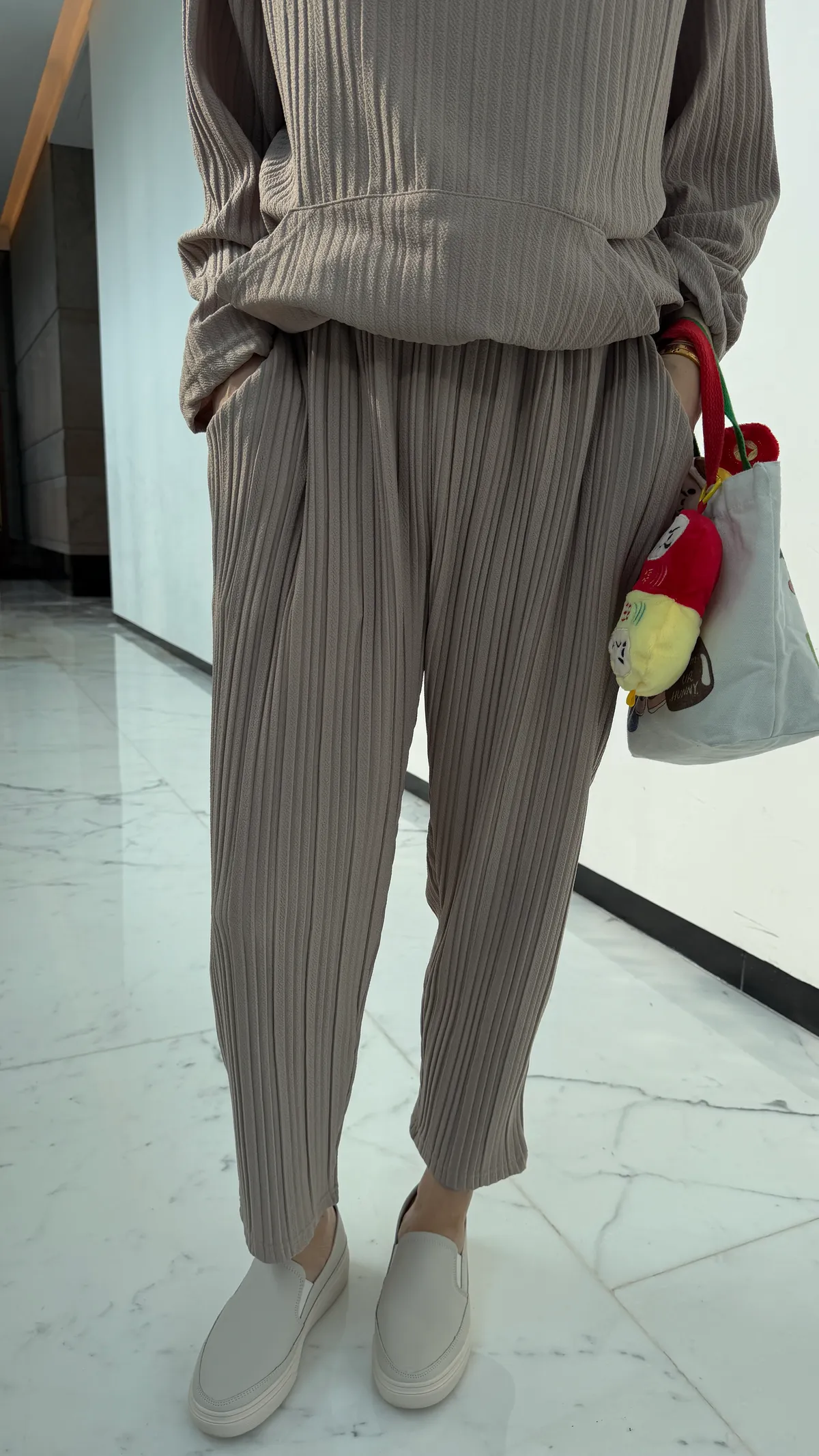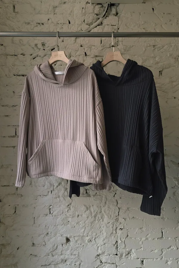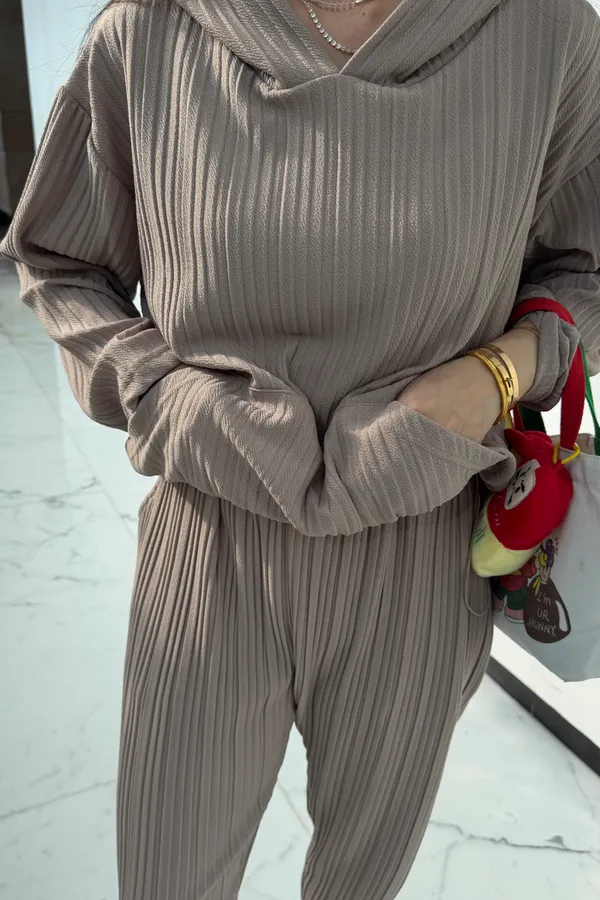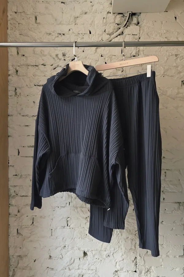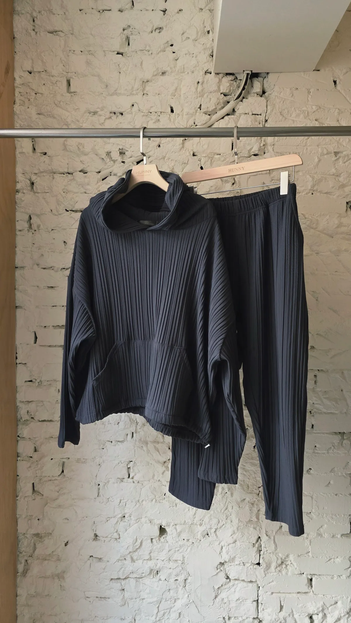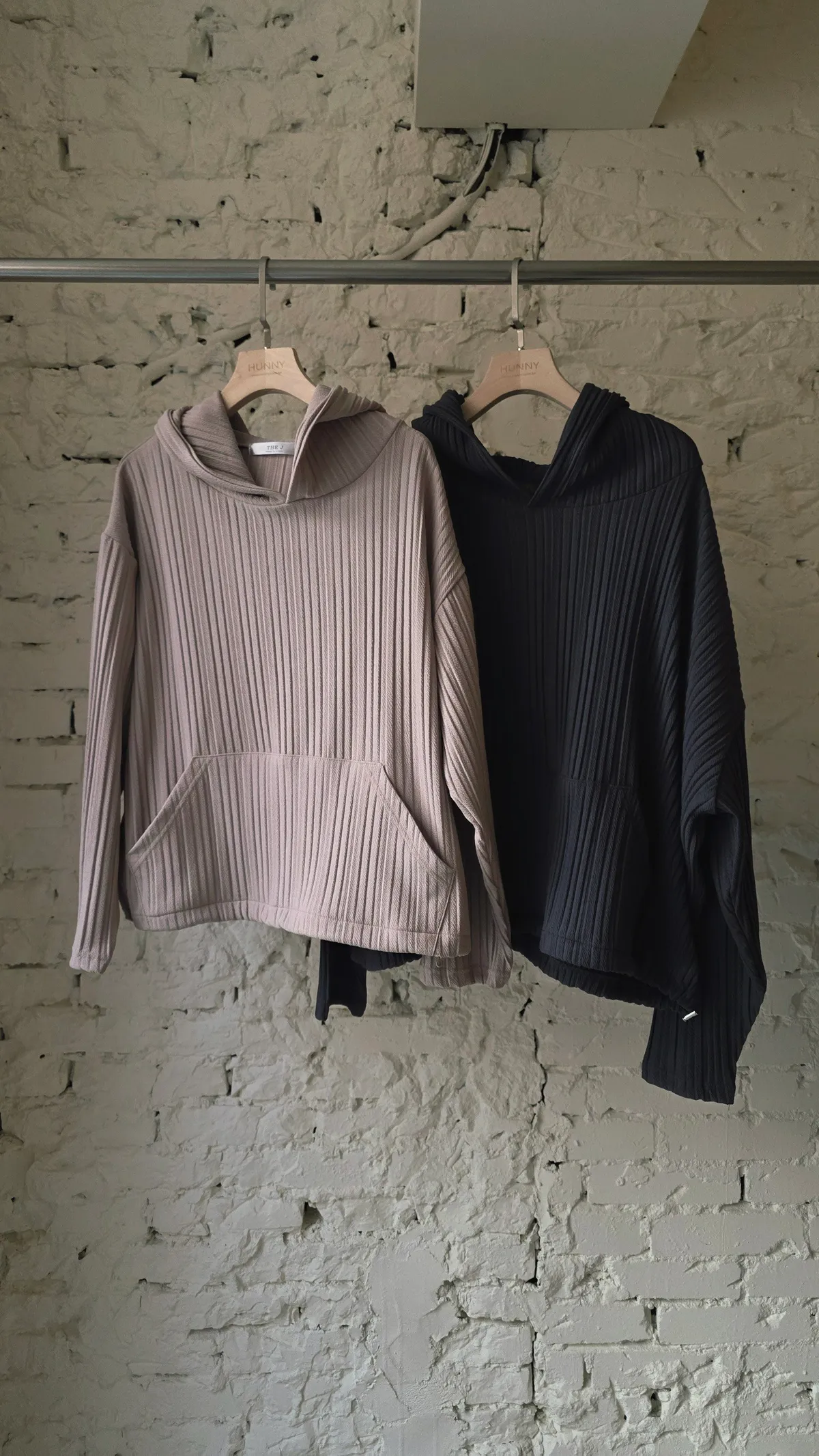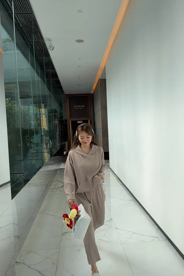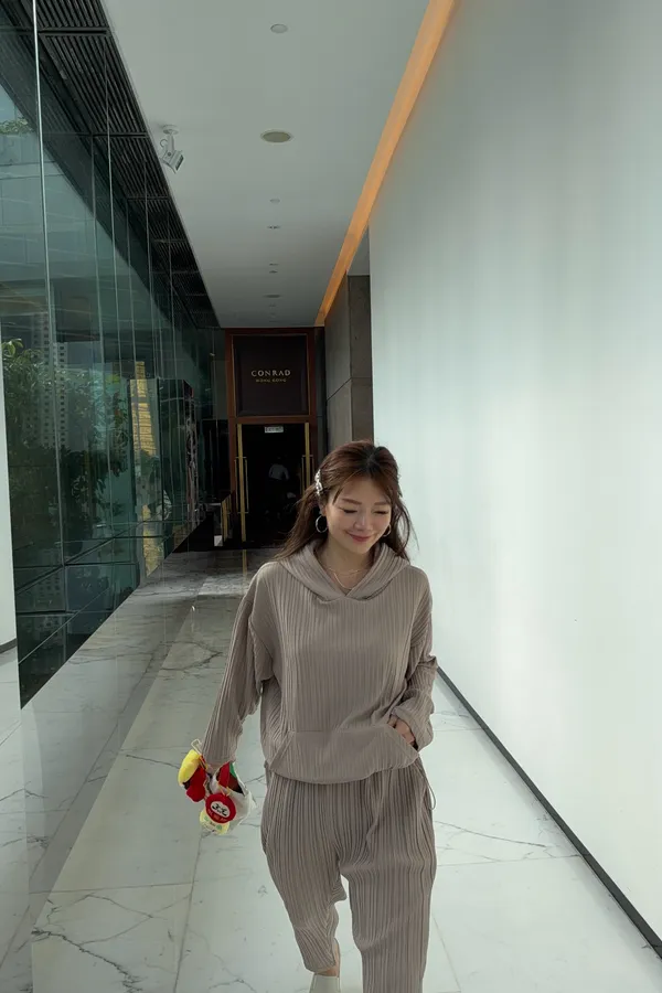 HUNNY813 獨家設計 pp質感直紋連帽t/老爺褲 墨/杏