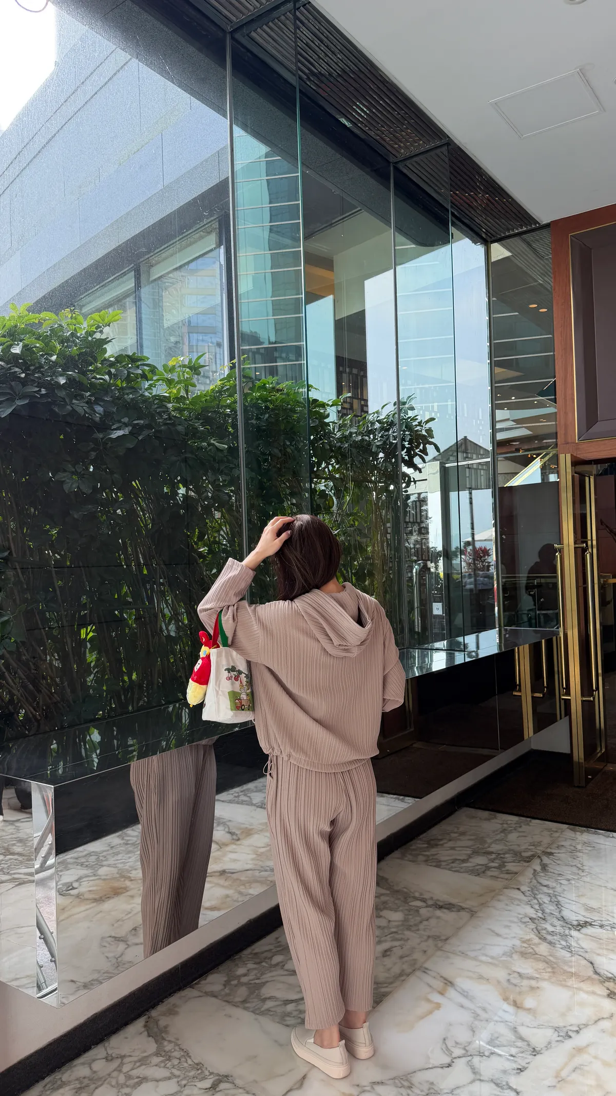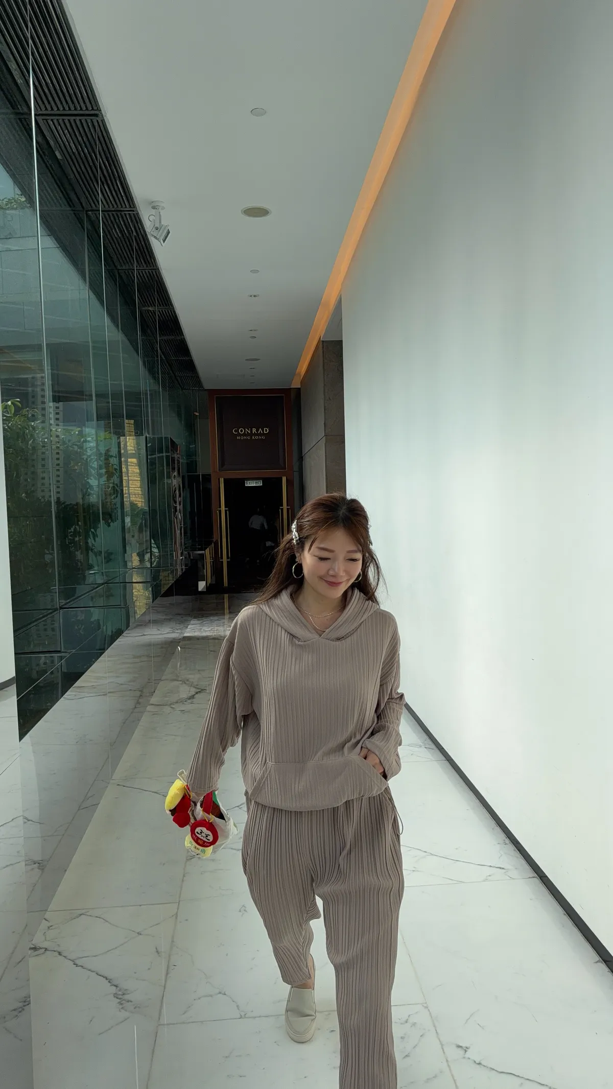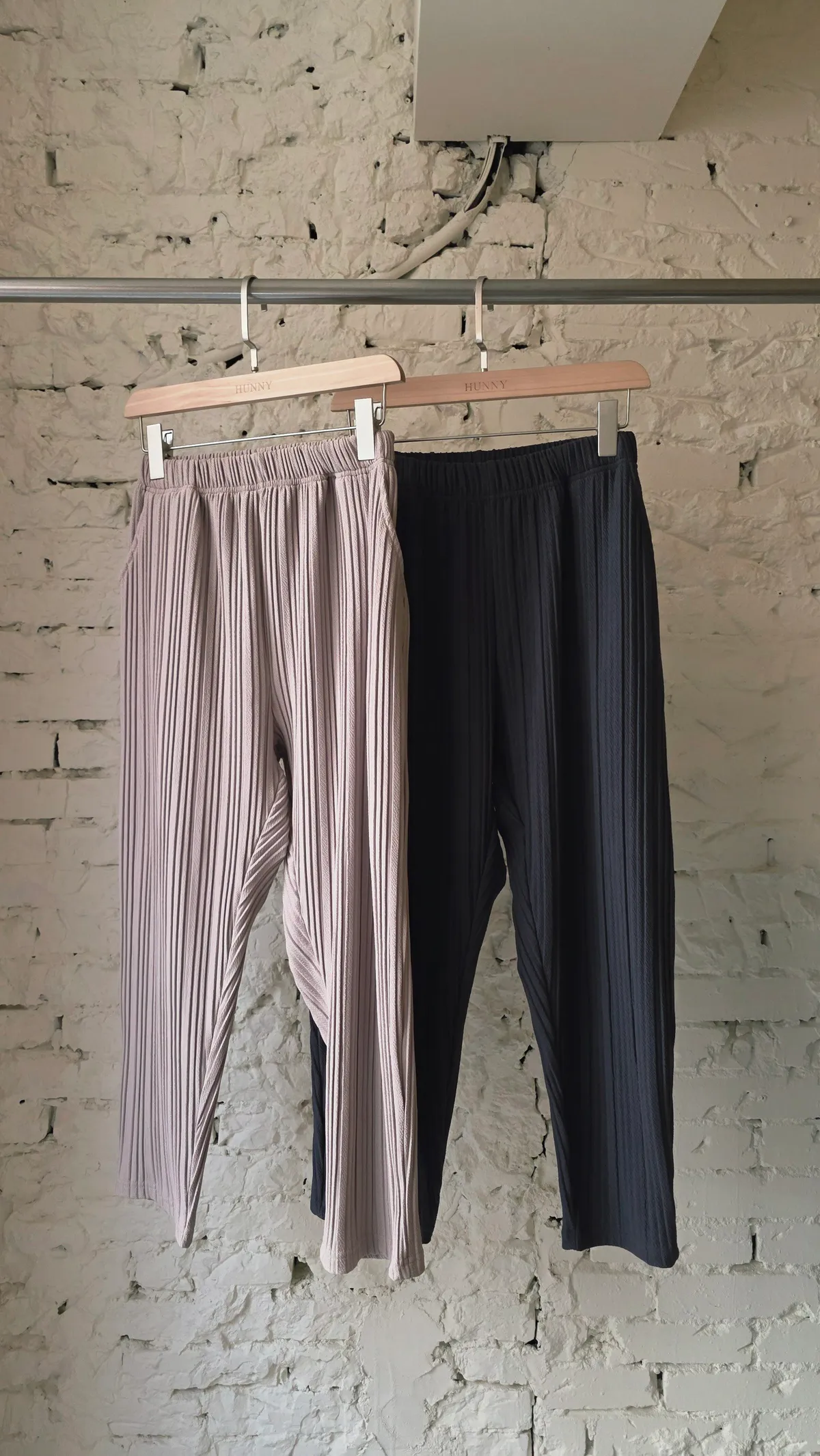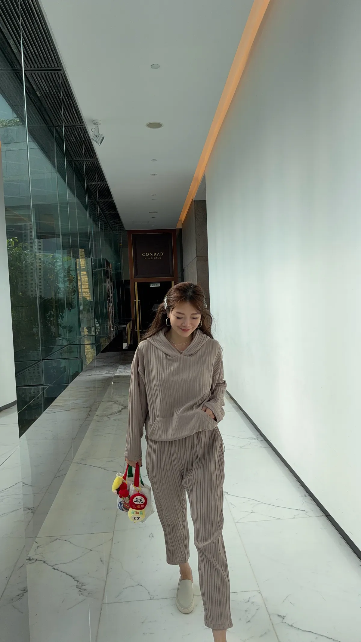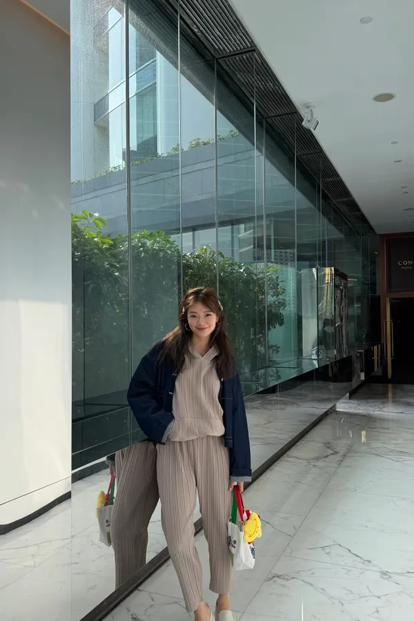 HUNNY813 獨家設計 pp質感直紋連帽t/老爺褲 墨/杏