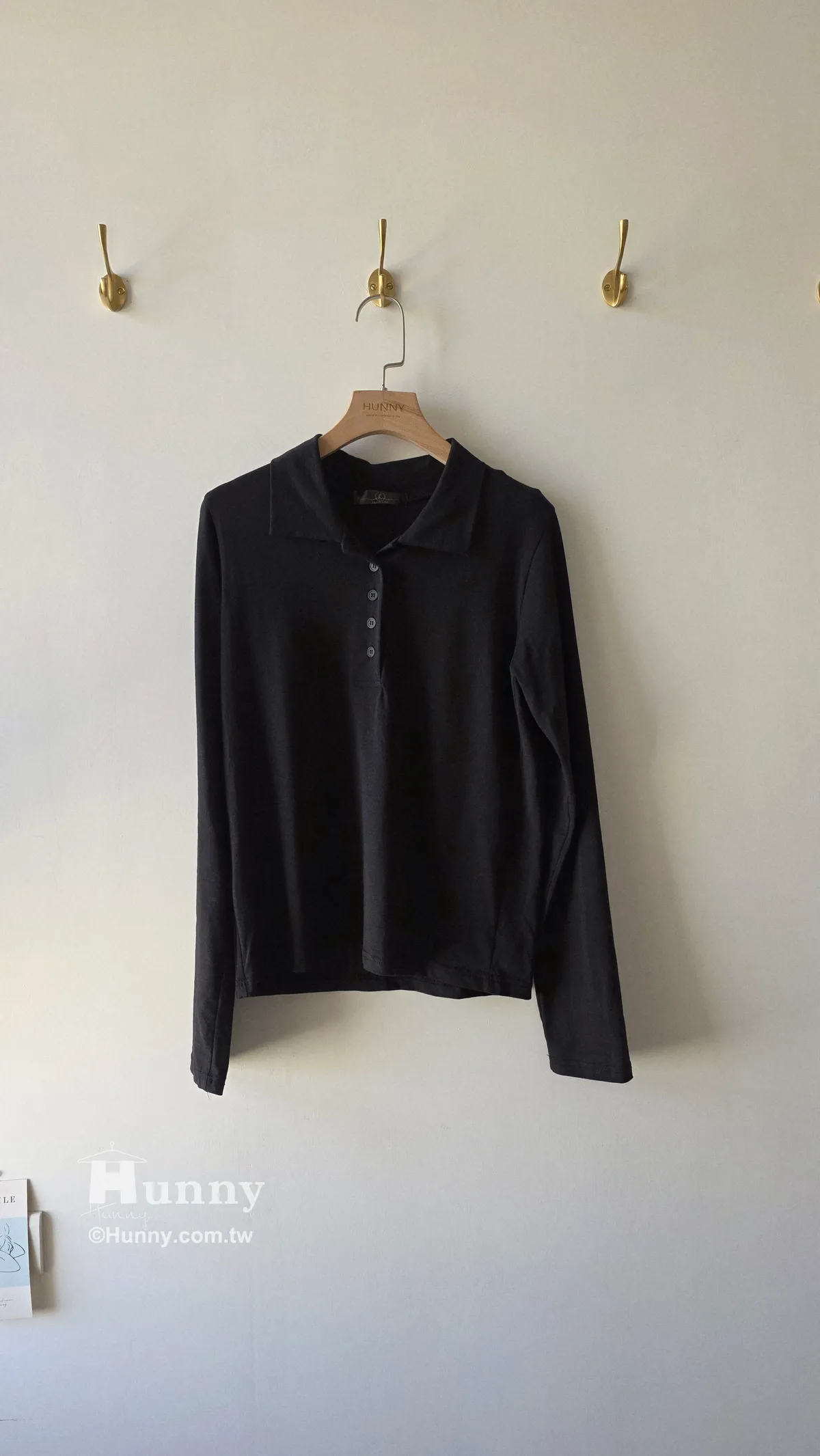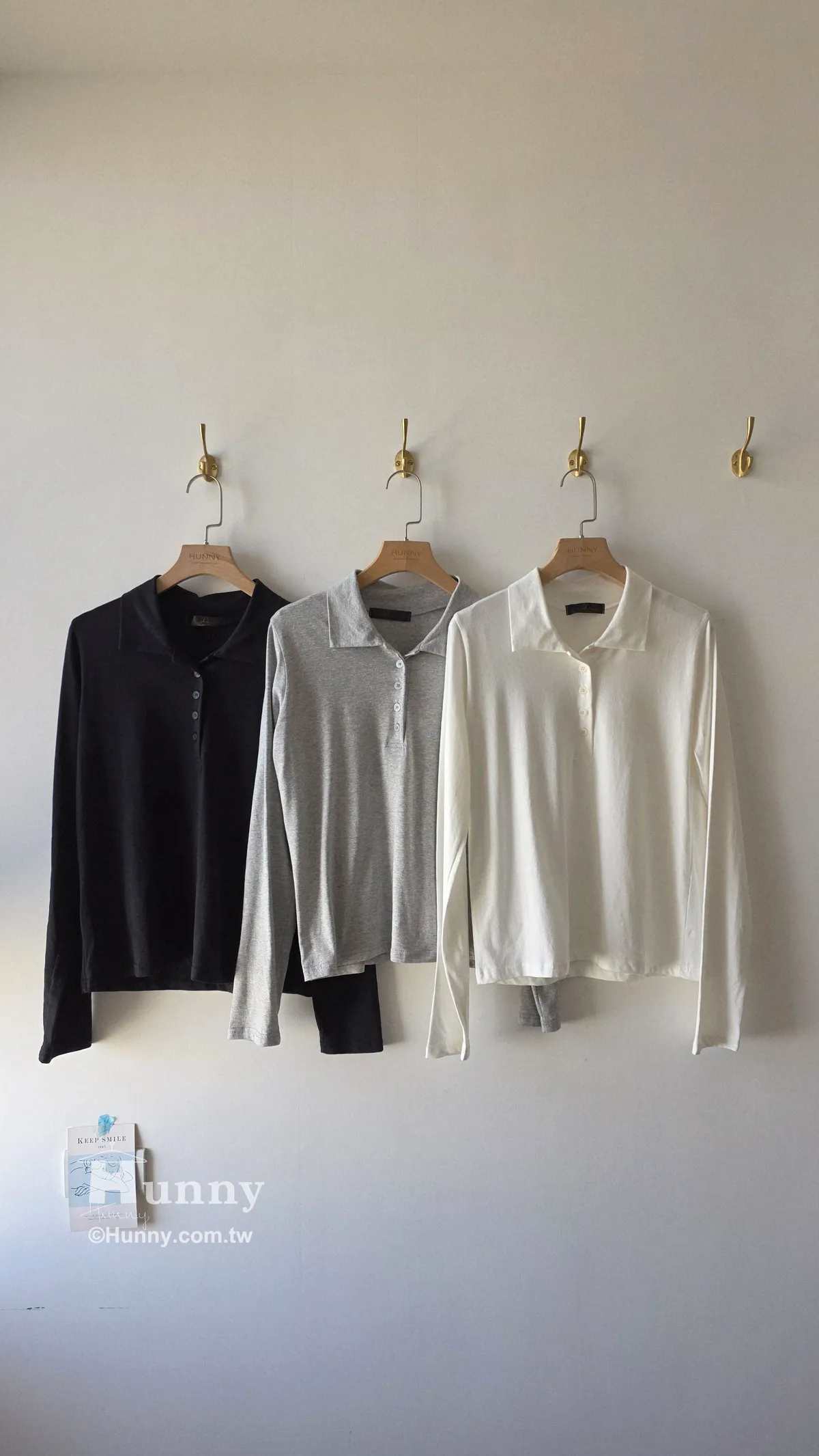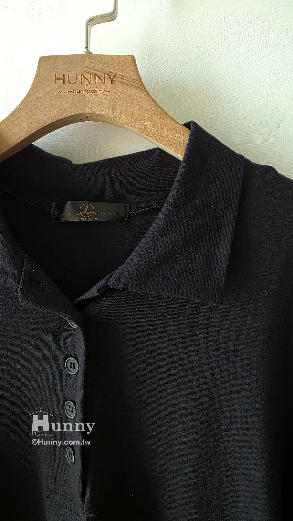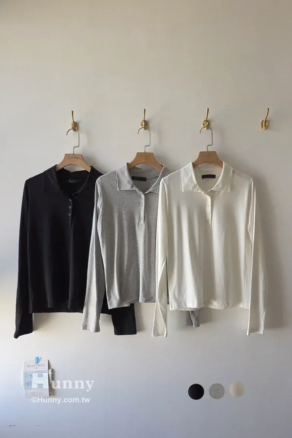 HUNNY830 四季款薄涼POLO長T 黑/灰/白
