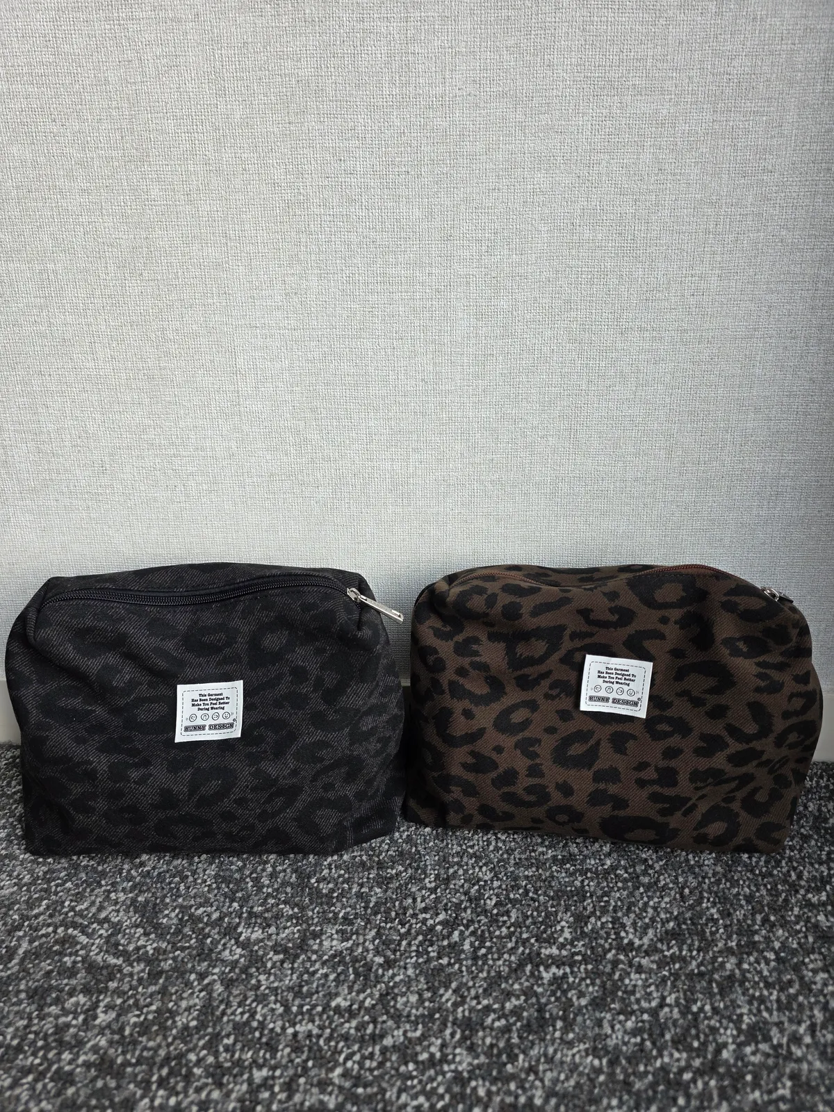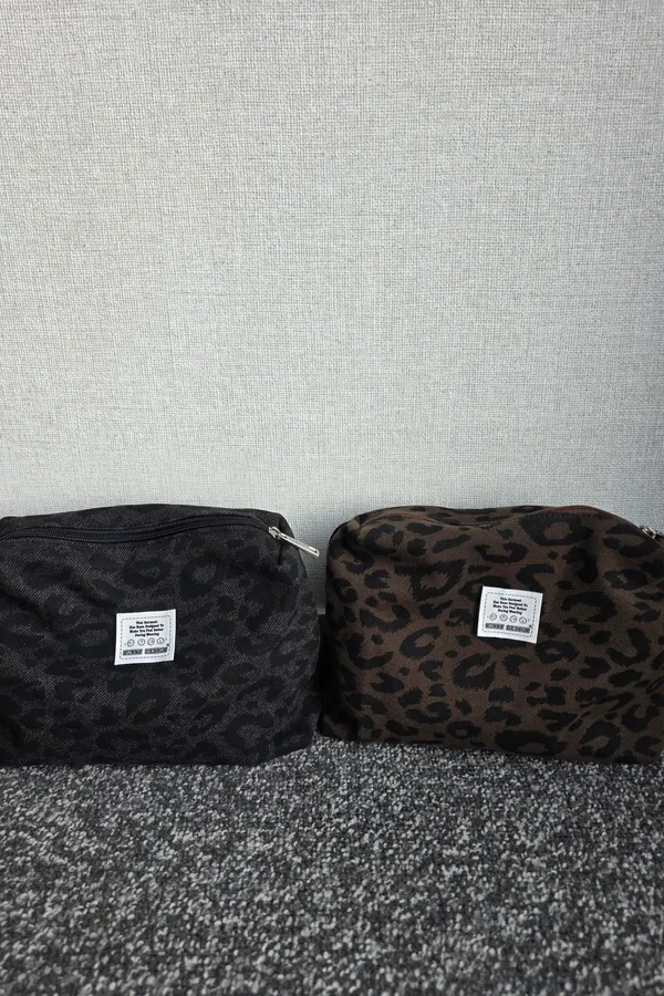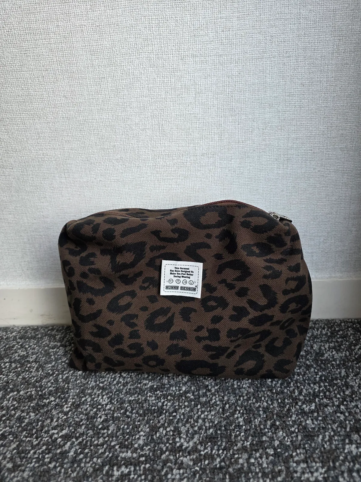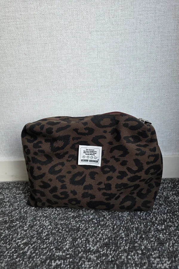 Hunny01 獨家訂製的蜜桃絨豹紋大收納包 黑/咖