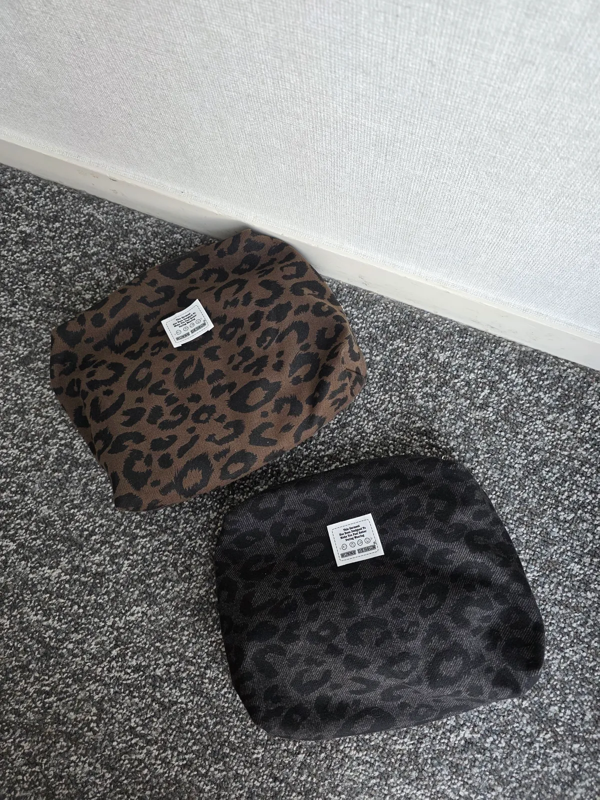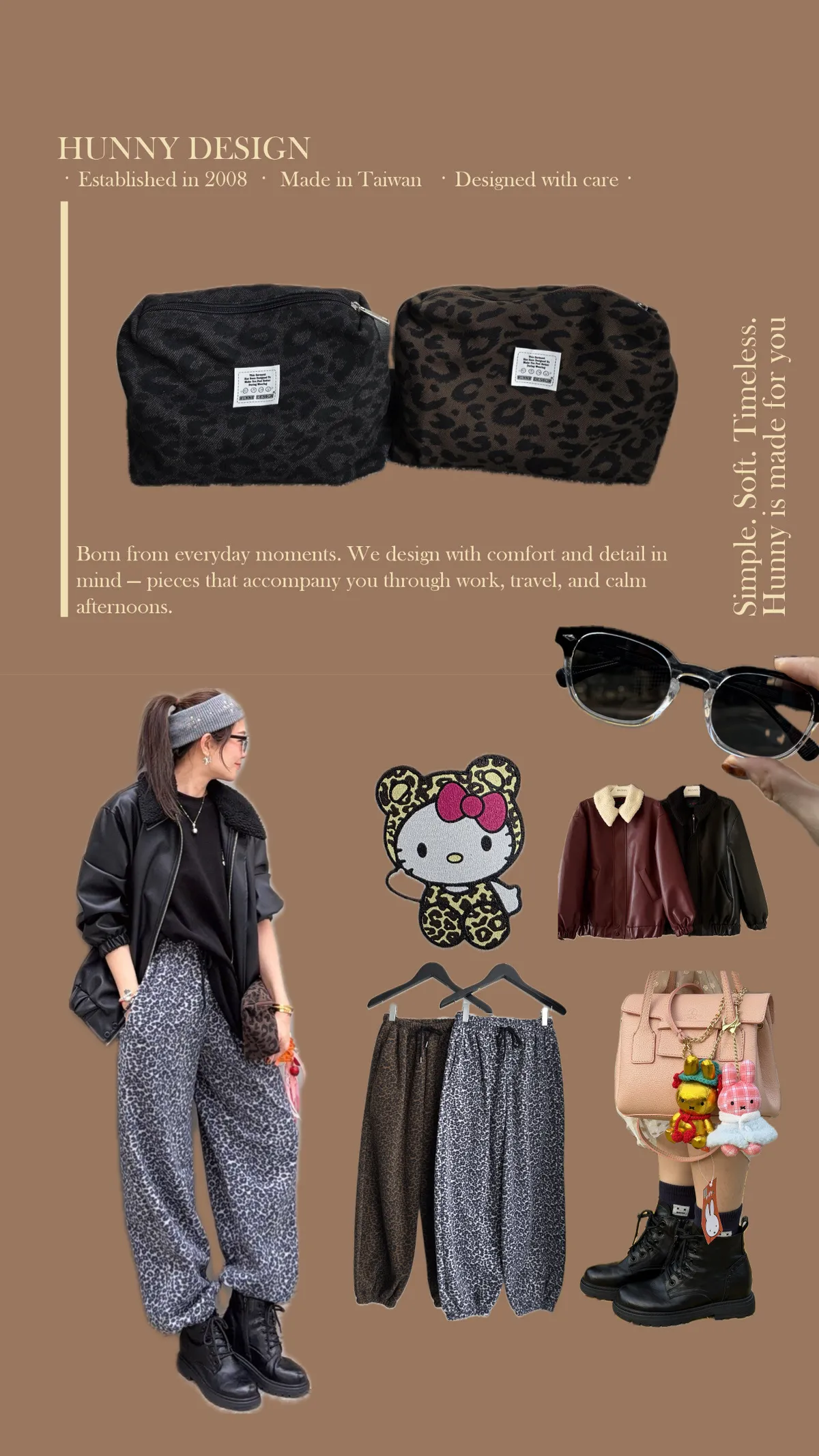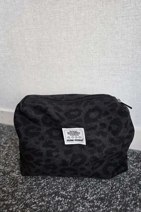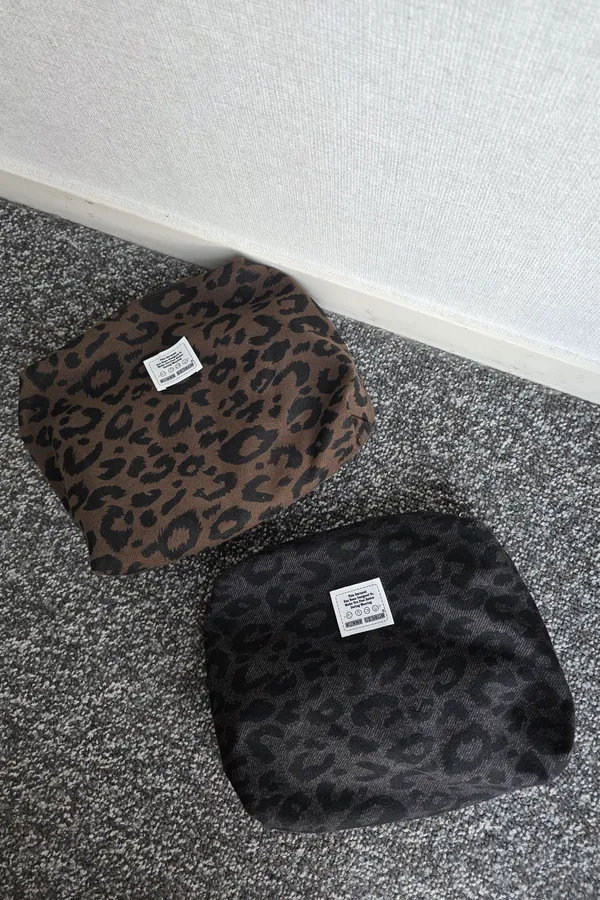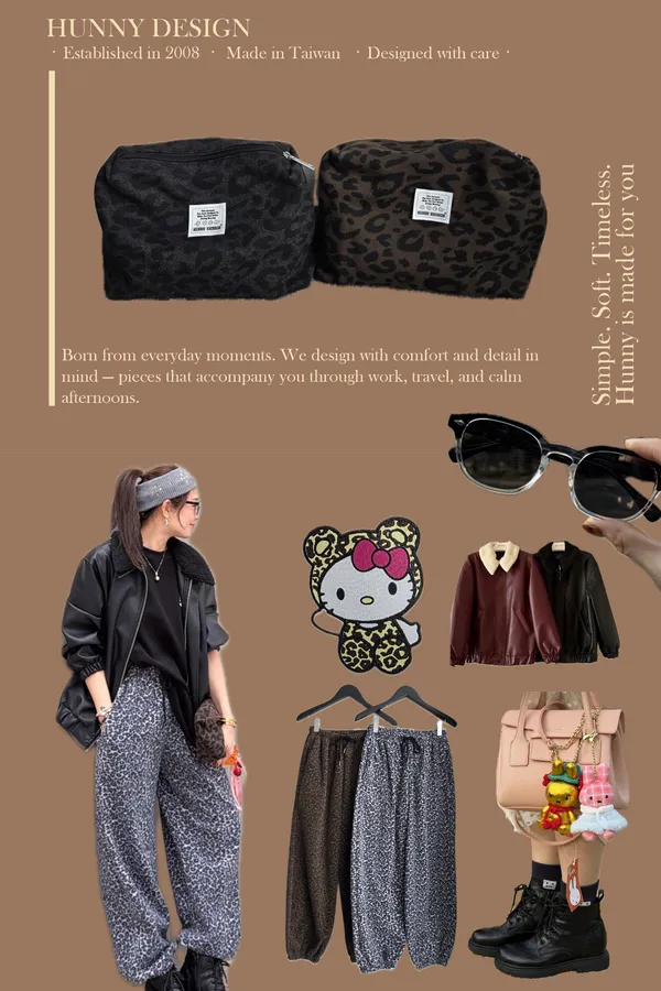 Hunny01 獨家訂製的蜜桃絨豹紋大收納包 黑/咖