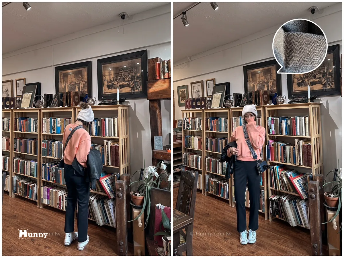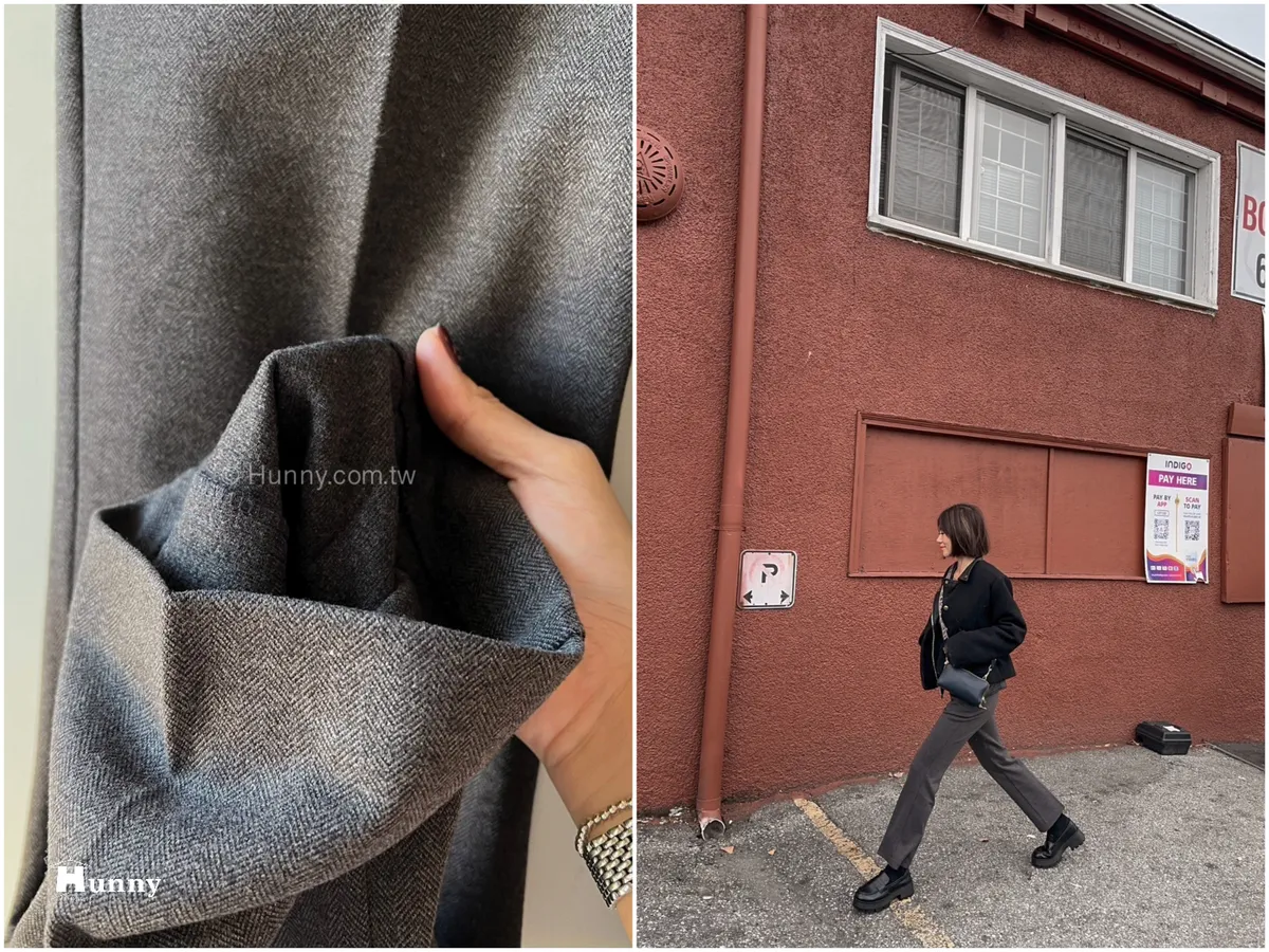 整件摸起來就是舒服又保暖的毛料西裝材質