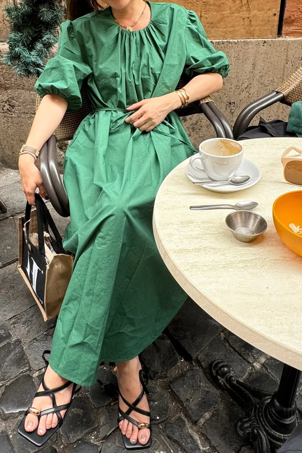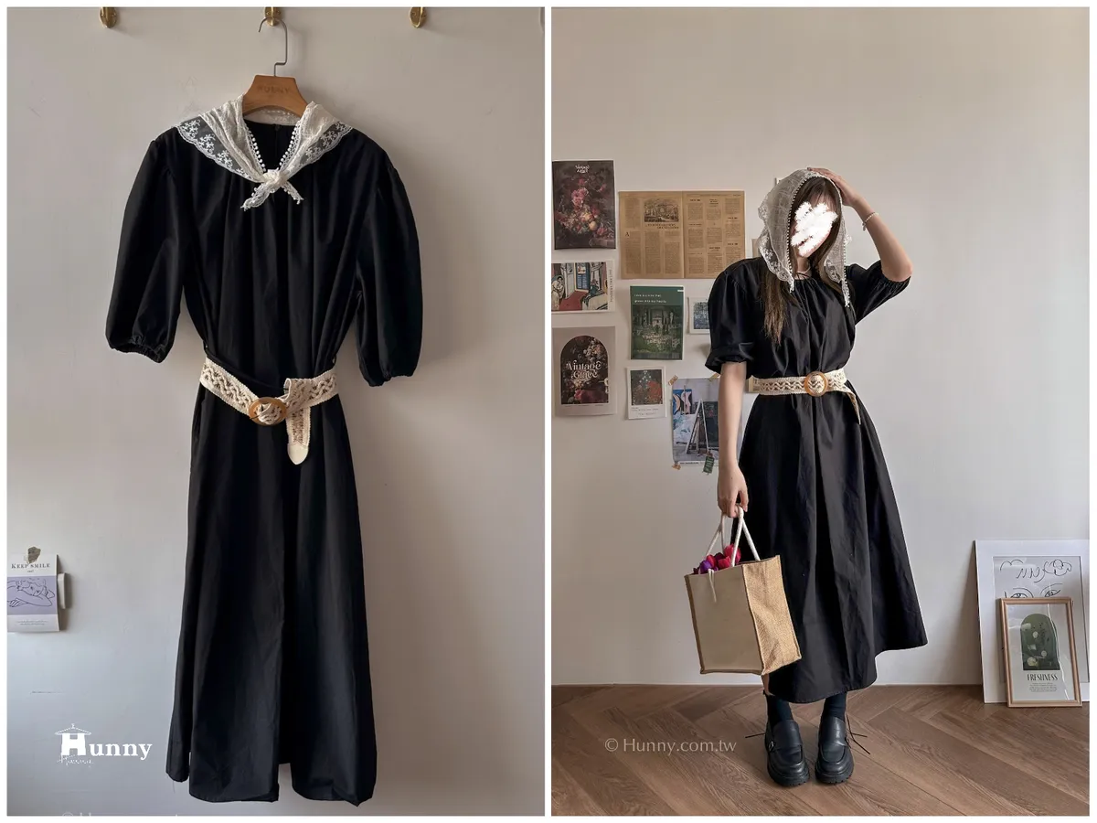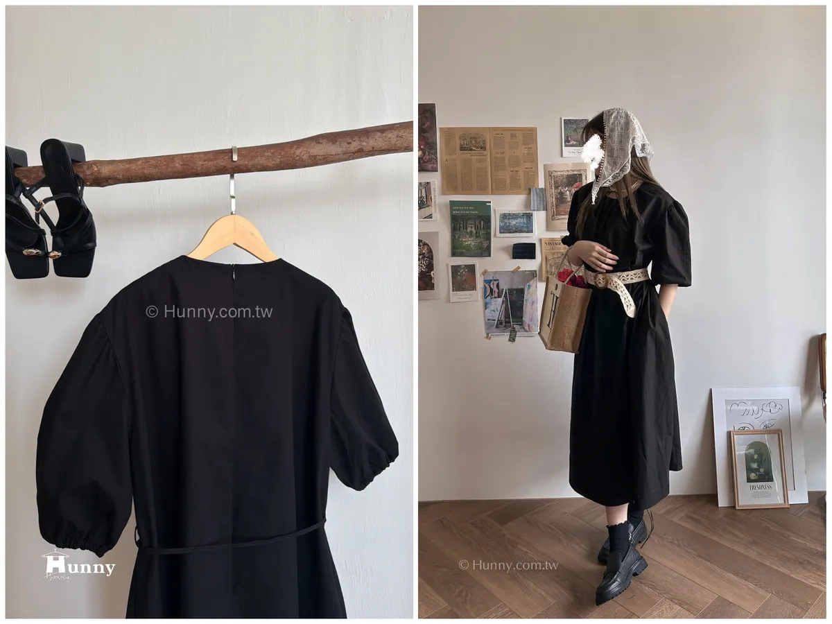 Hunny543 優雅小貴婦飽和色調花苞洋 黑/綠/粉/黃