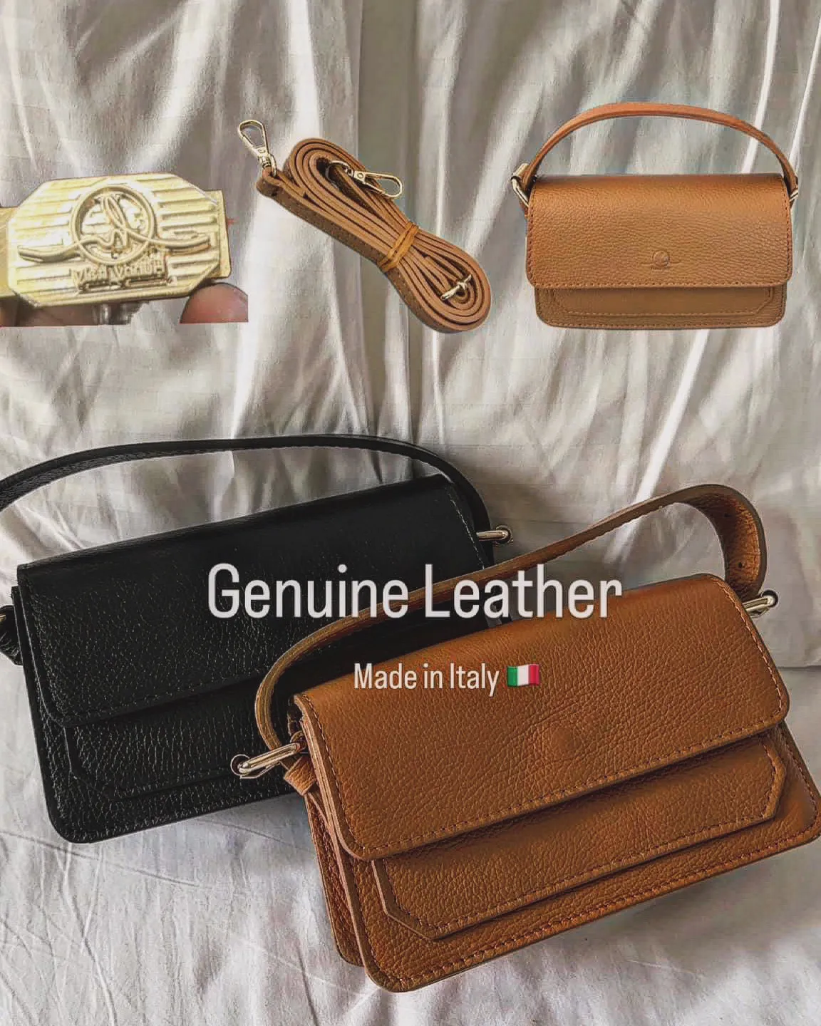 Hunny564 獨家訂製的Italy 義大利高級牛皮中廢包 黑/焦糖/米杏