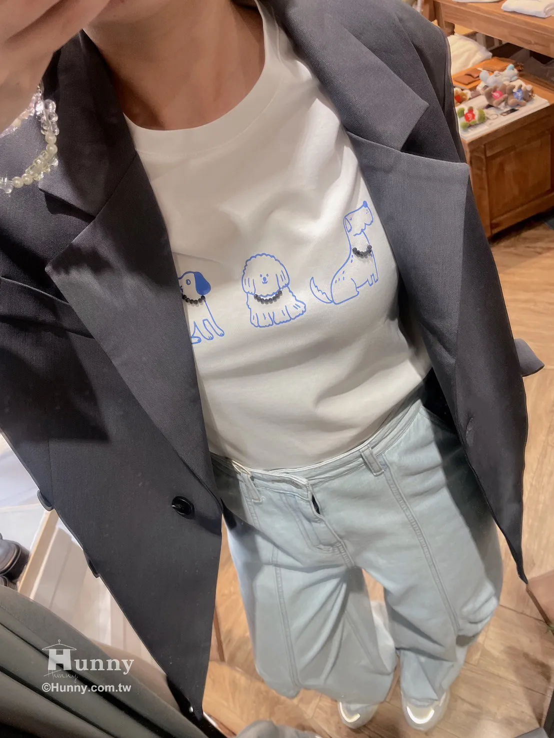 因為這款是修身的感覺 所以這樣穿更可以拉長比例喔~