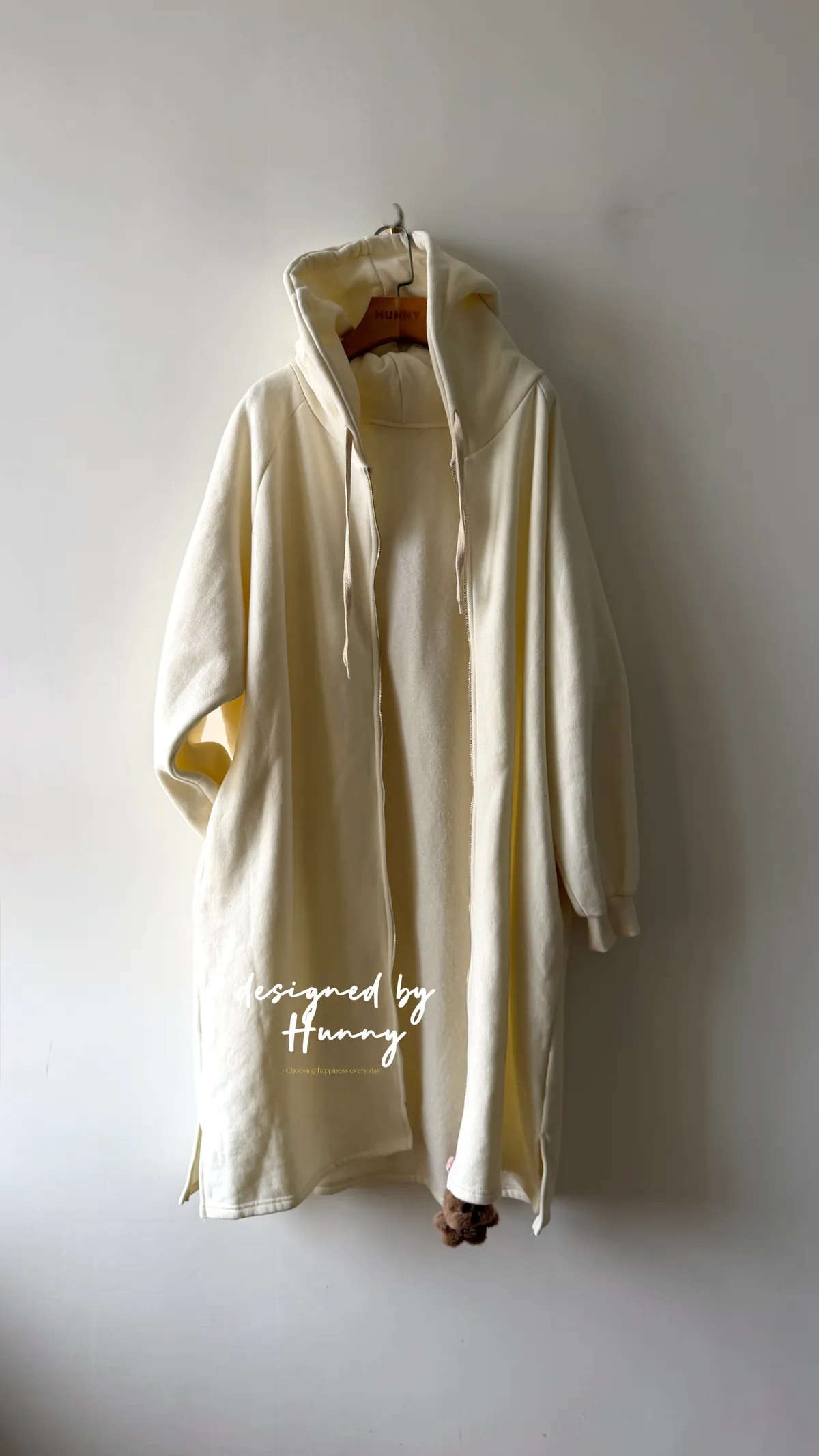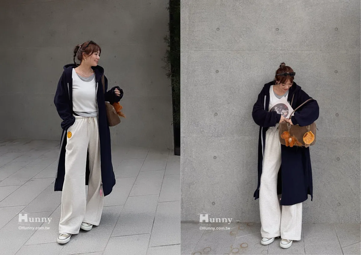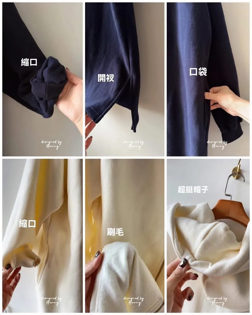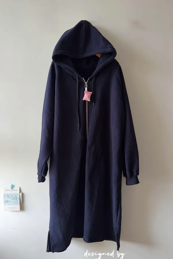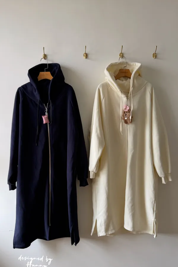 Hunny791 獨家款 厚磅數刷毛連帽長外套 藍/杏