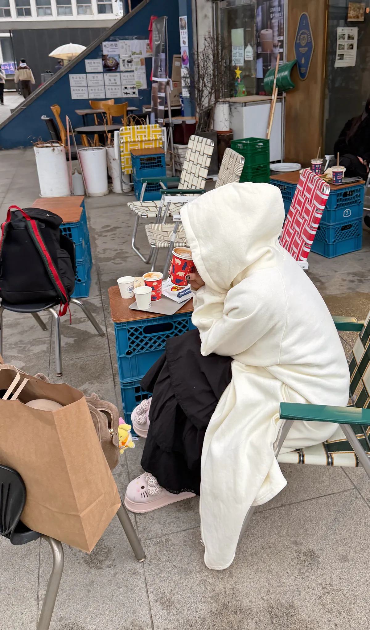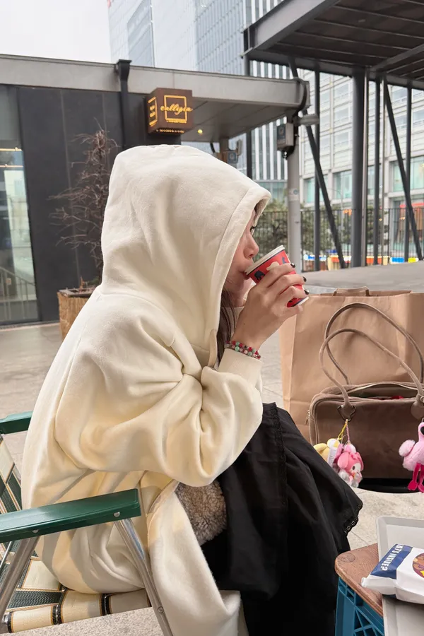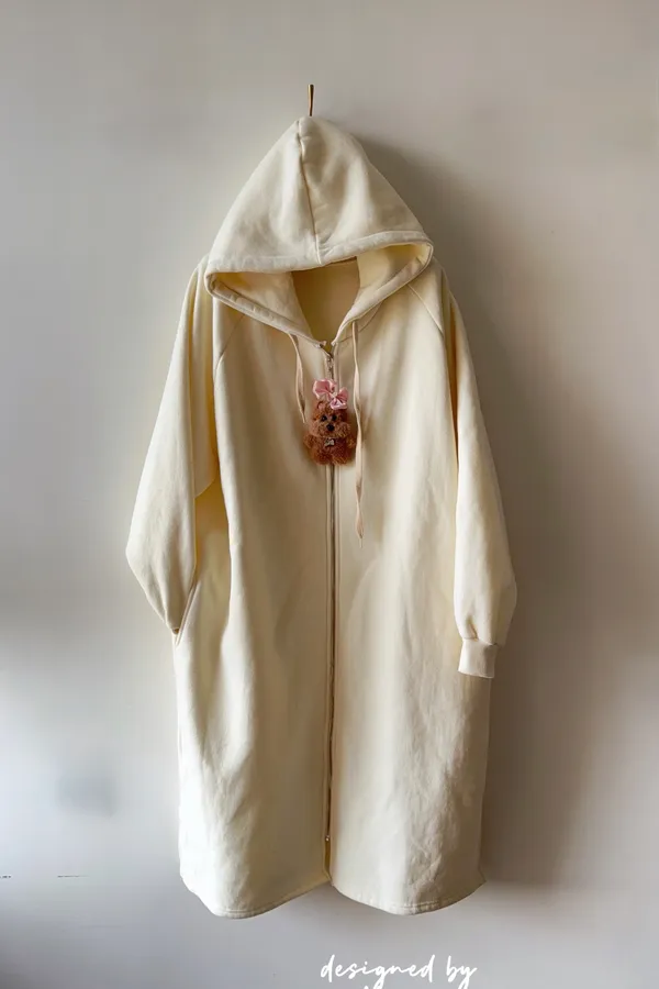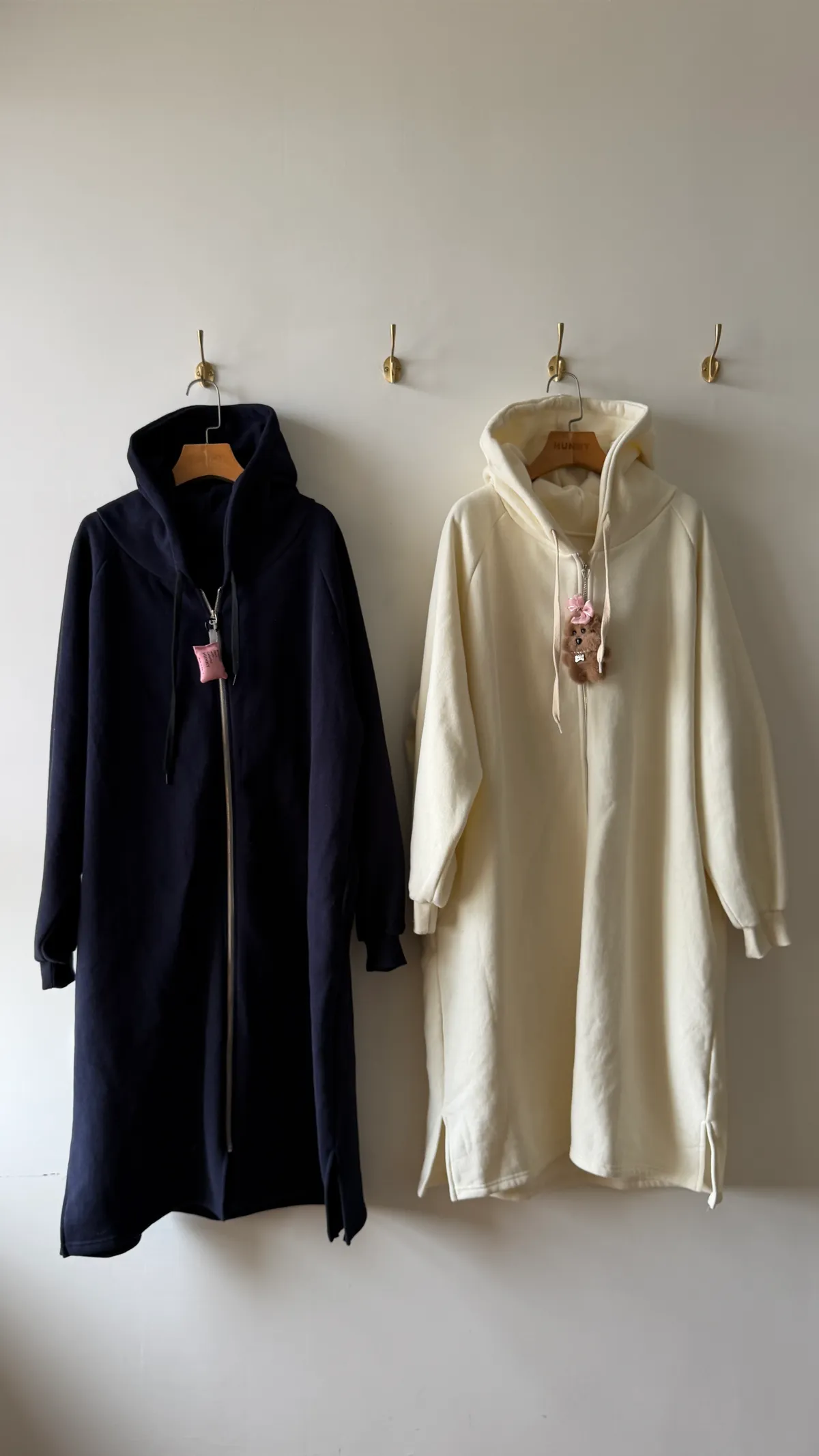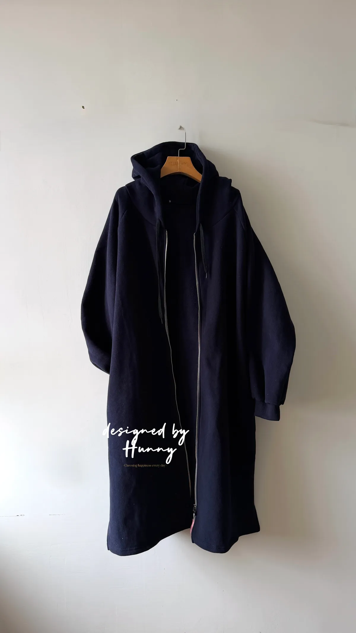 Hunny791 獨家款 厚磅數刷毛連帽長外套 藍/杏