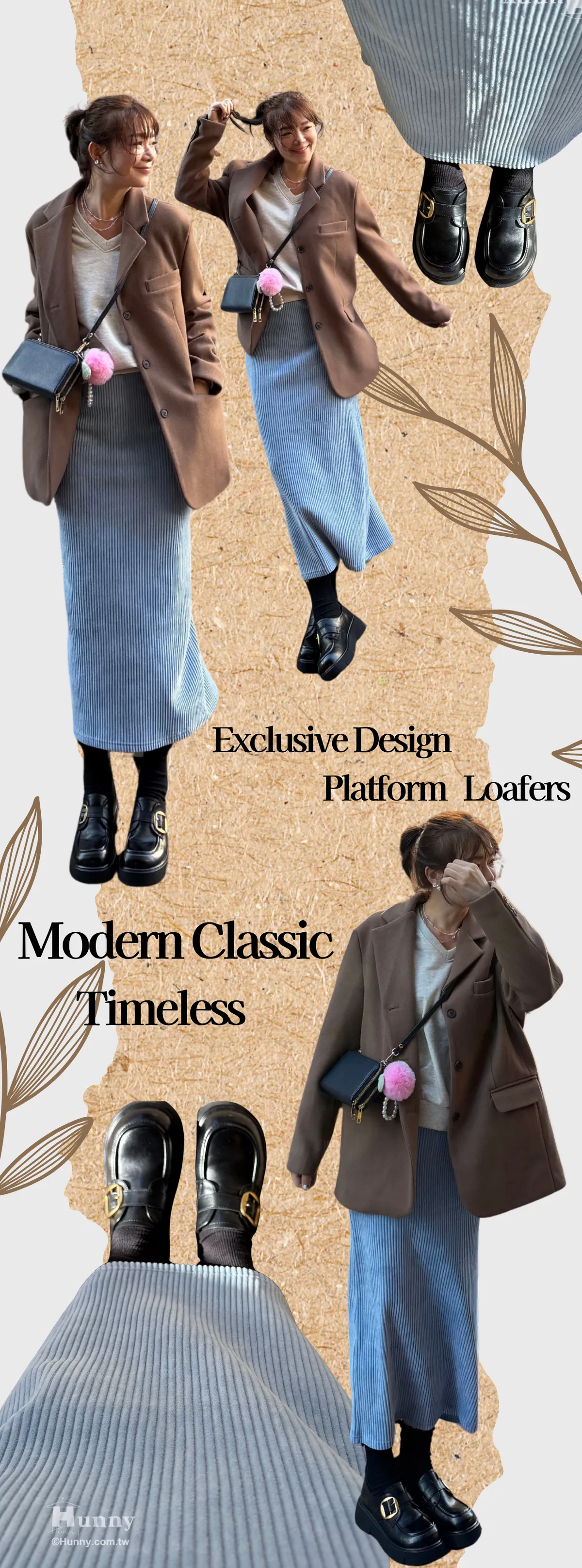 Hunny801 獨家訂製 巴黎石板路厚底輕盈樂福鞋 金/銀(三月出貨)35-40