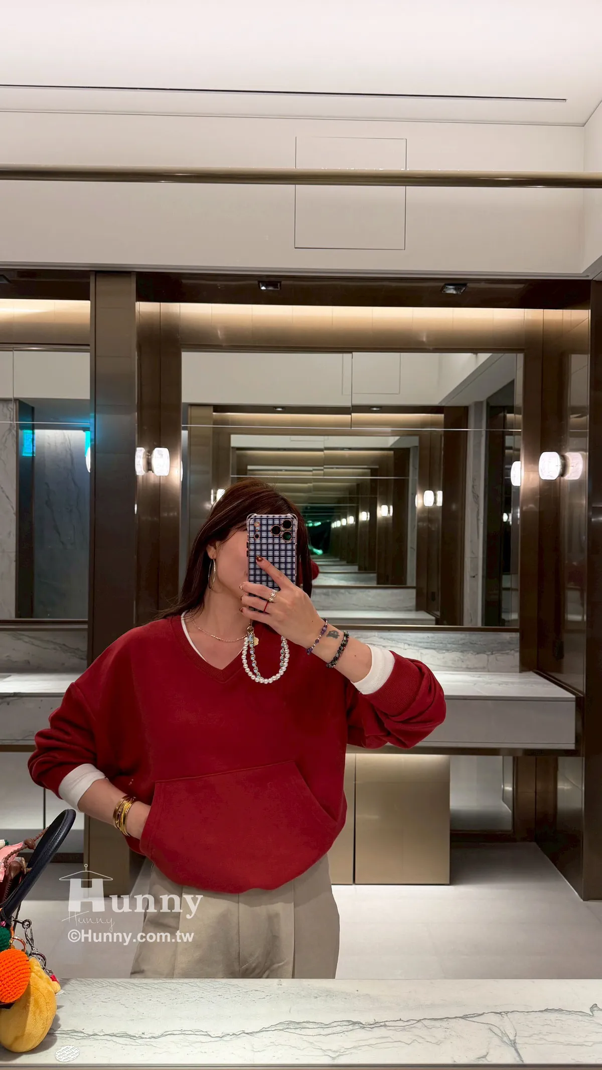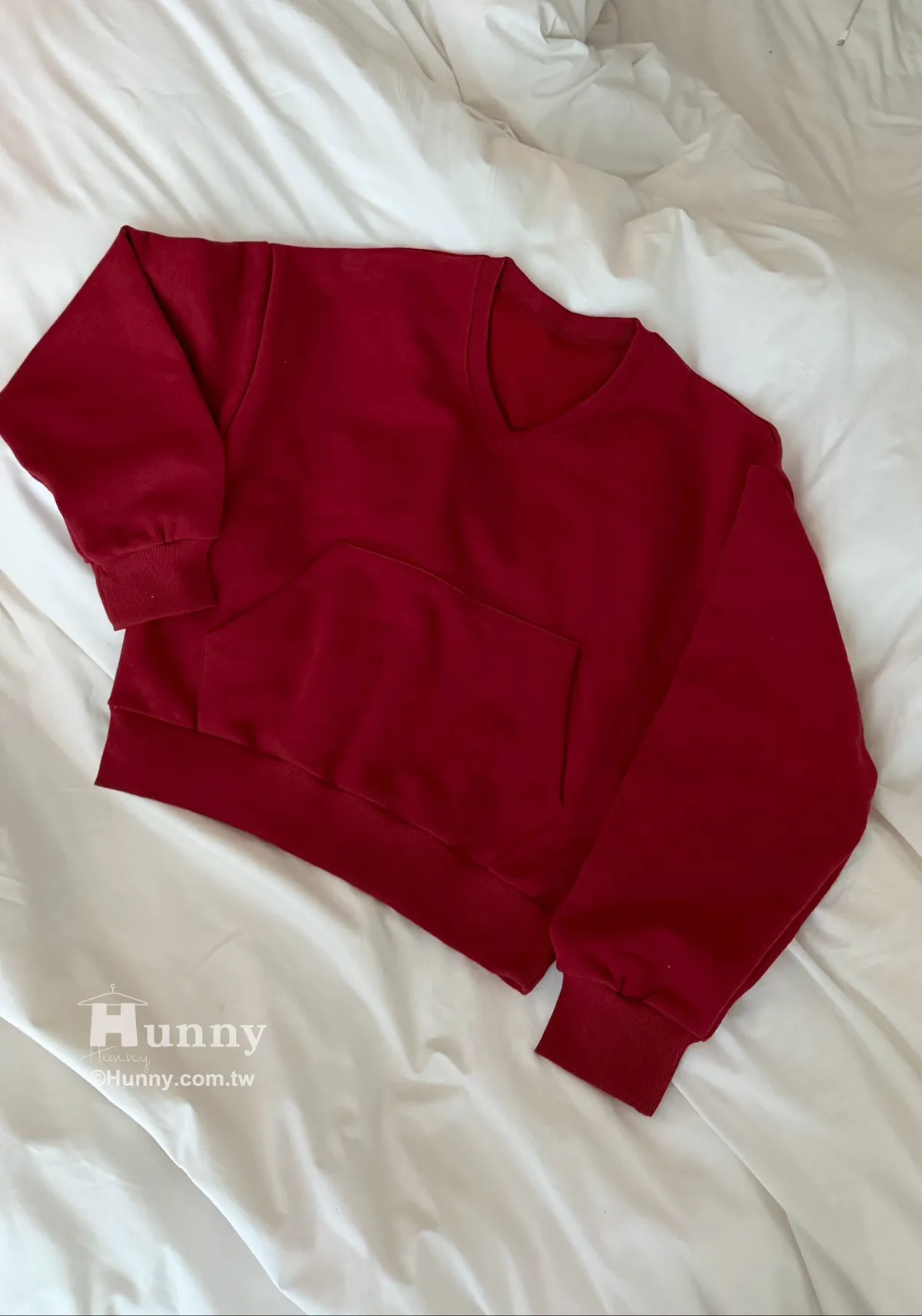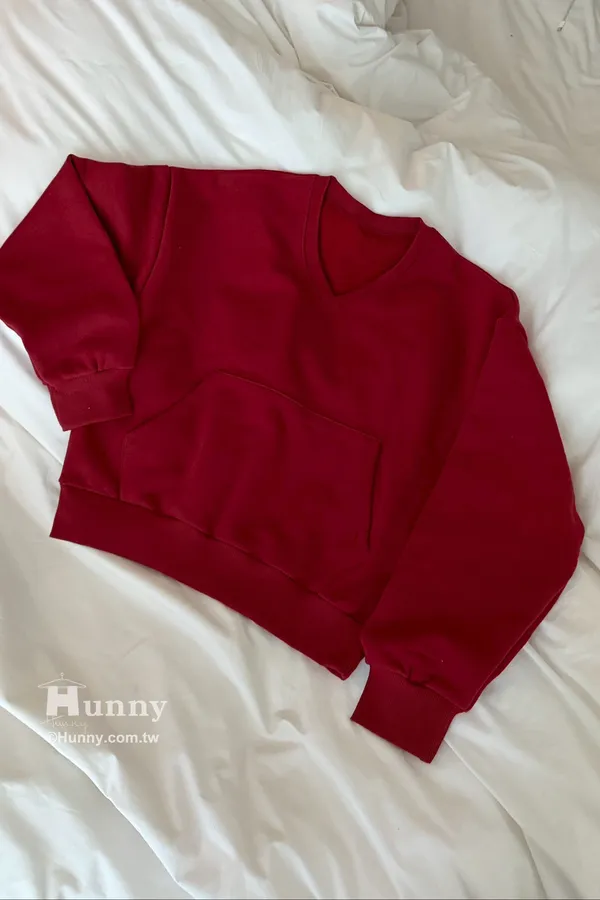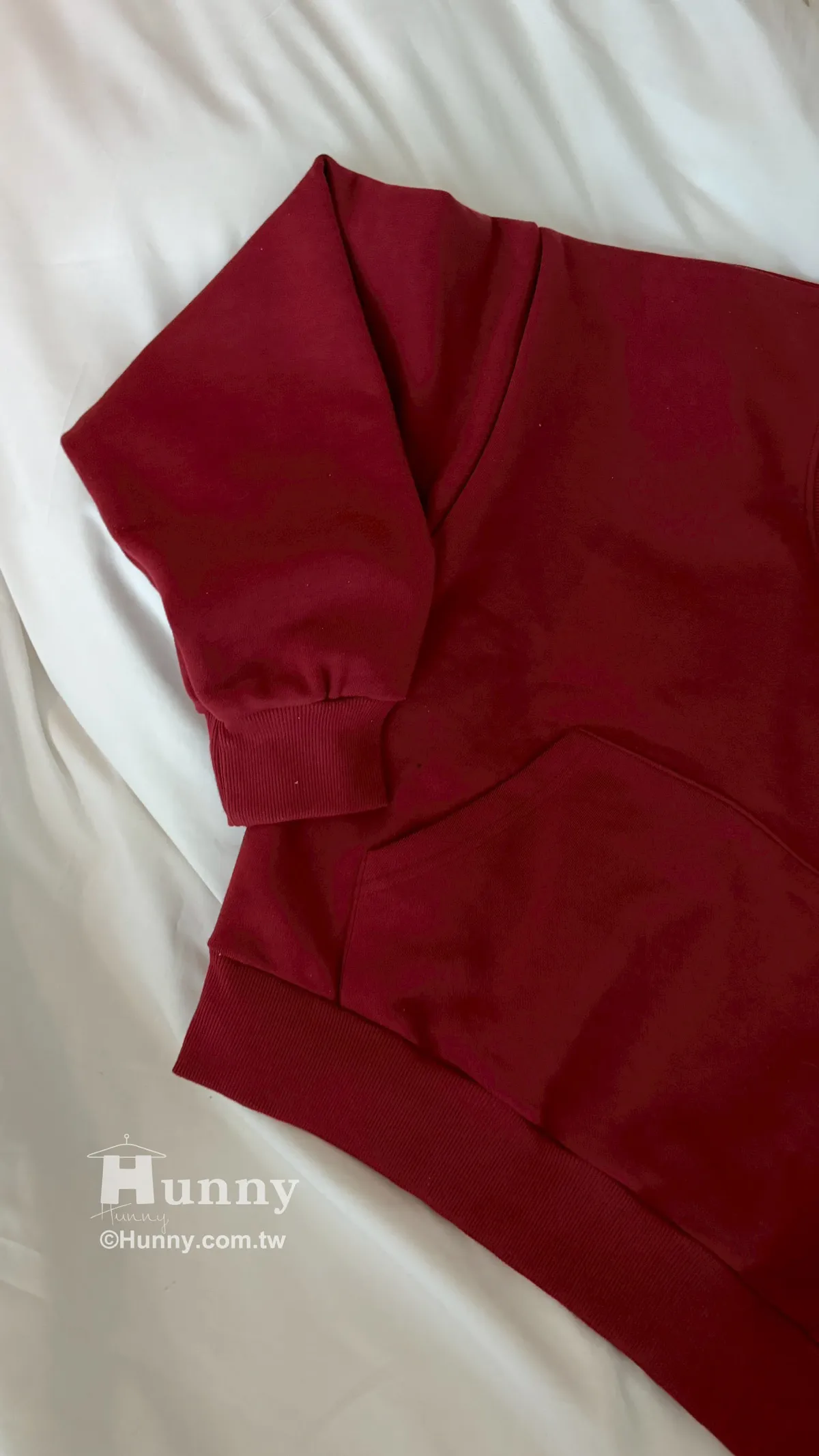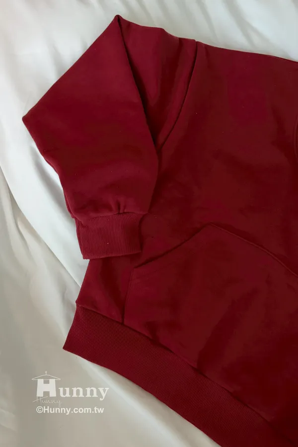 Hunny806 獨家設計款 小臉蛋大V領高級棉t 米/波爾多紅有口袋 現貨