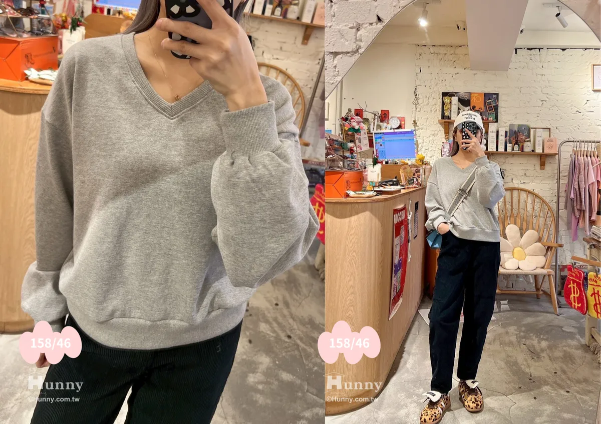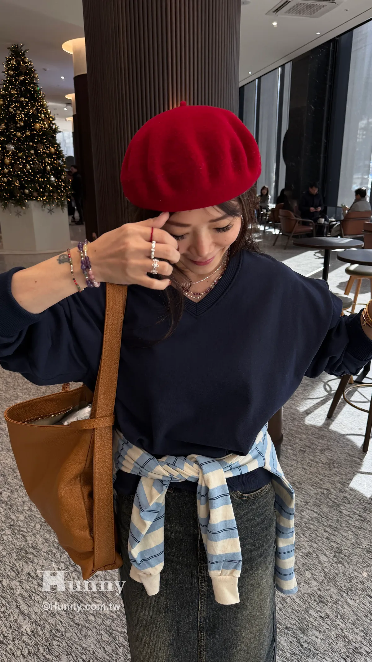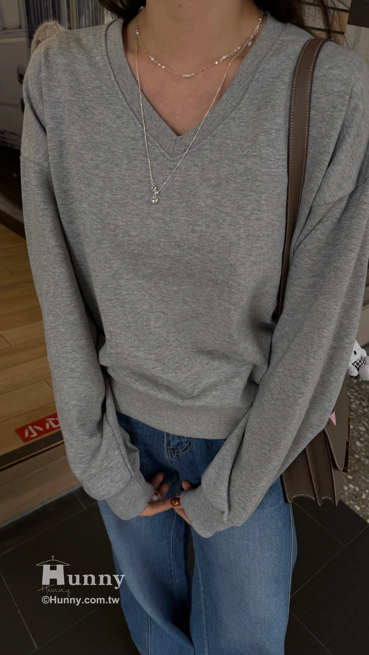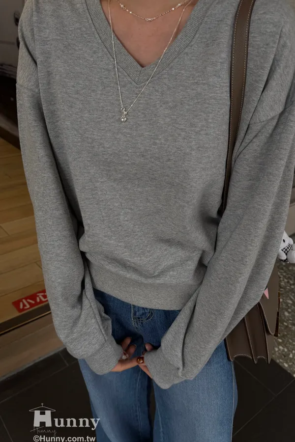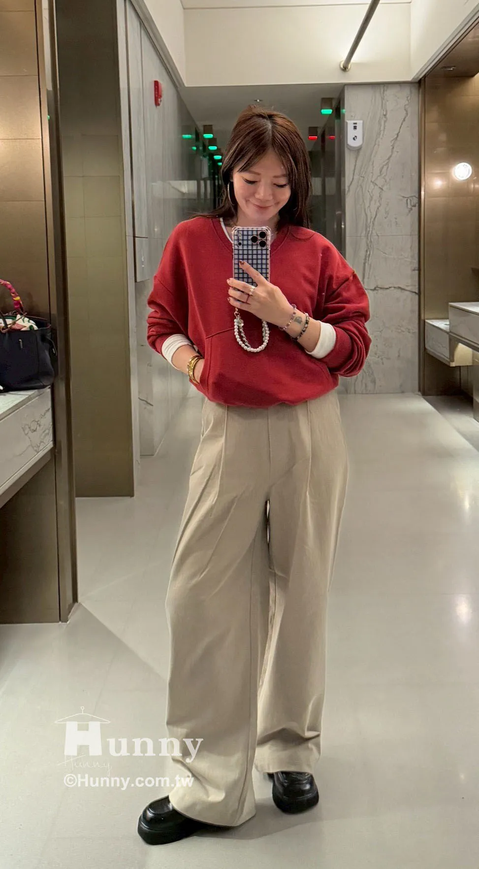 Hunny806 獨家設計款 小臉蛋大V領高級棉t 米/波爾多紅有口袋 現貨