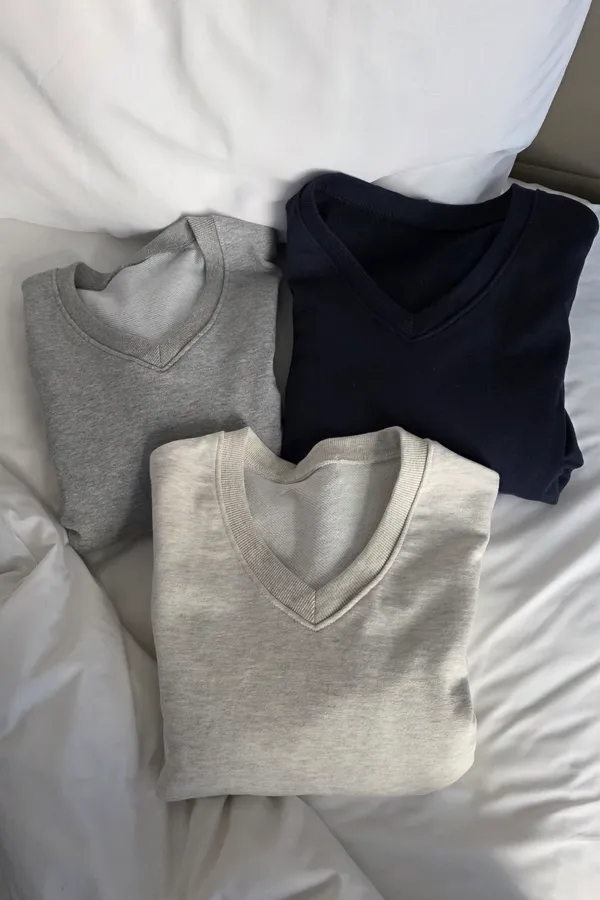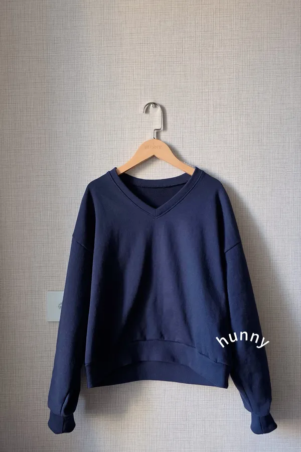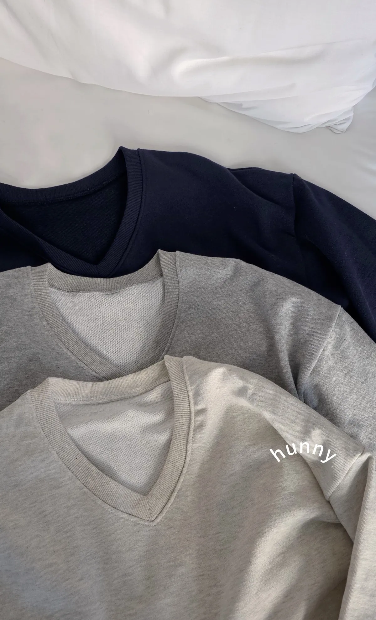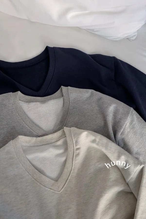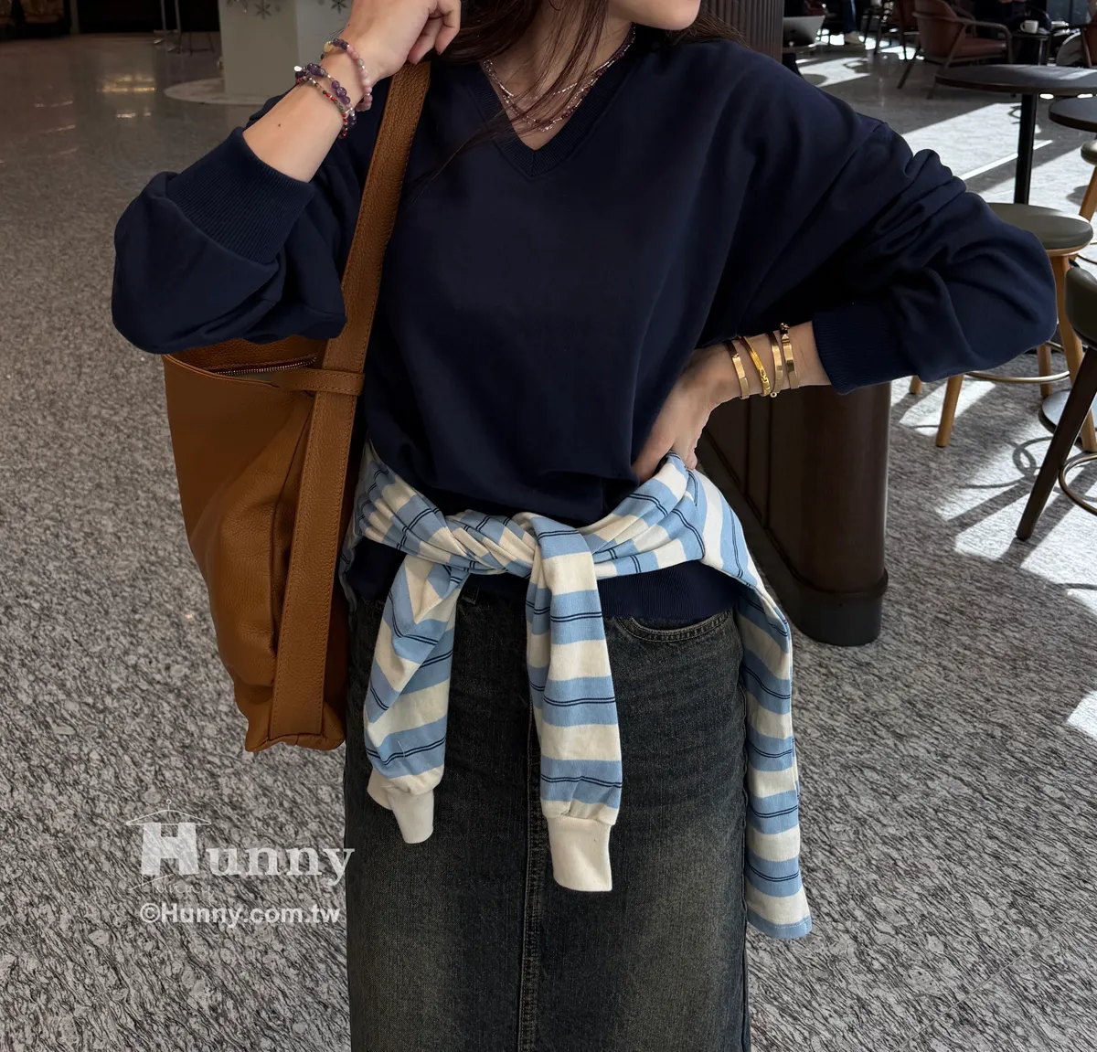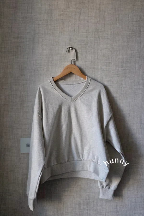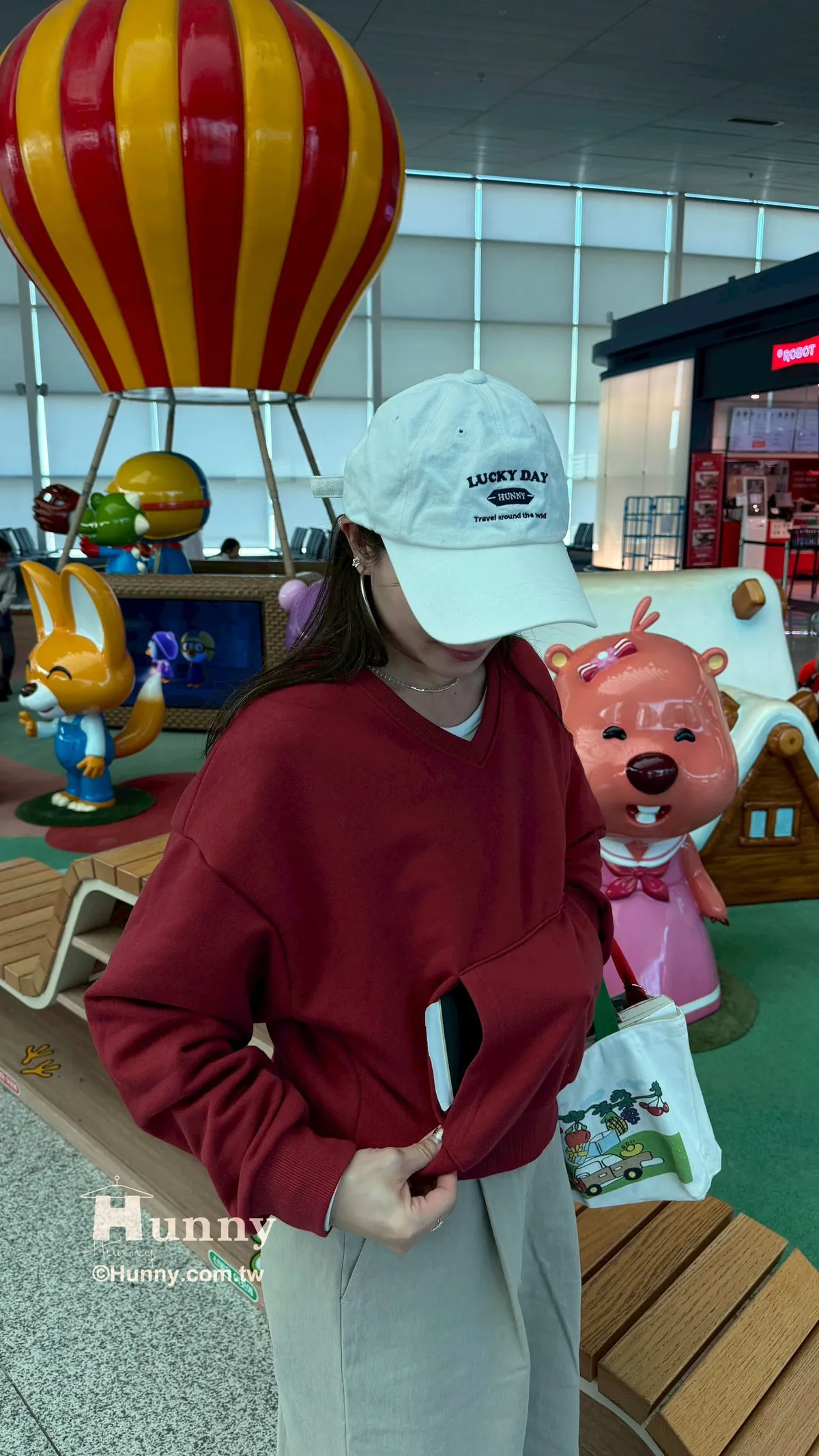 Hunny806 獨家設計款 小臉蛋大V領高級棉t 米/波爾多紅有口袋 現貨