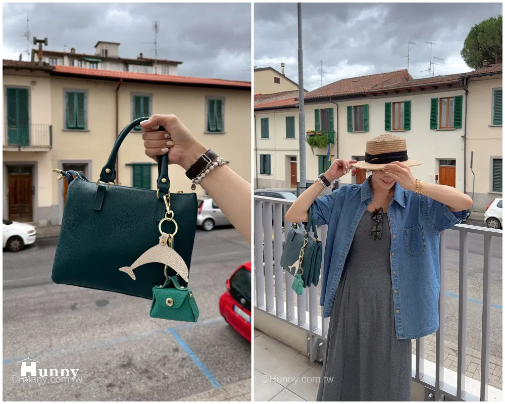 ITALY699-2 義大利真皮革金釦吊飾 海豚/木馬/星星 (不挑色)