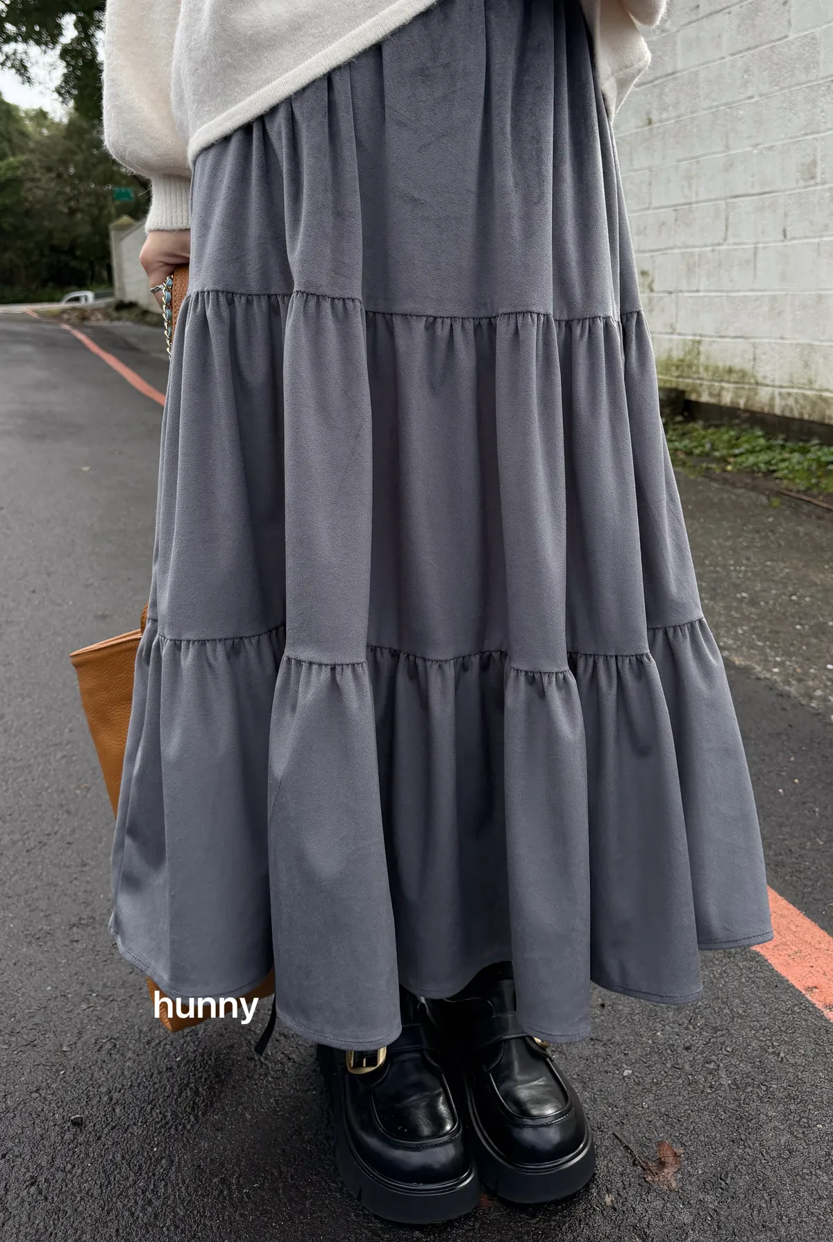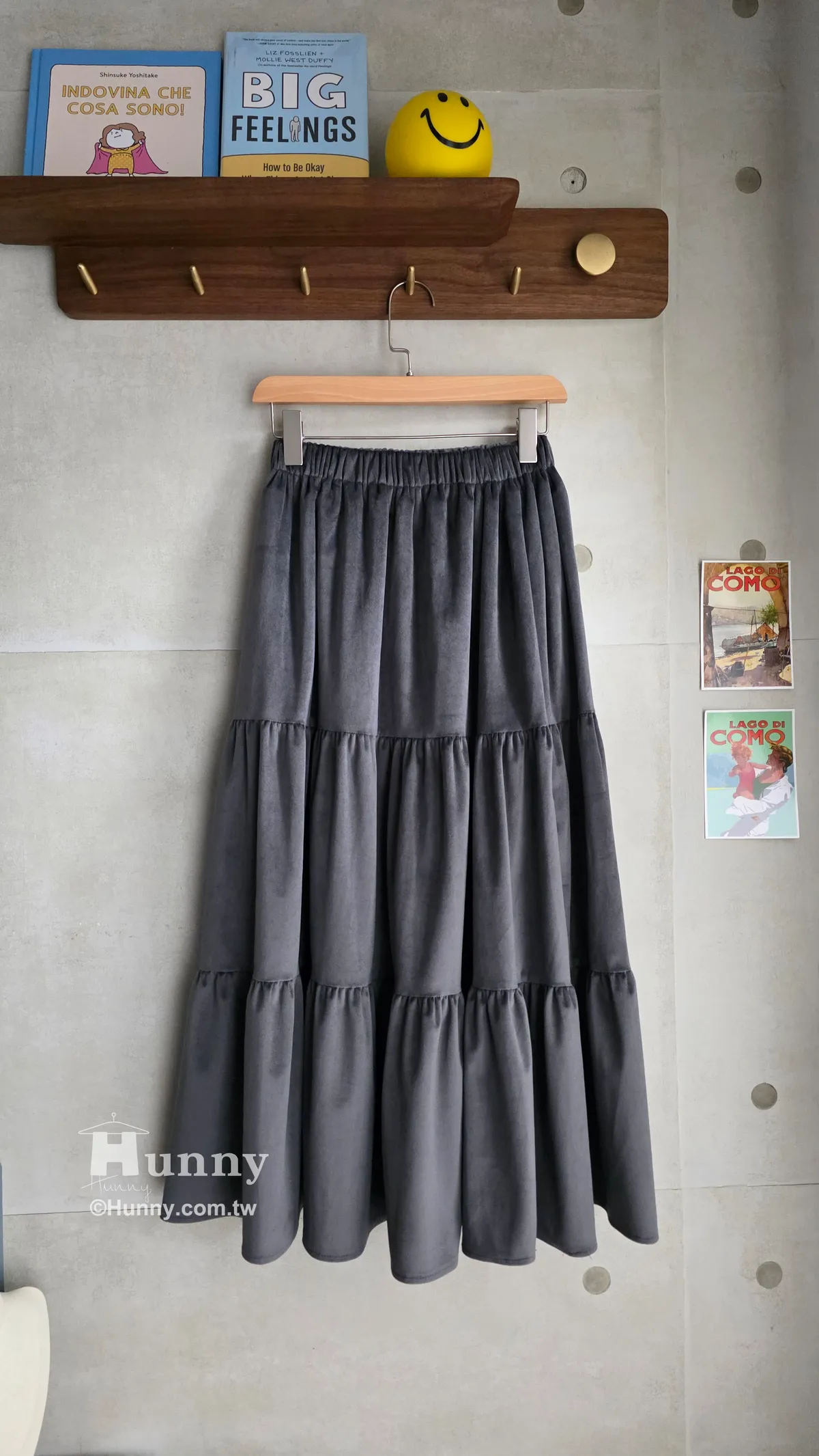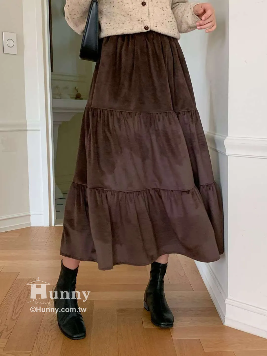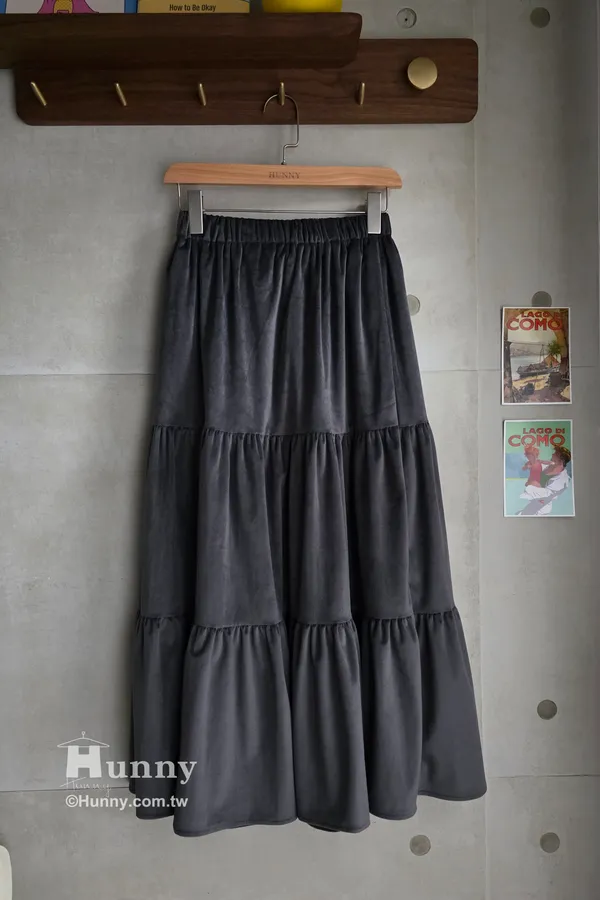 J10946 優雅微微光澤絨布蛋糕裙 黑/咖/灰