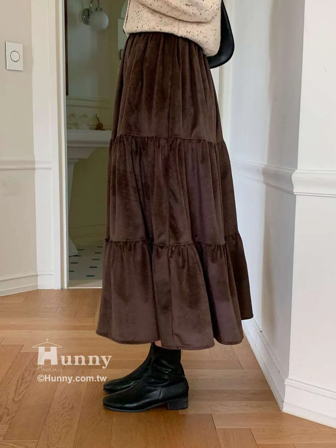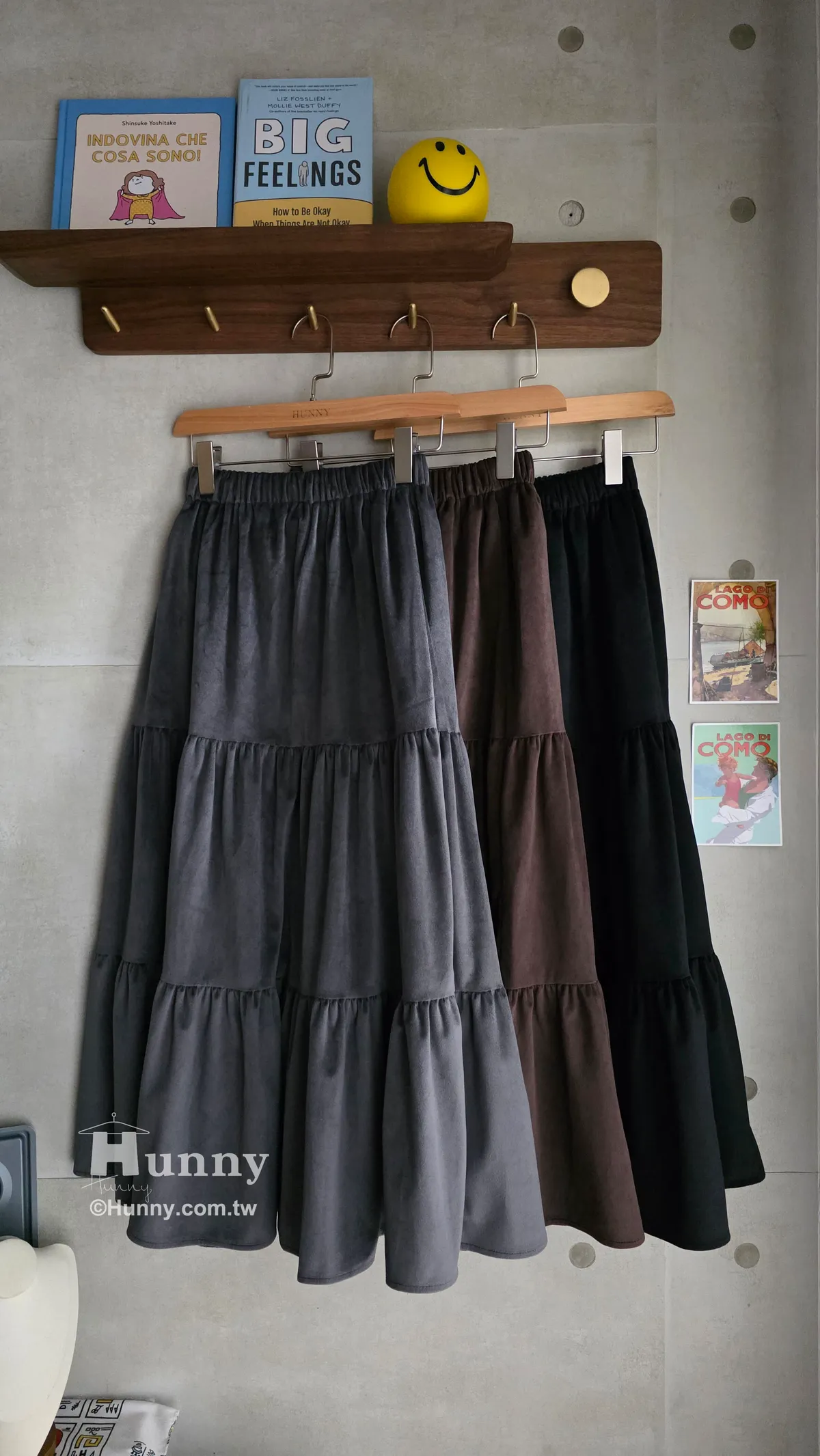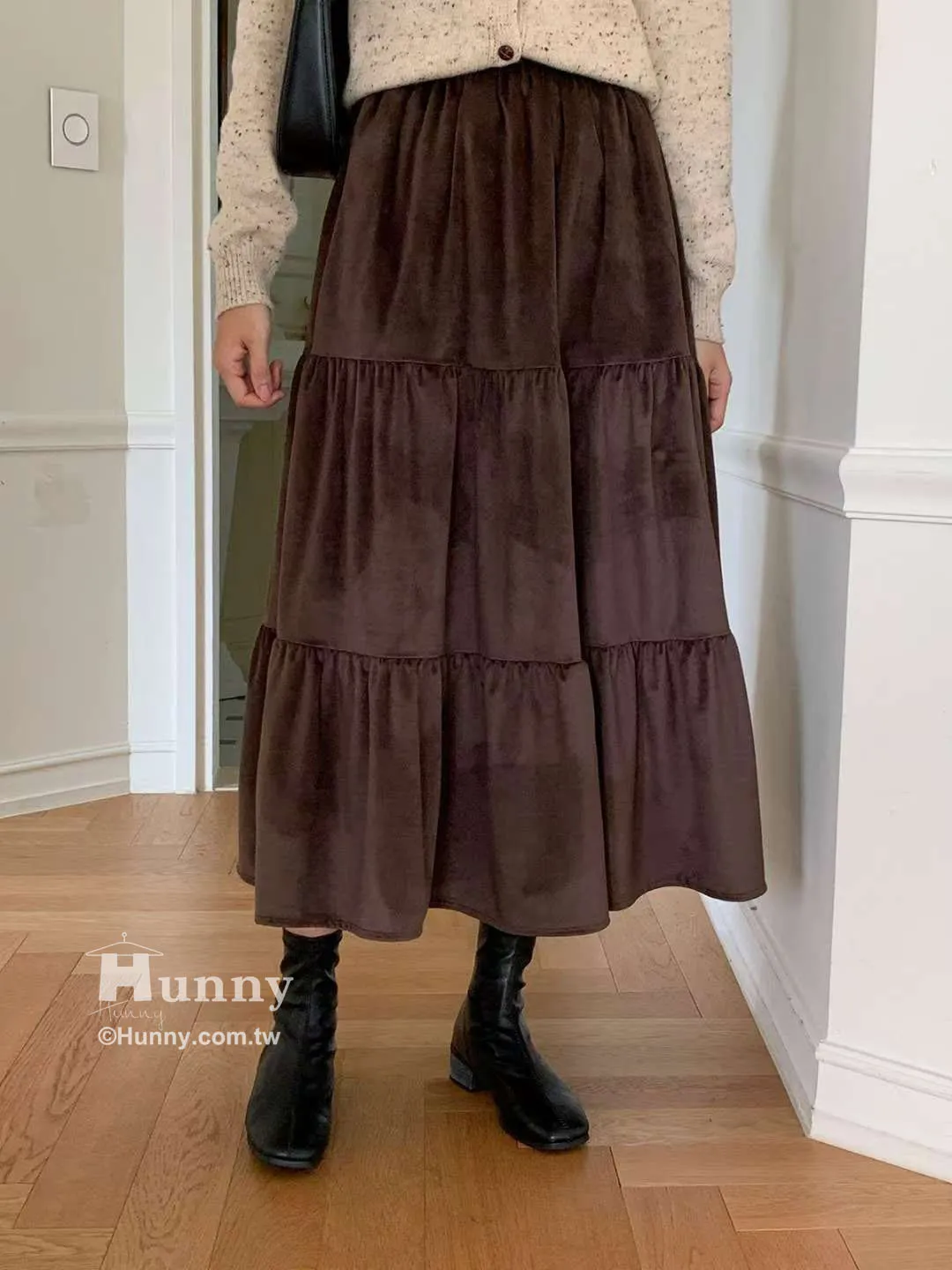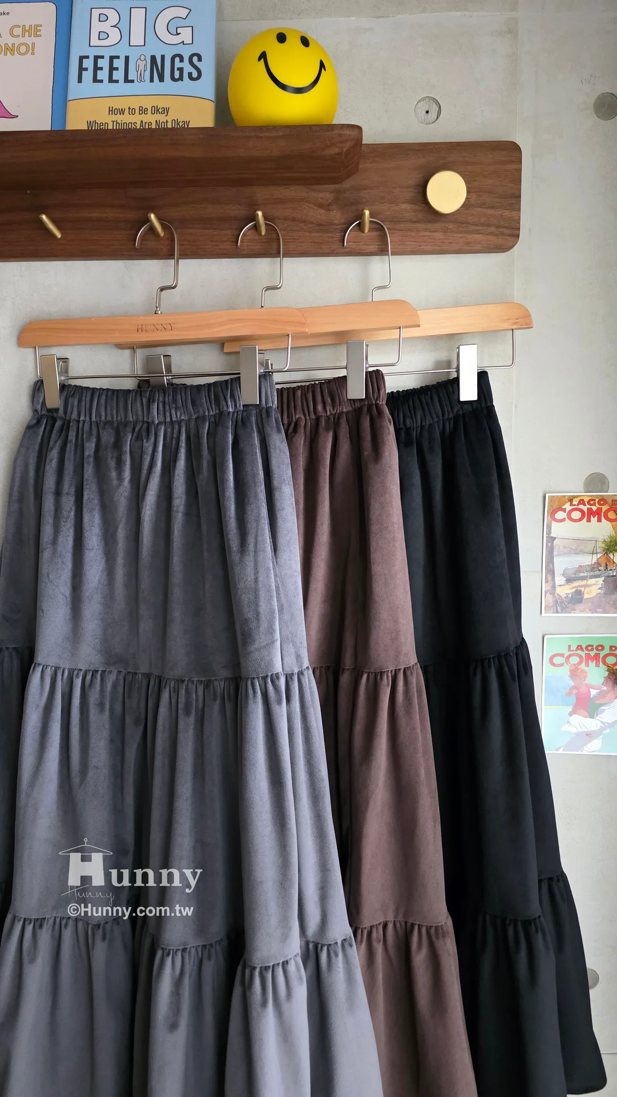 J10946 優雅微微光澤絨布蛋糕裙 黑/咖/灰