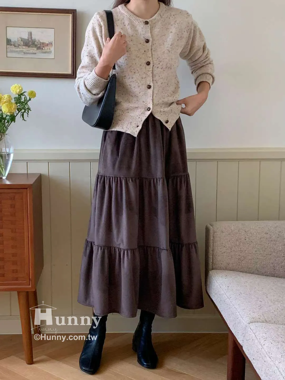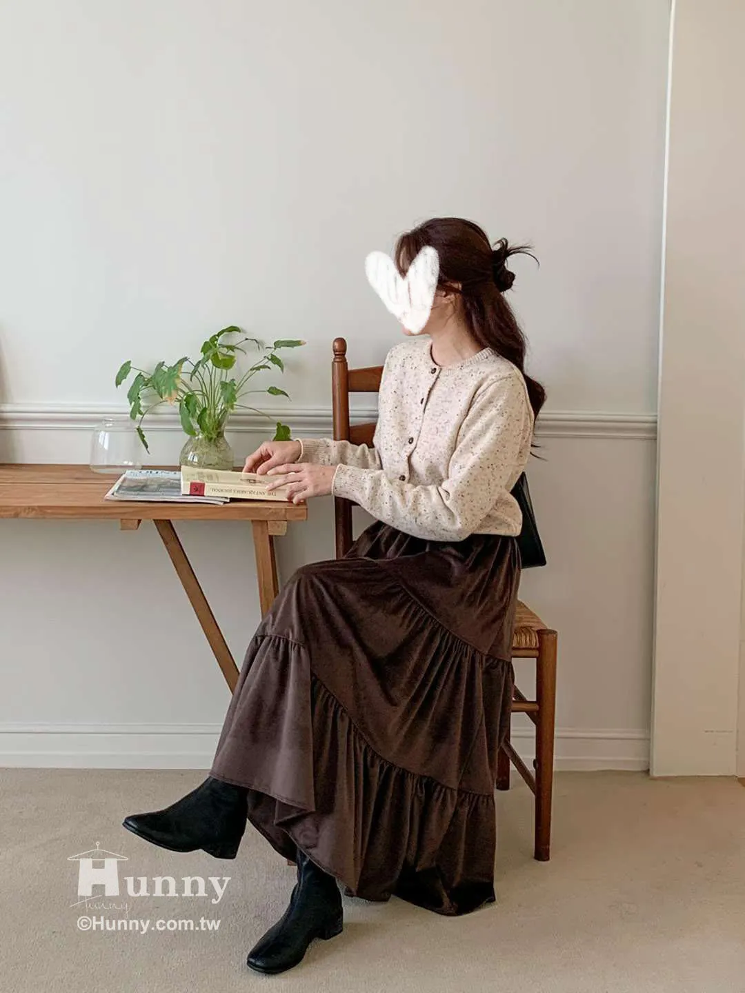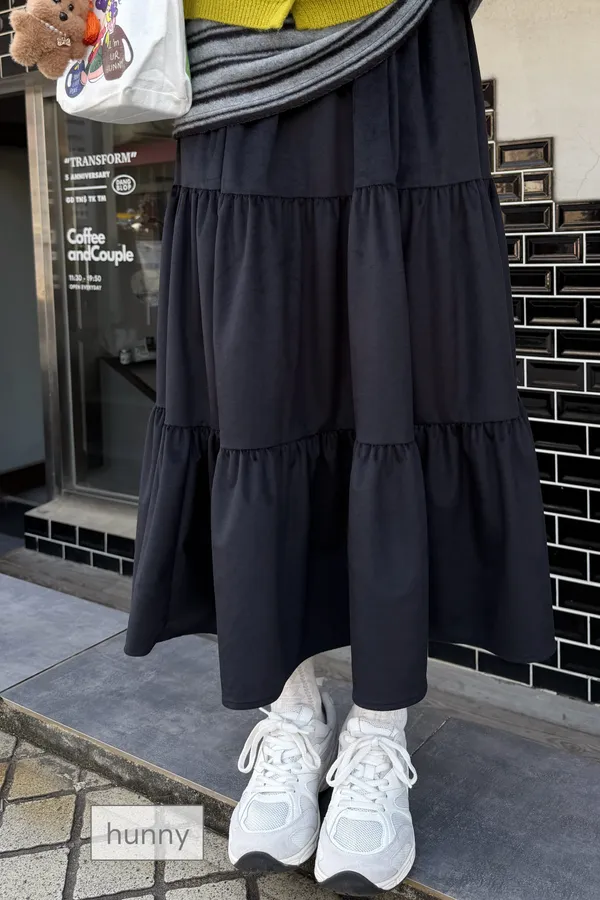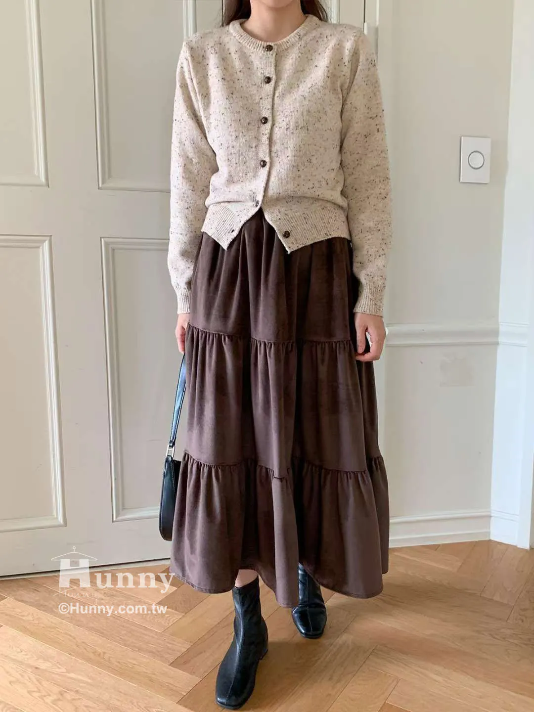 J10946 優雅微微光澤絨布蛋糕裙 黑/咖/灰