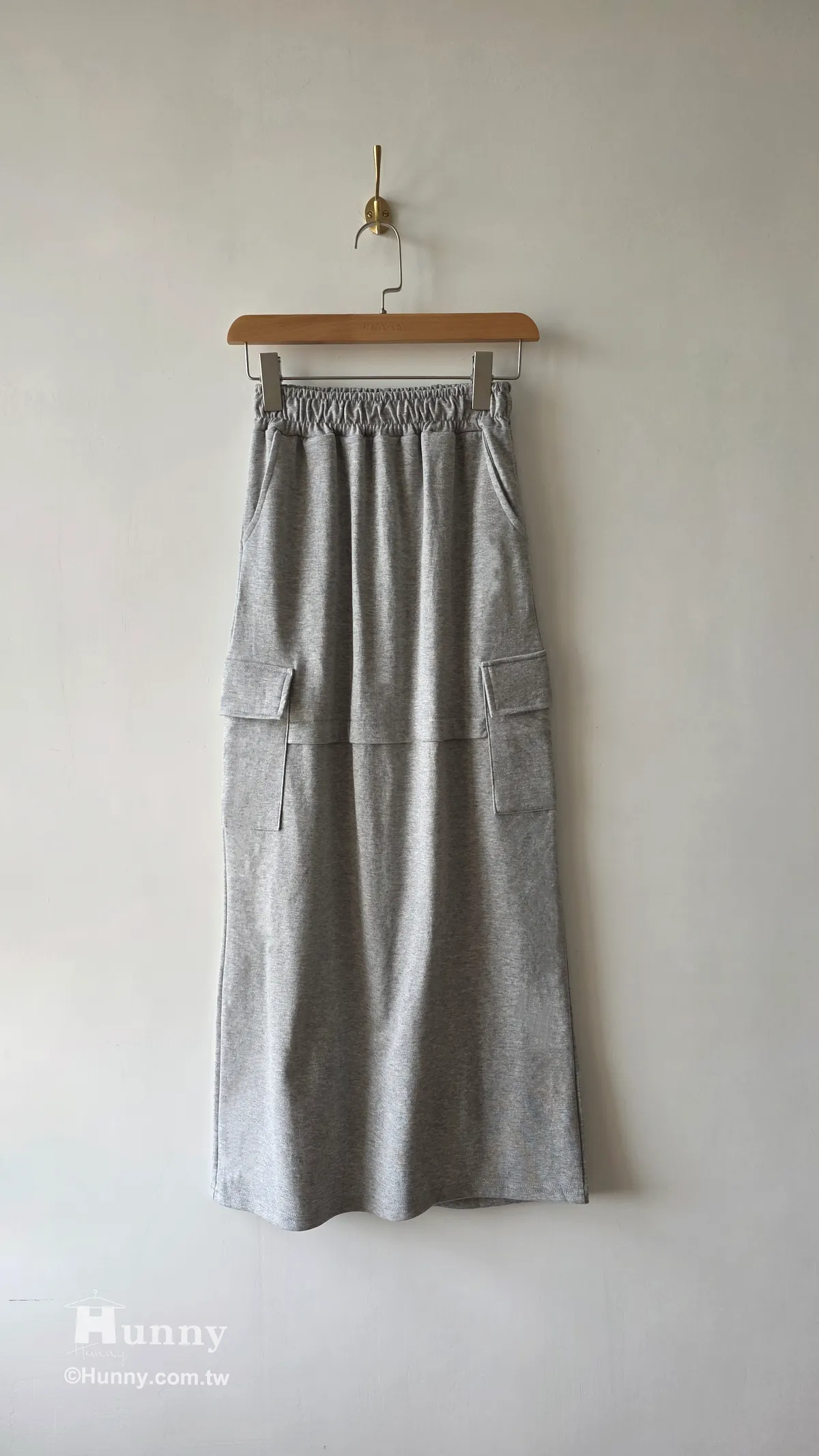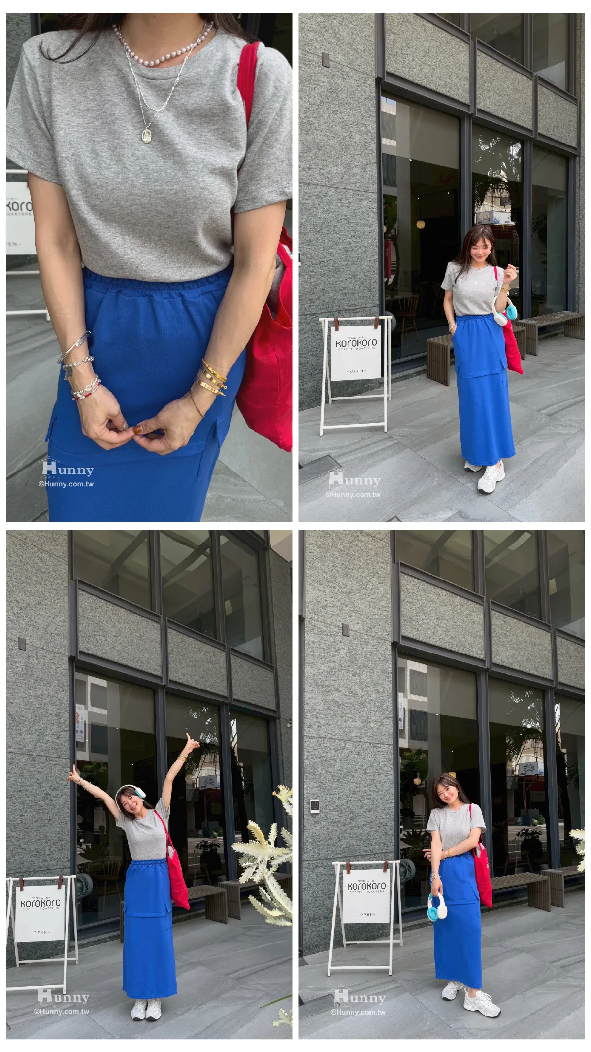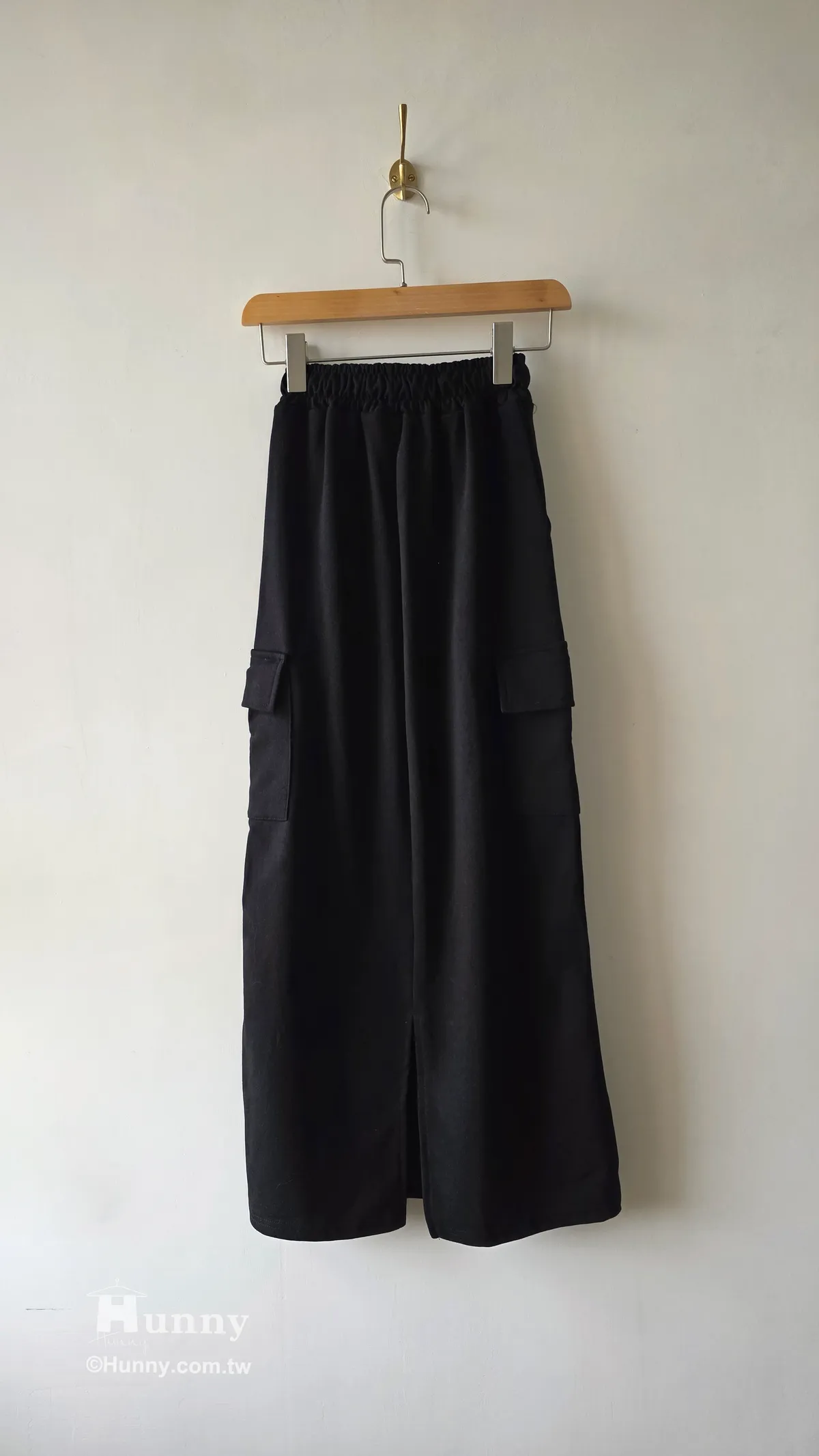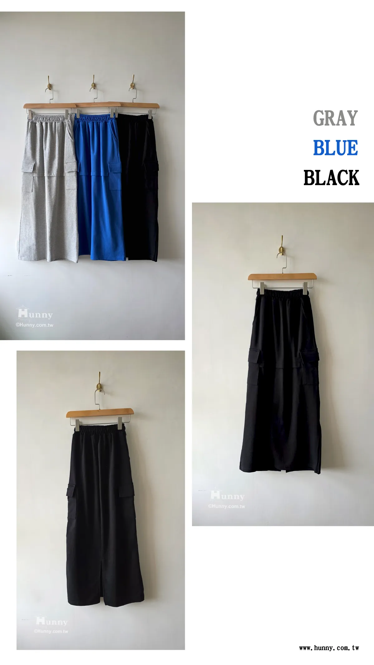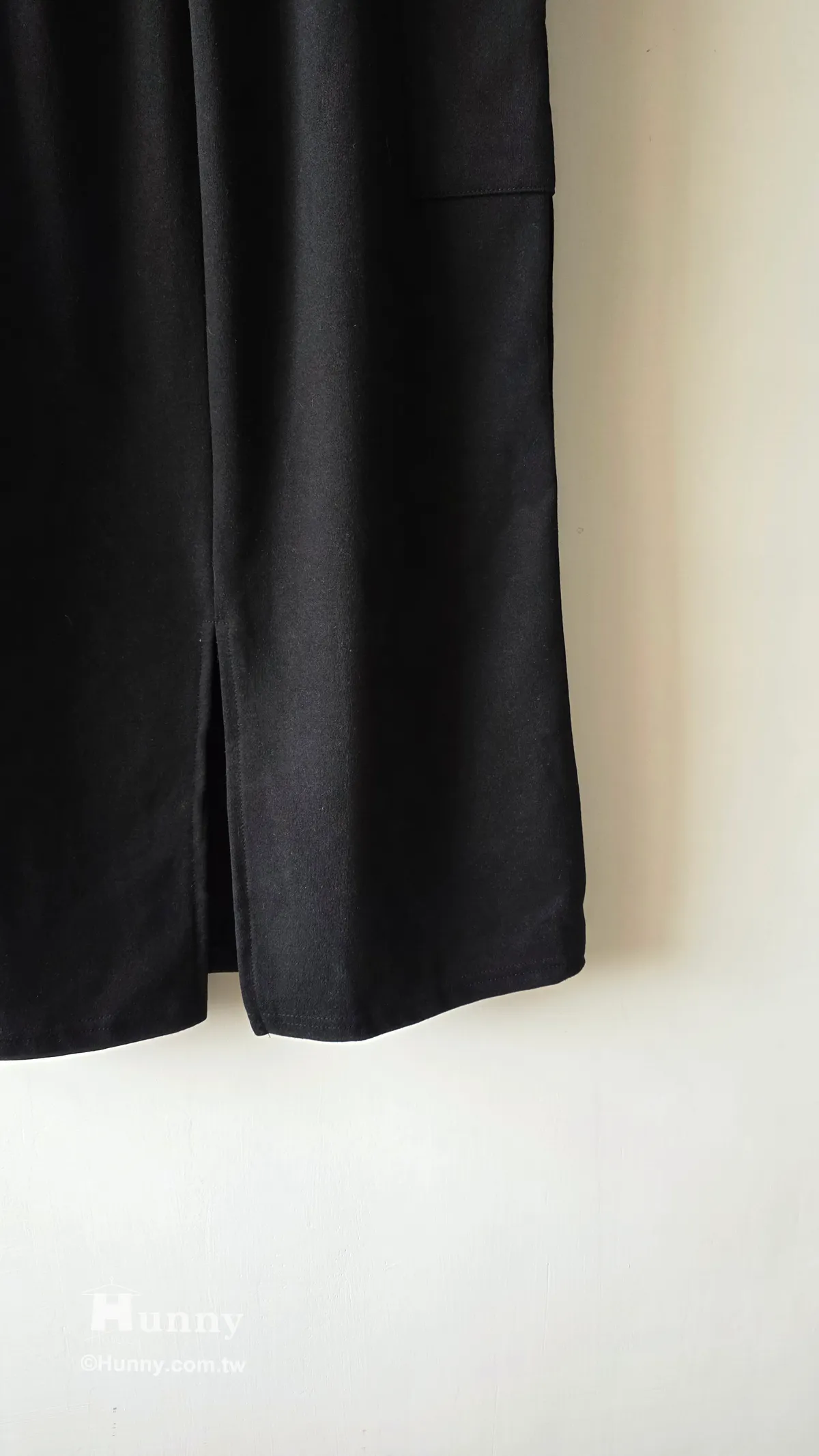 J91803 skinny蓋蓋口袋工裝棉裙 黑D/藍 現貨