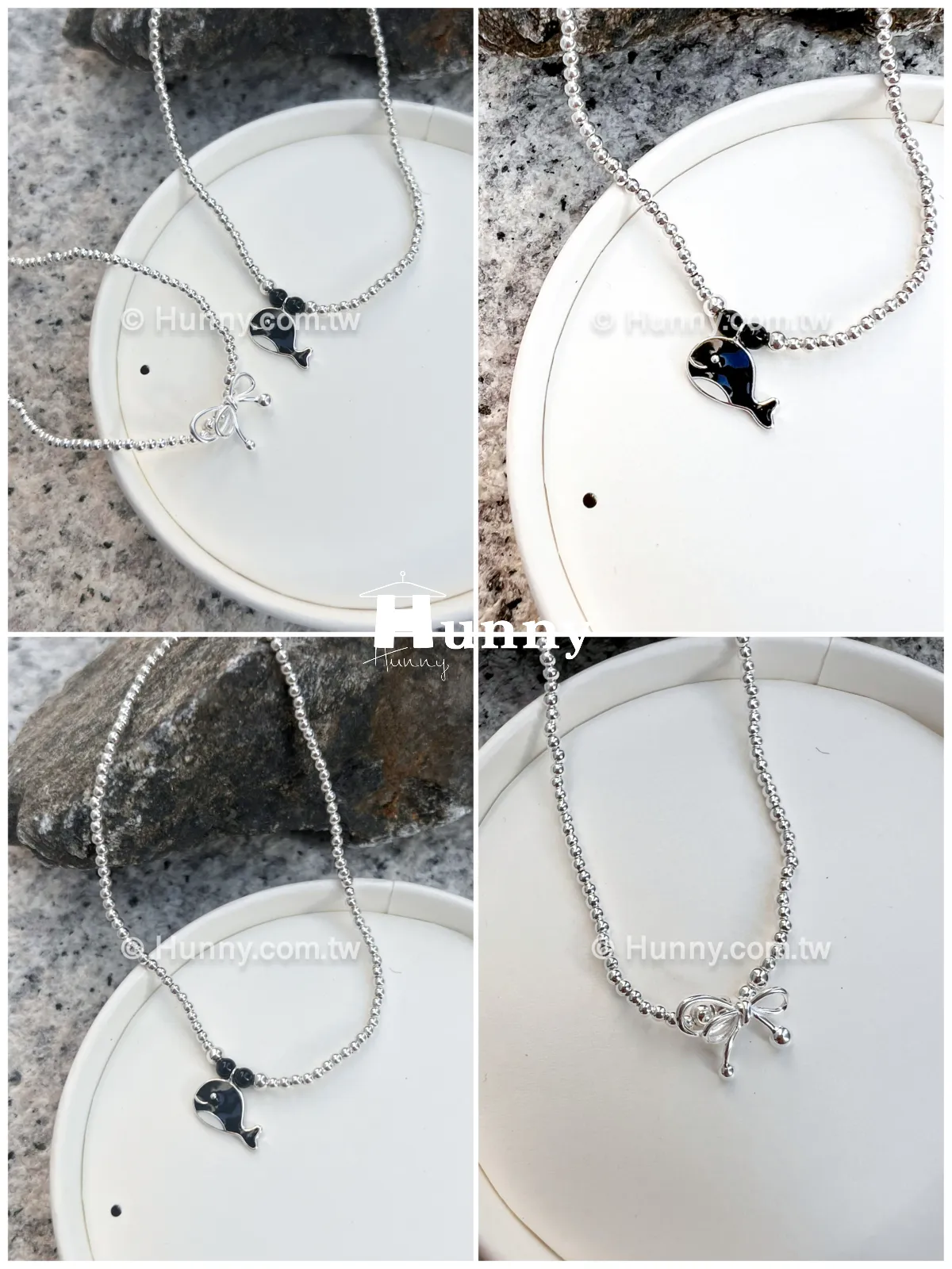 KR51733 獨家!925純銀療癒小墜子腳鍊 蝴蝶結/鯨魚