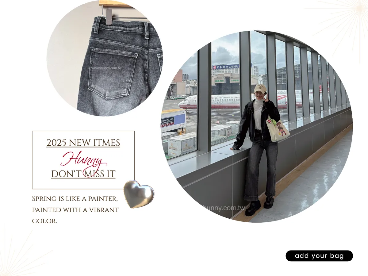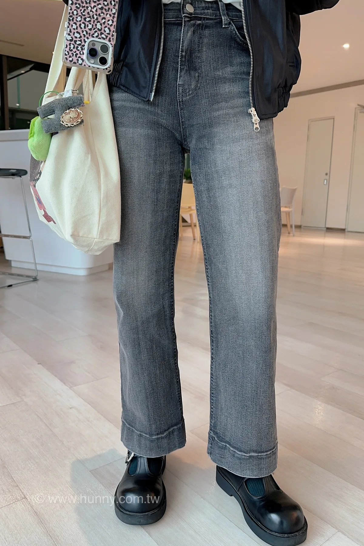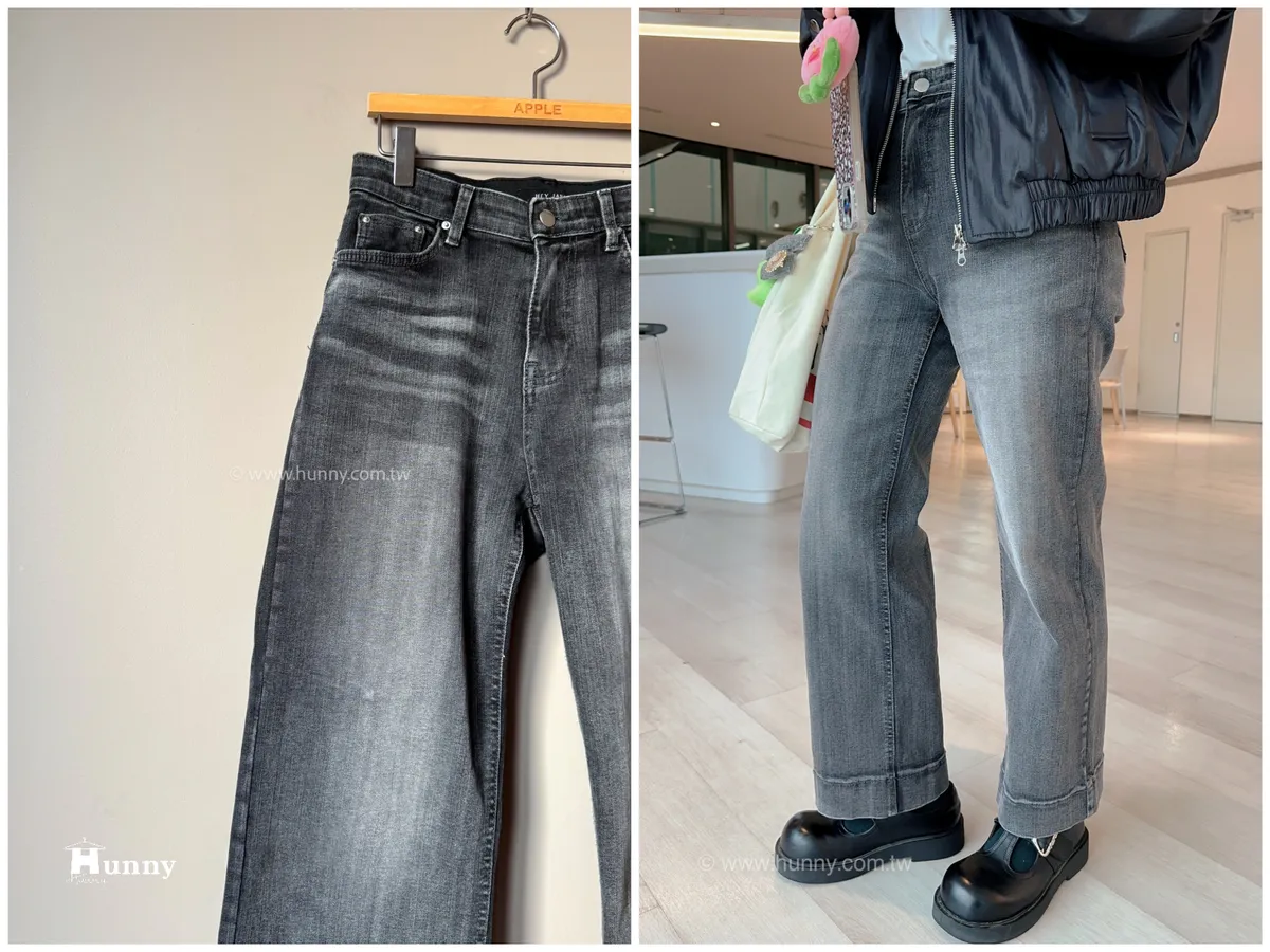 高磅數菸灰色特調刷色直筒褲 L 現貨(B)