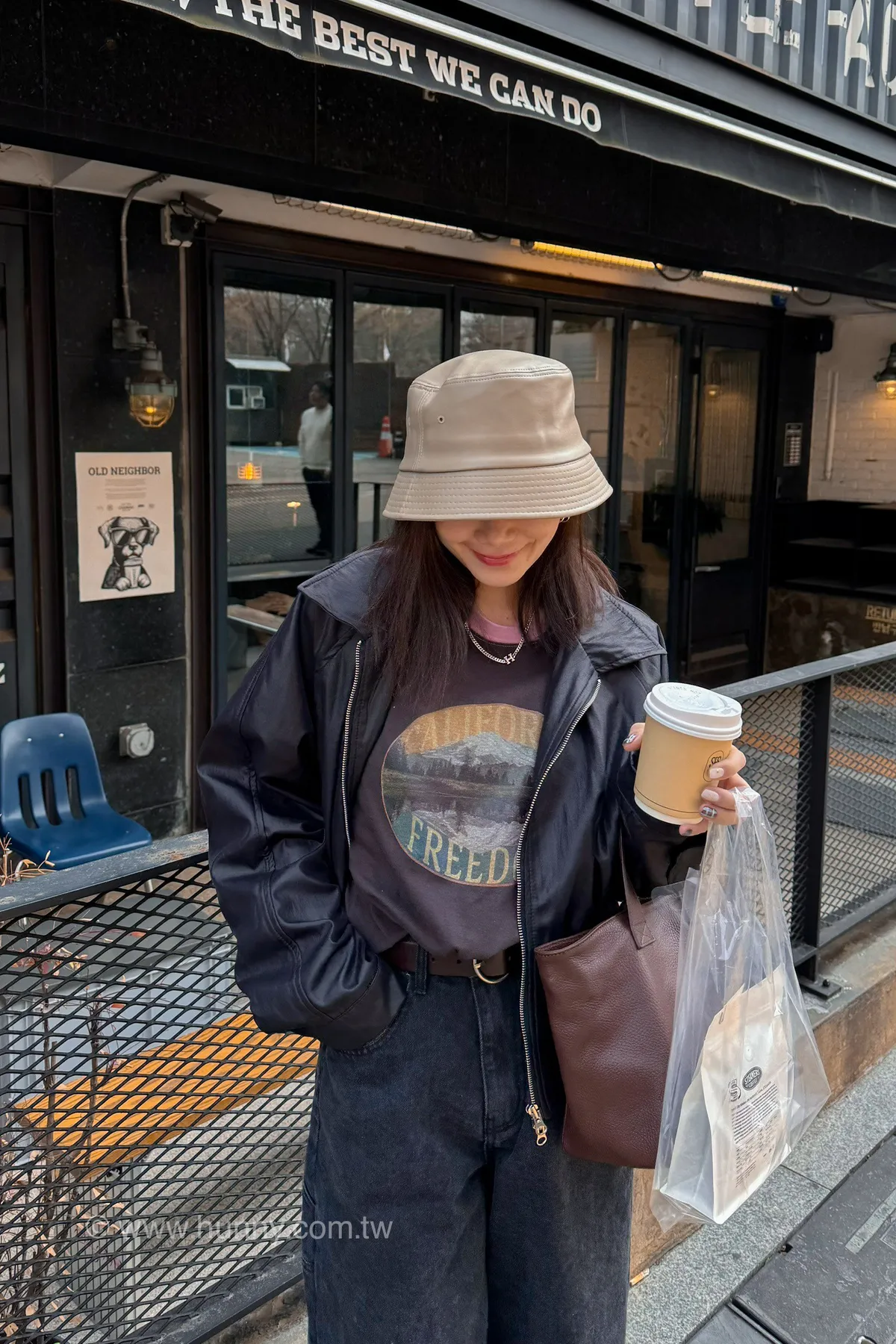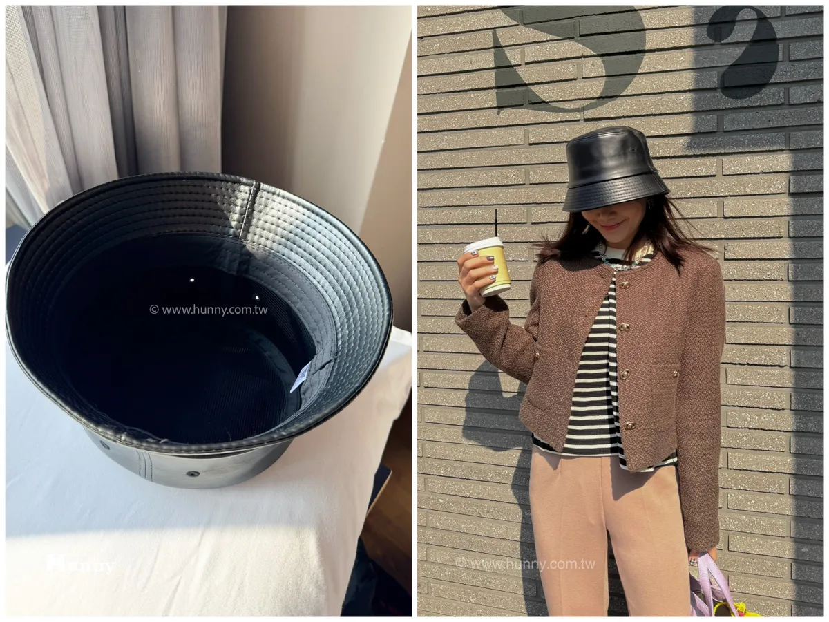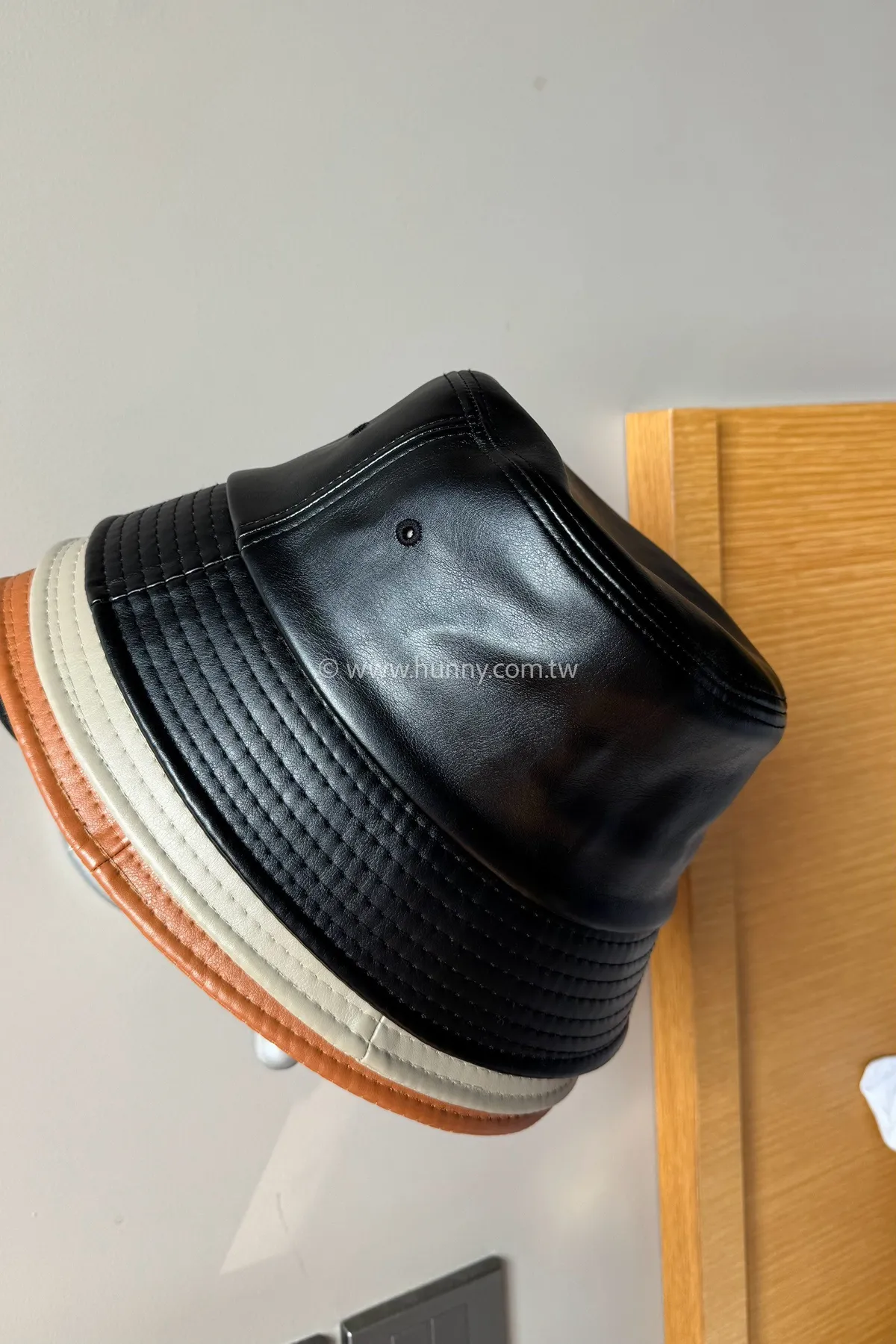 去有風的地方皮質漁夫帽 黑/焦糖現貨(B)