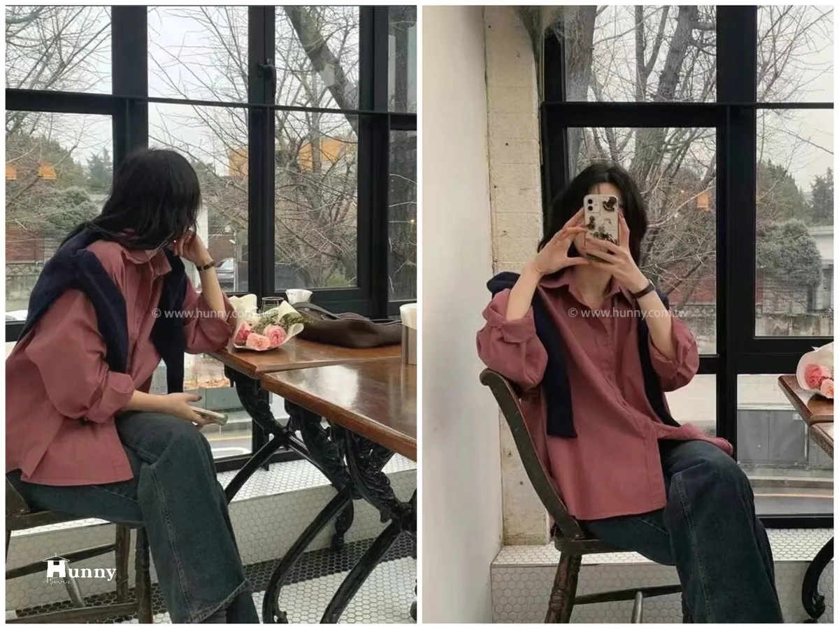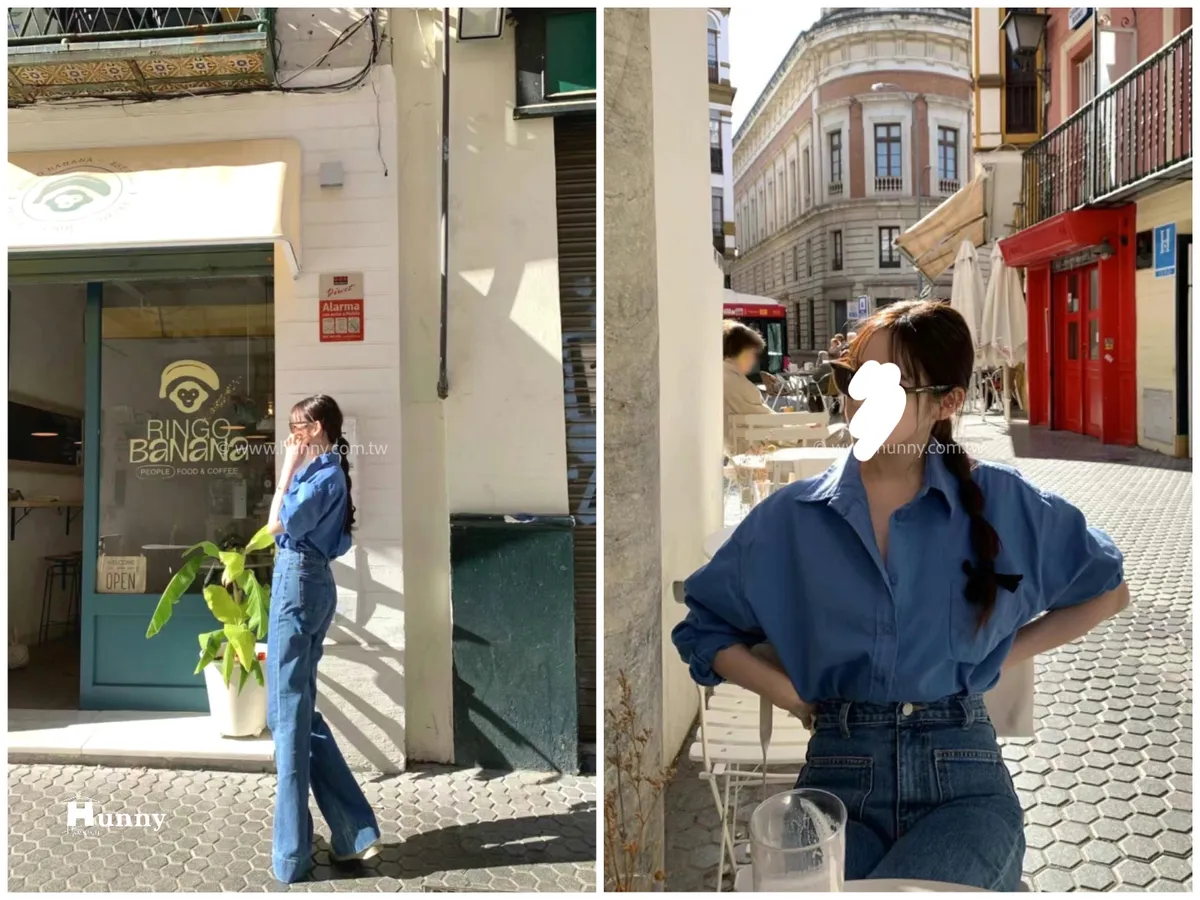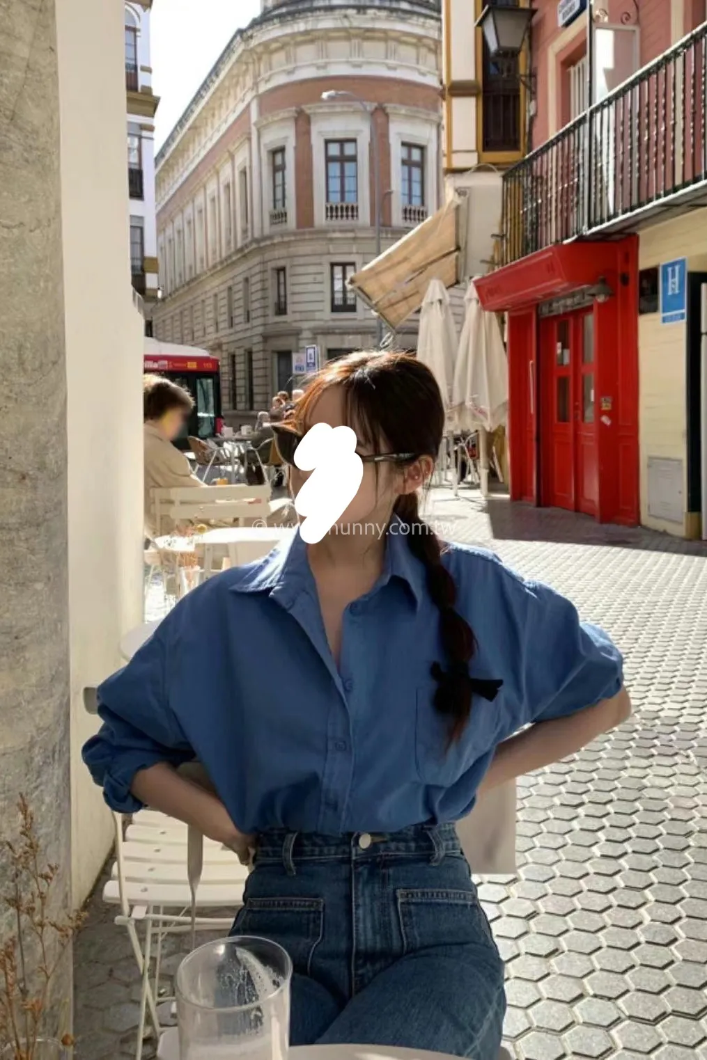 girly 厚磅卡其單口袋襯外 藍/粉/白/紫 藍現貨