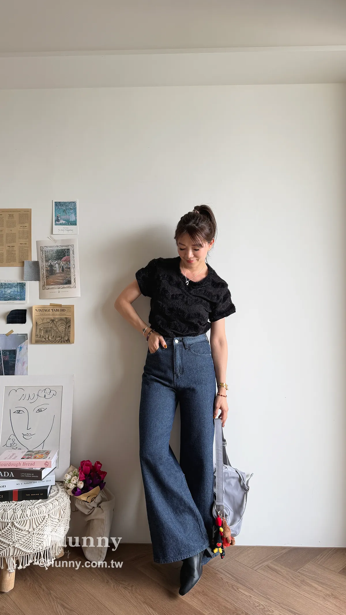 非常推薦這款高質感的格織丹寧寬褲💙