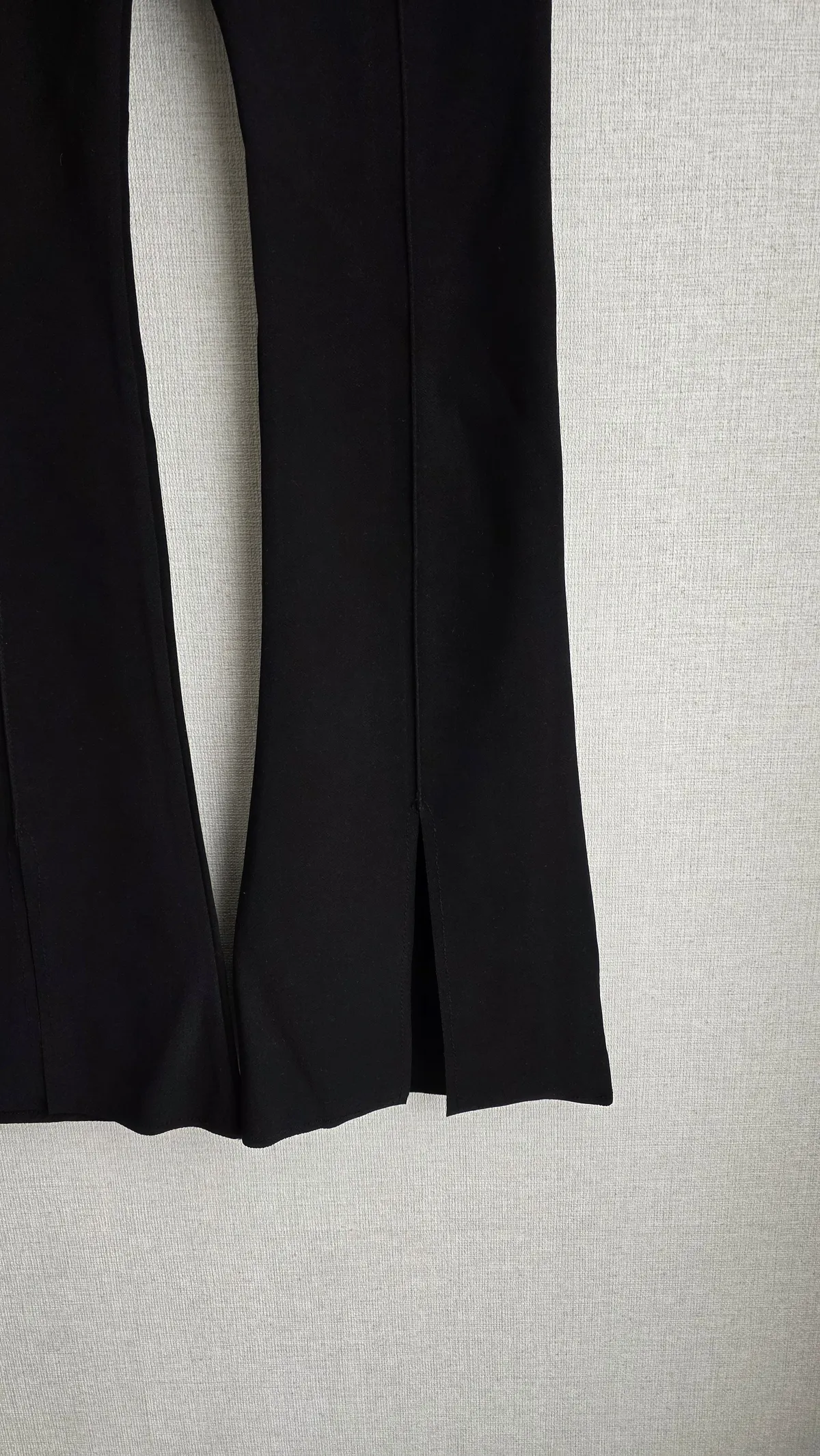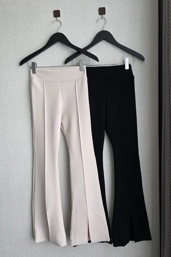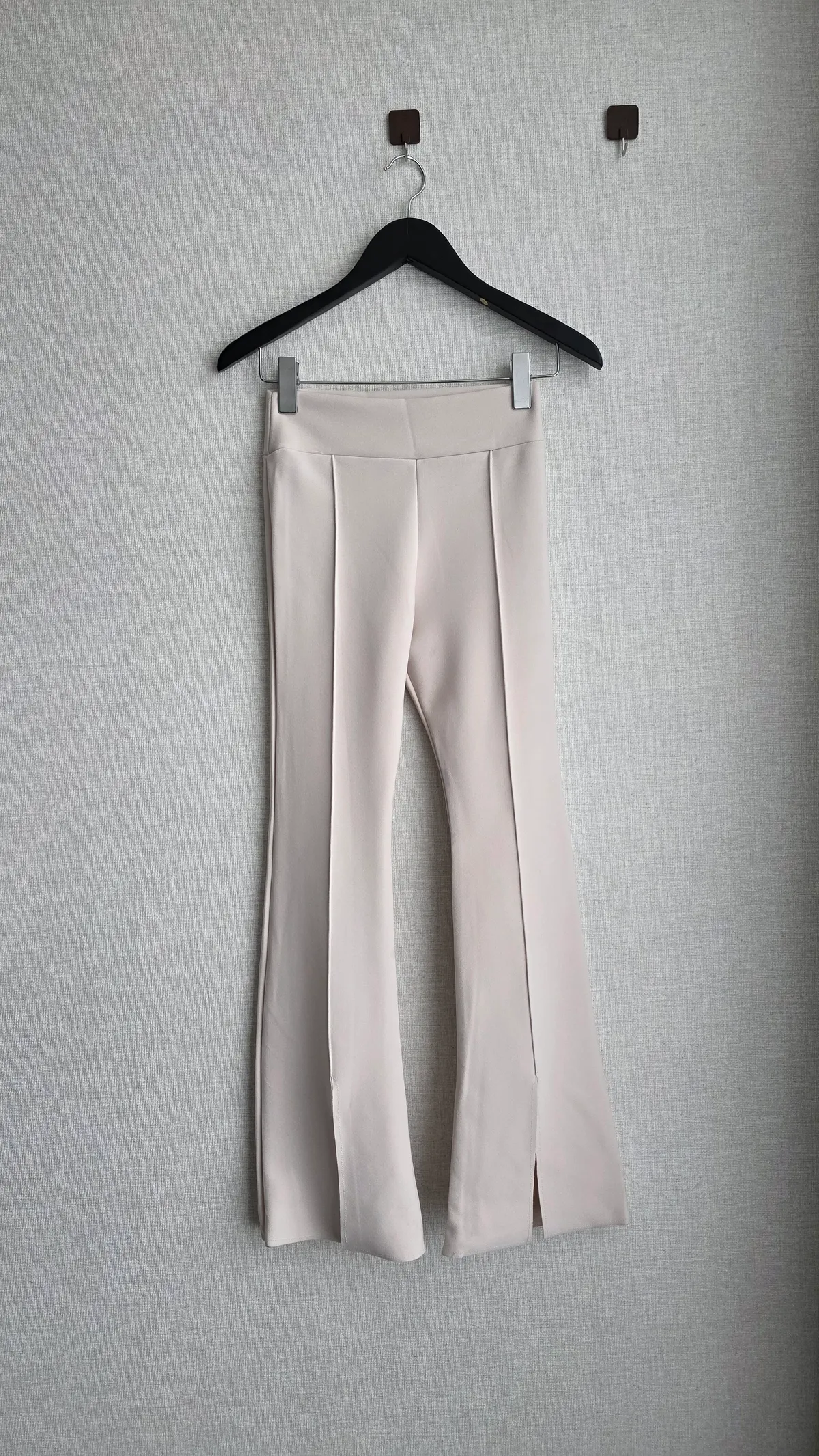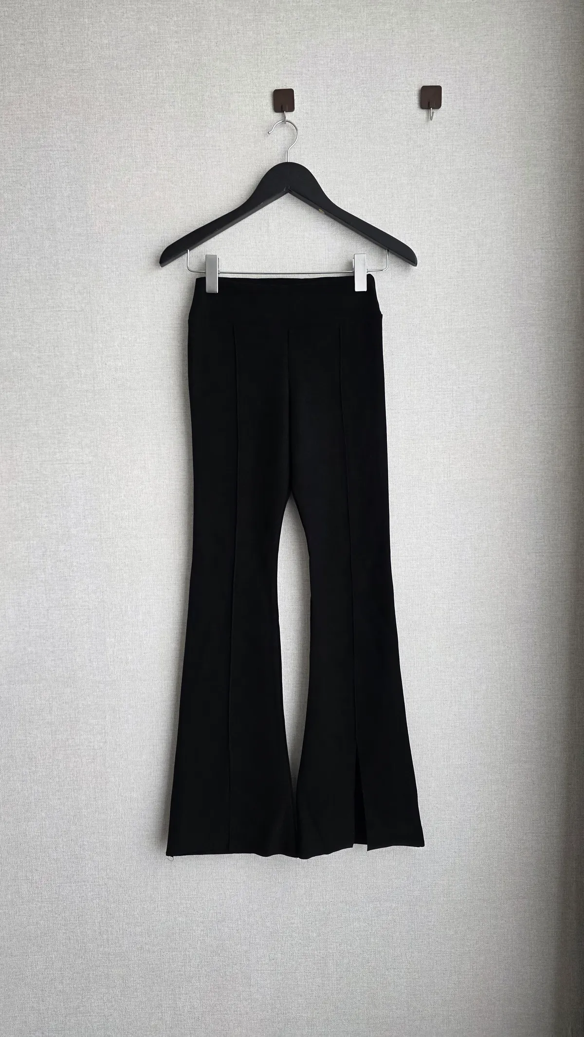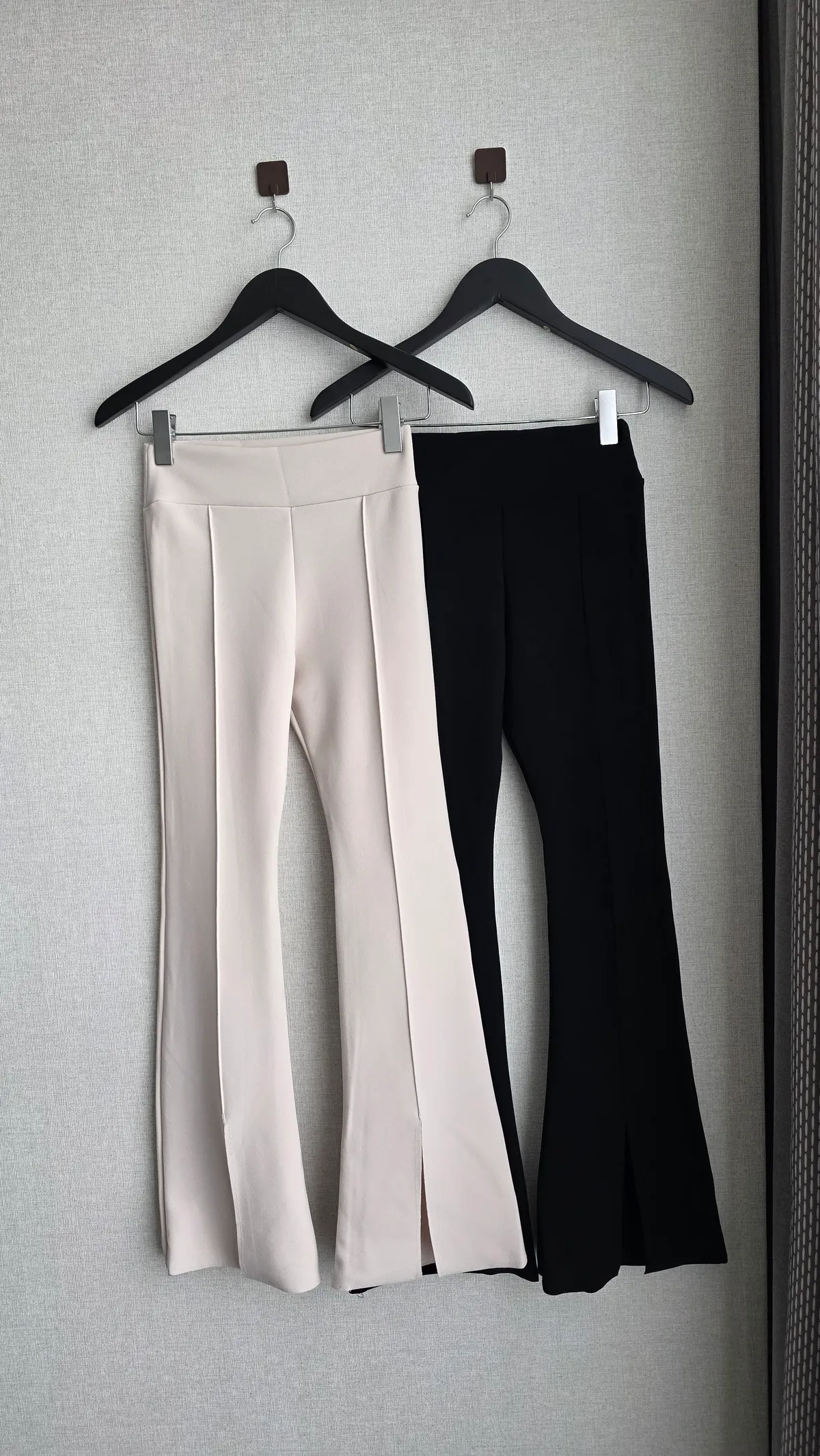 P102991 漫畫感超長腿開叉靴型褲 黑/米 米現貨