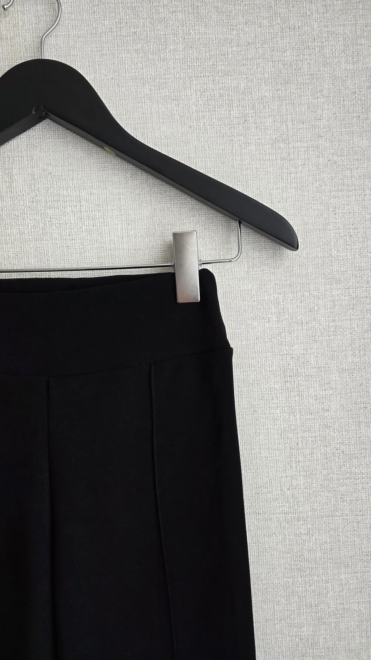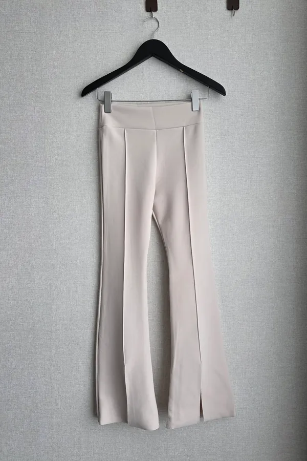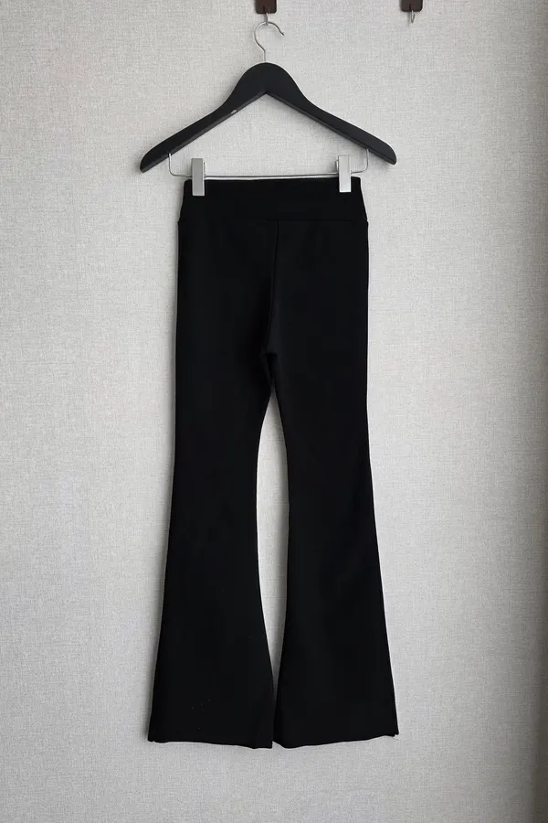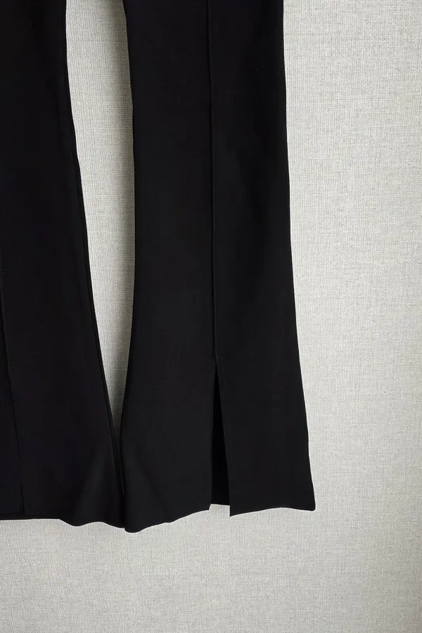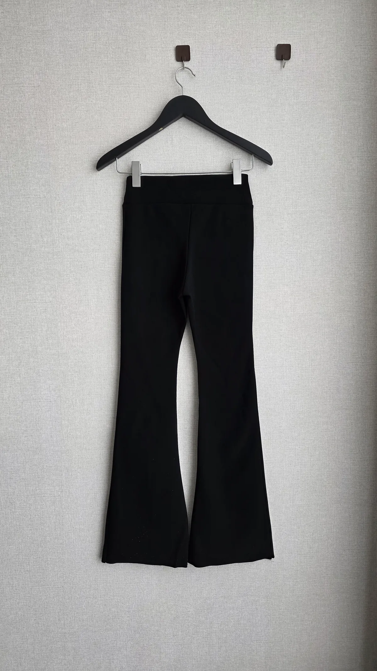 P102991 漫畫感超長腿開叉靴型褲 黑/米 米現貨