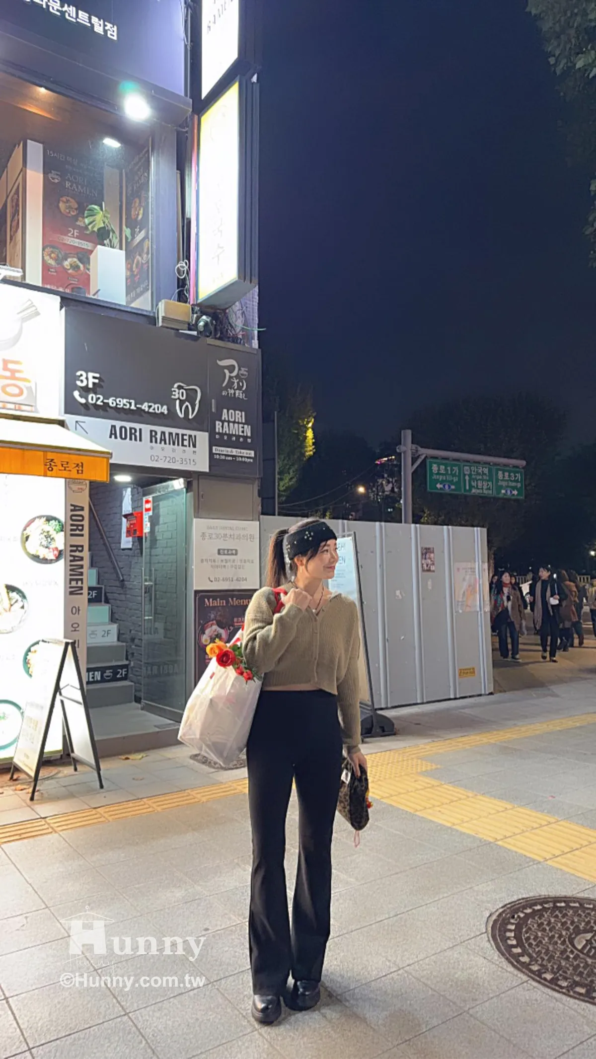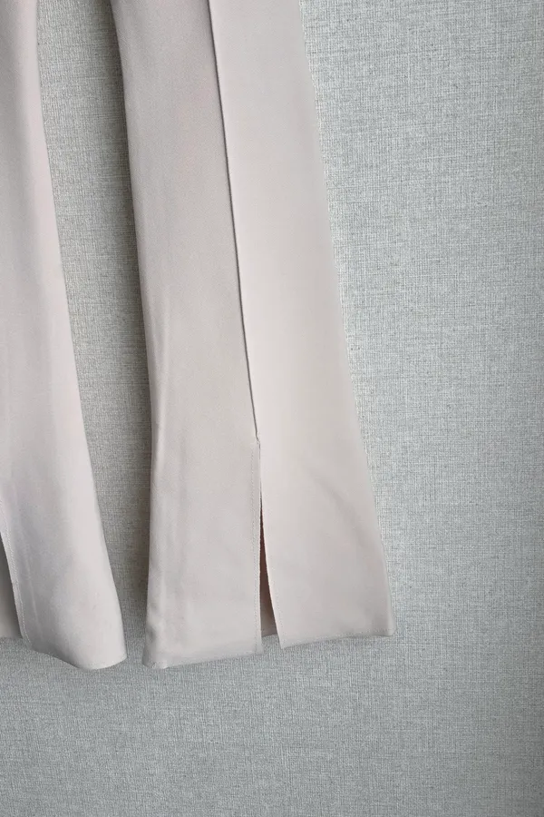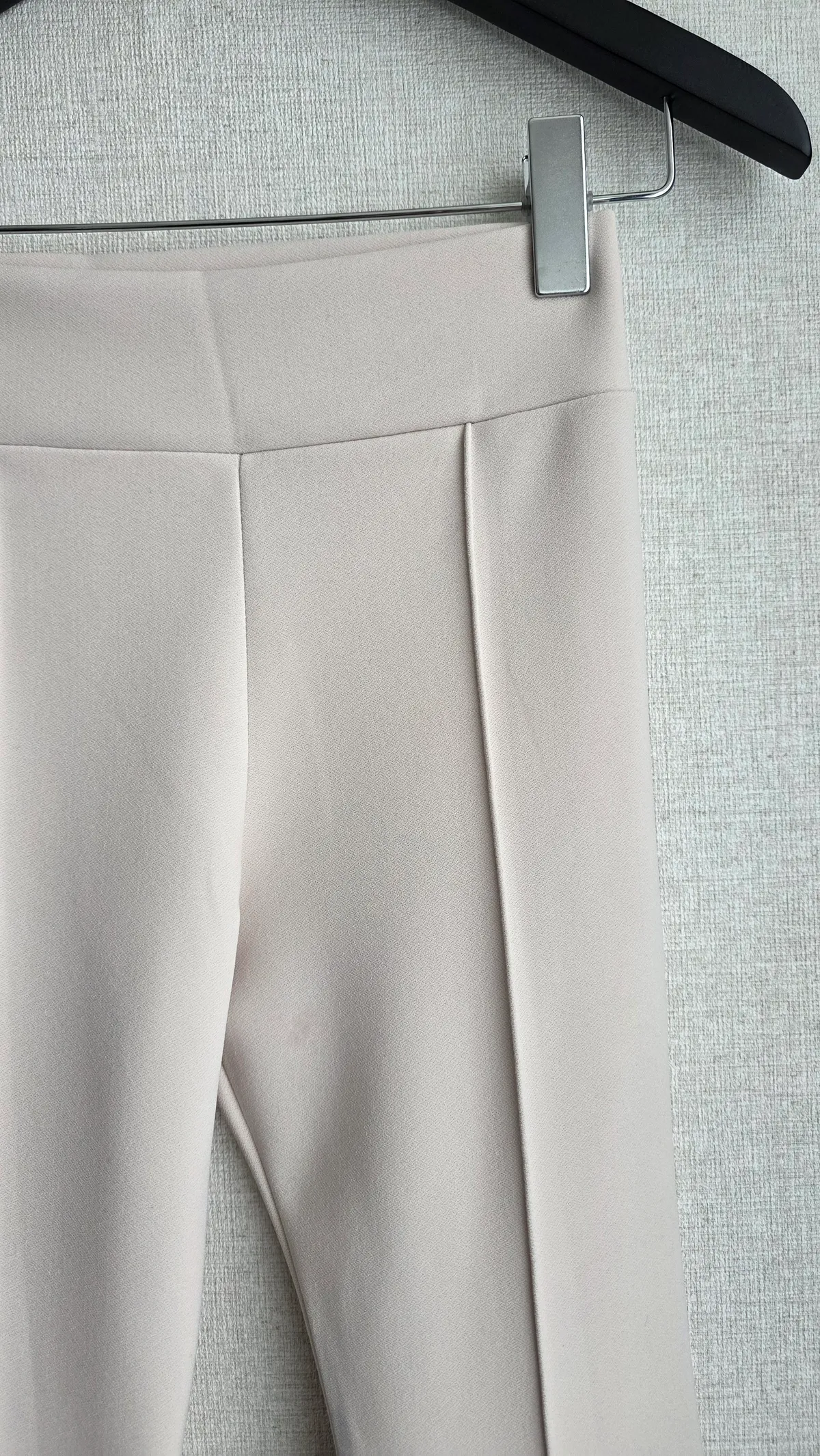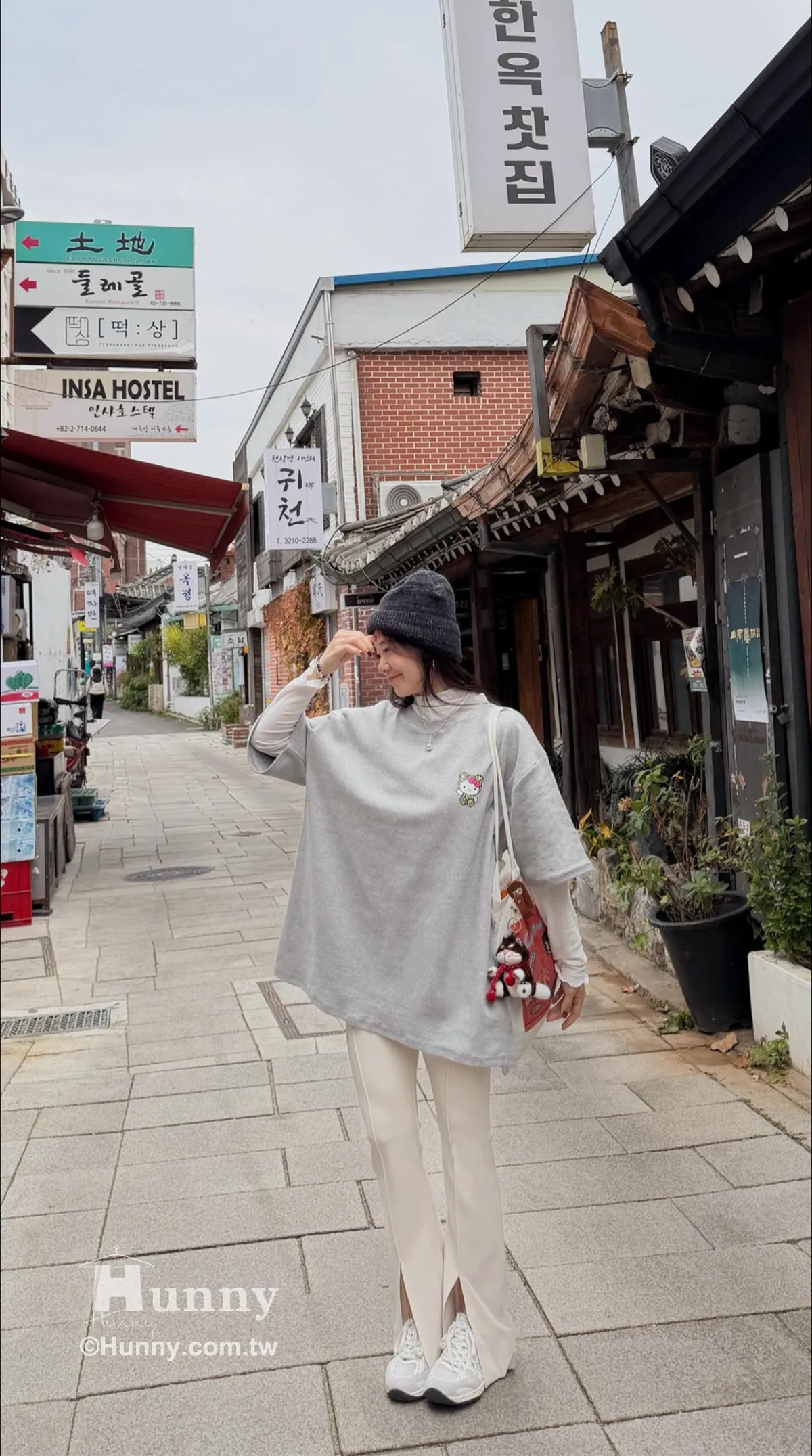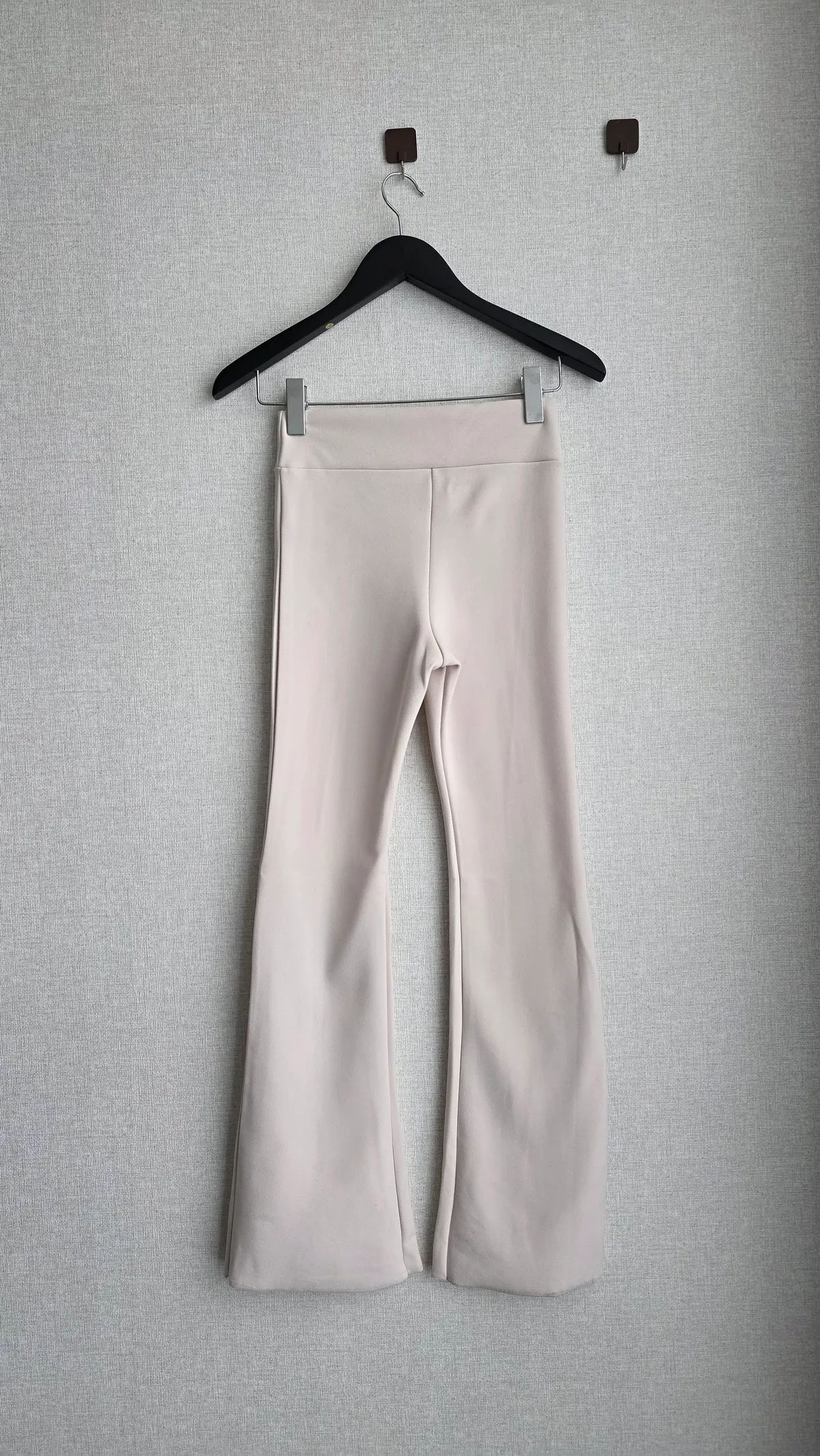 P102991 漫畫感超長腿開叉靴型褲 黑/米 米現貨