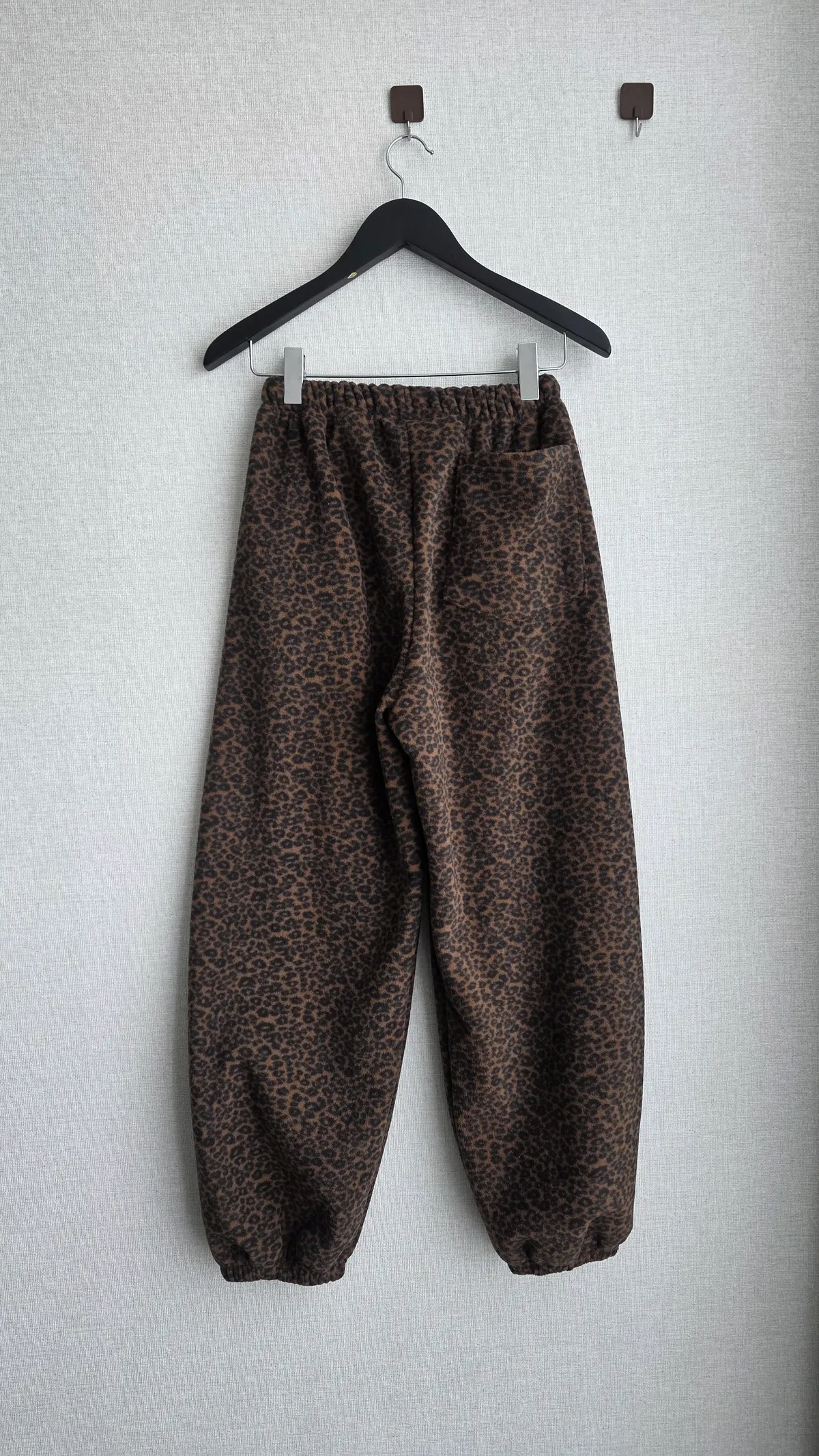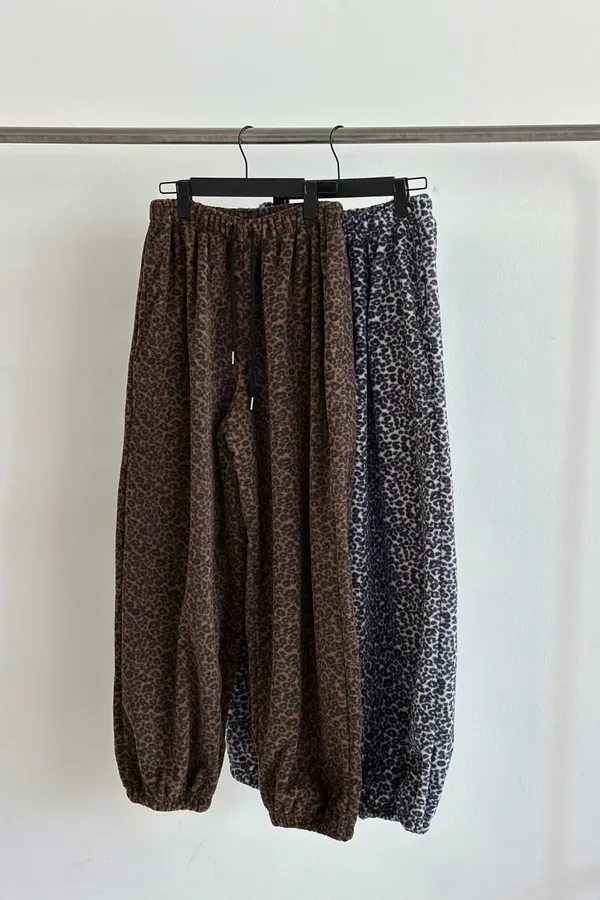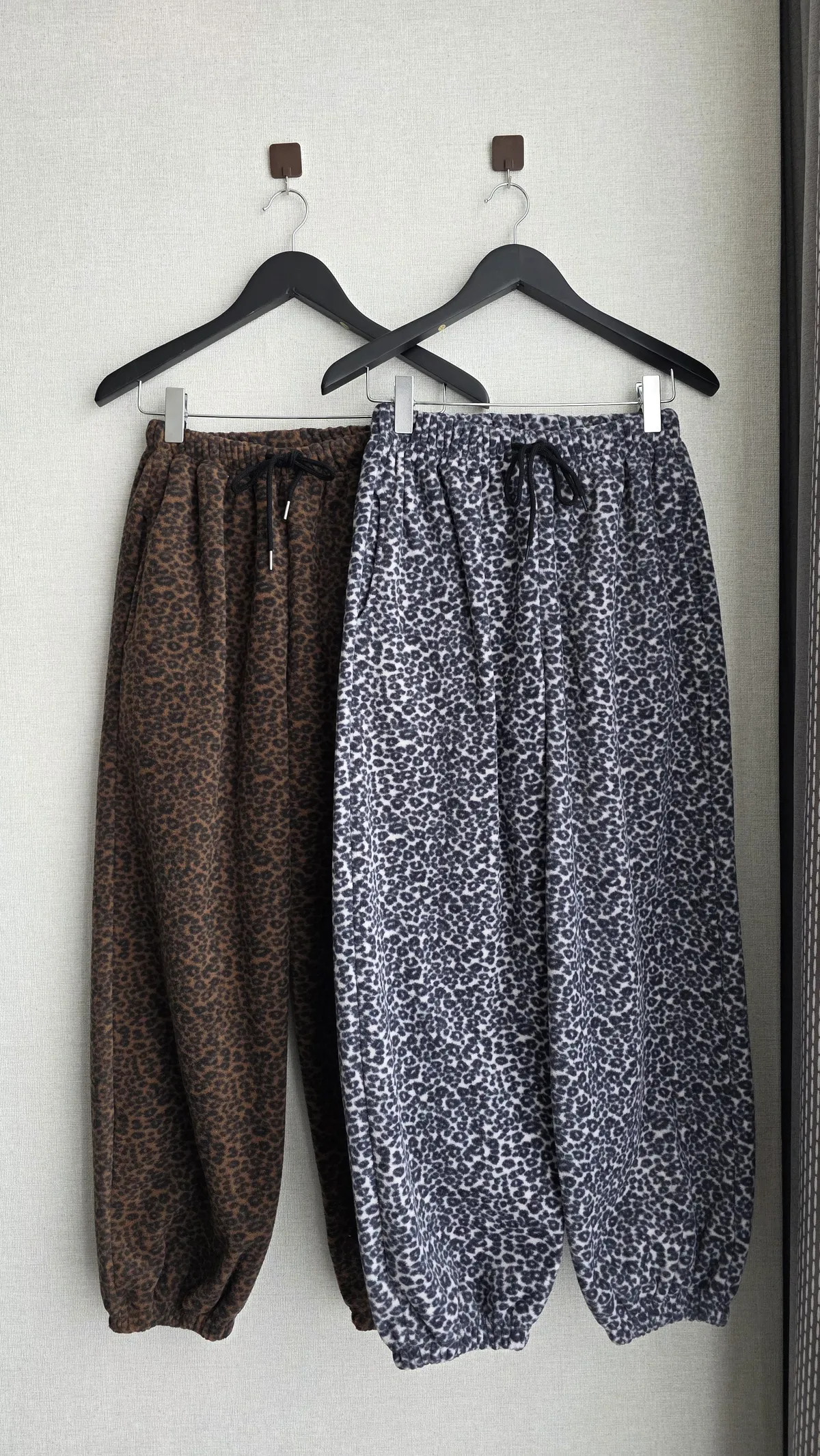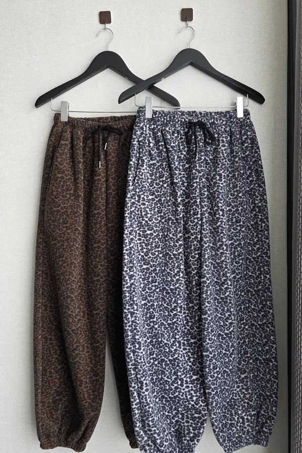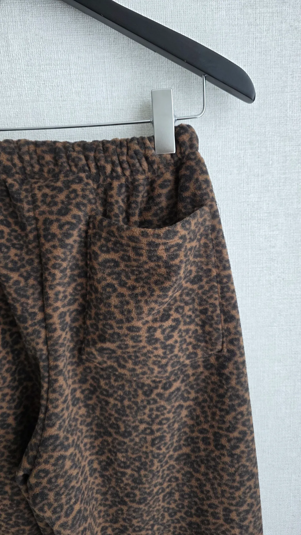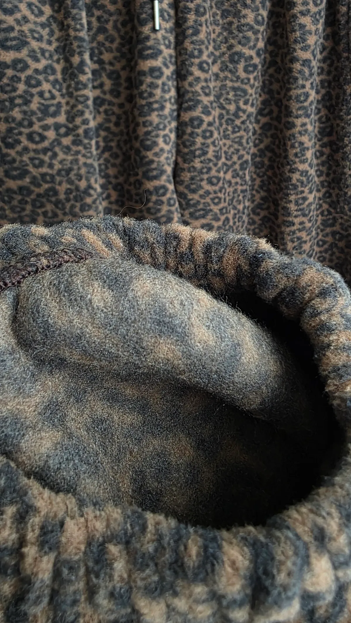 P102993 雙倍厚暖刷毛豹紋縮口褲 黑/咖