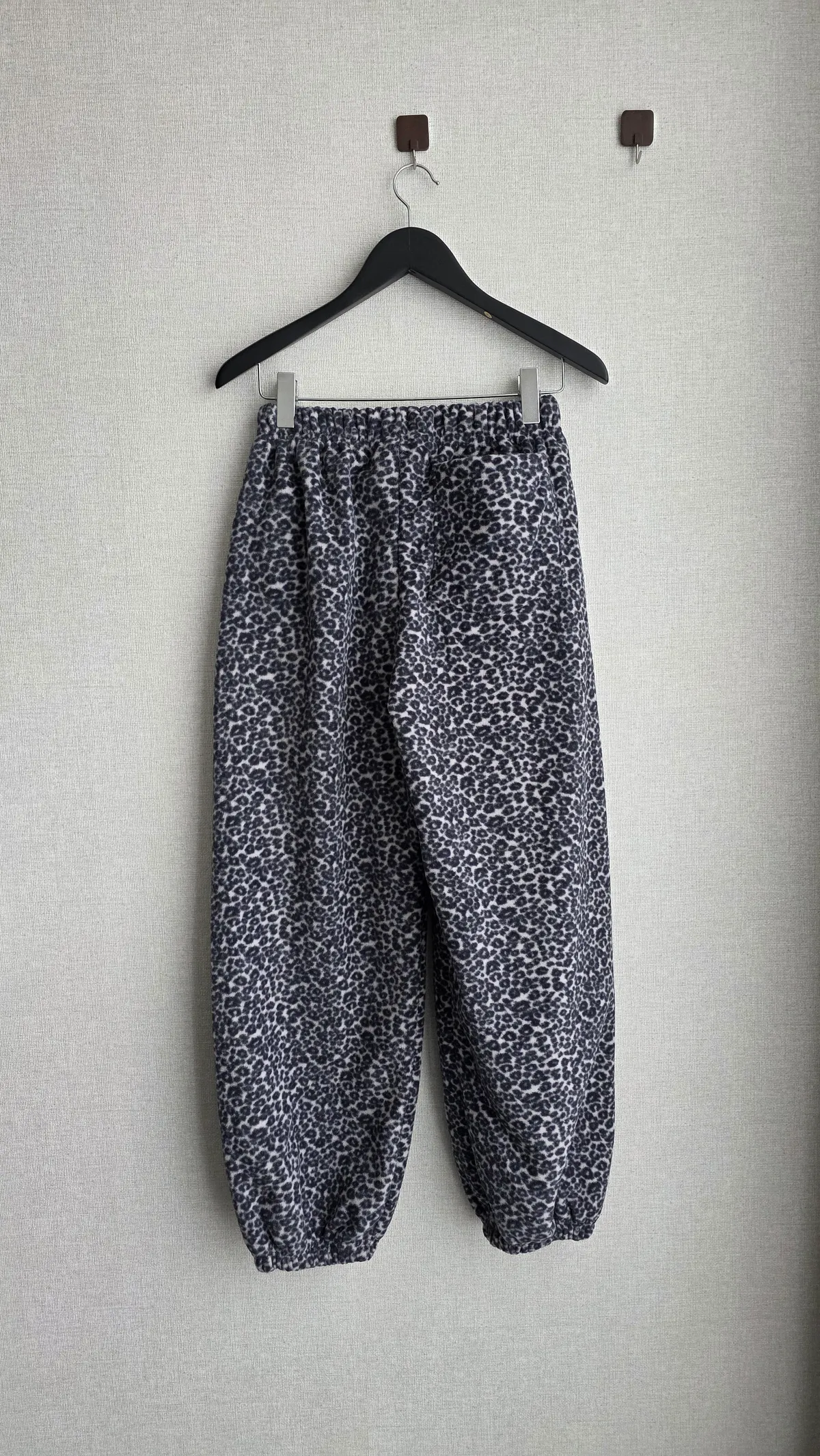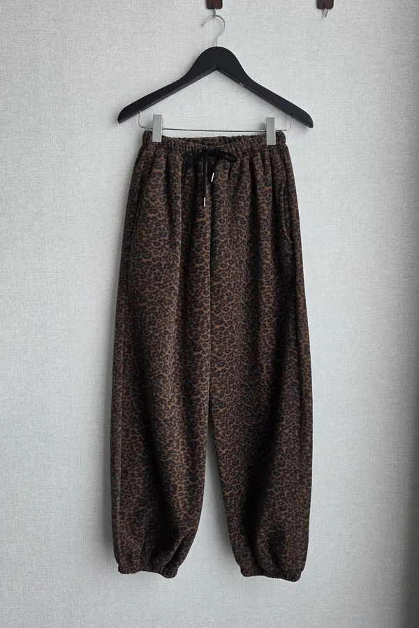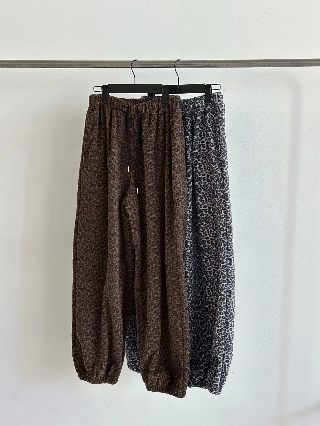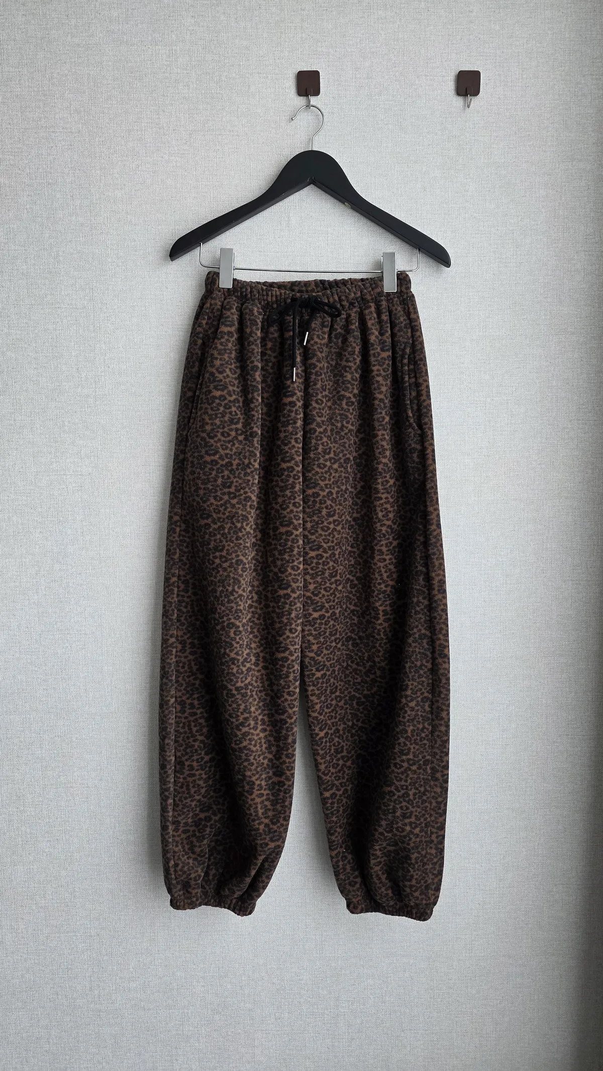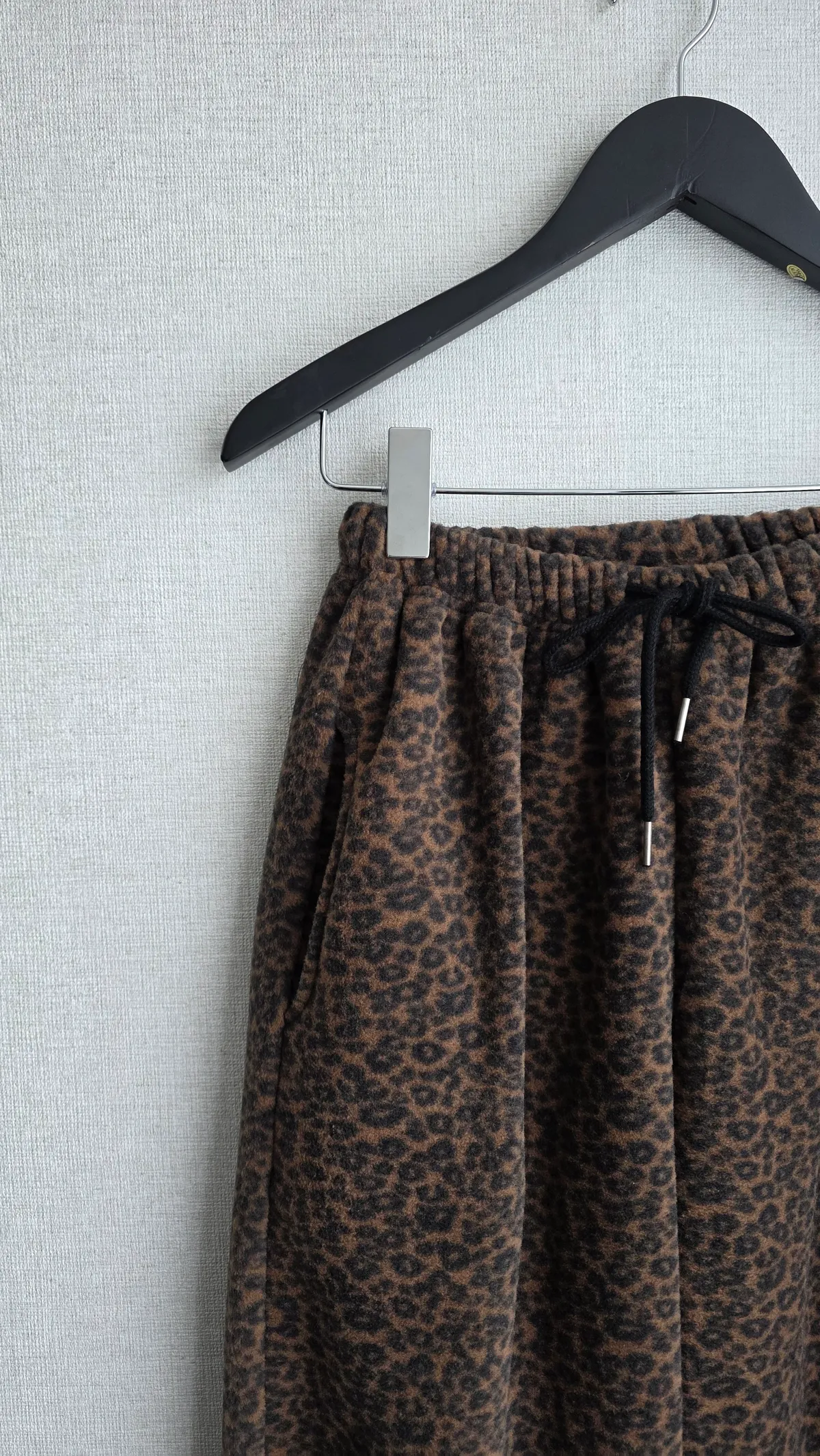 P102993 雙倍厚暖刷毛豹紋縮口褲 黑/咖