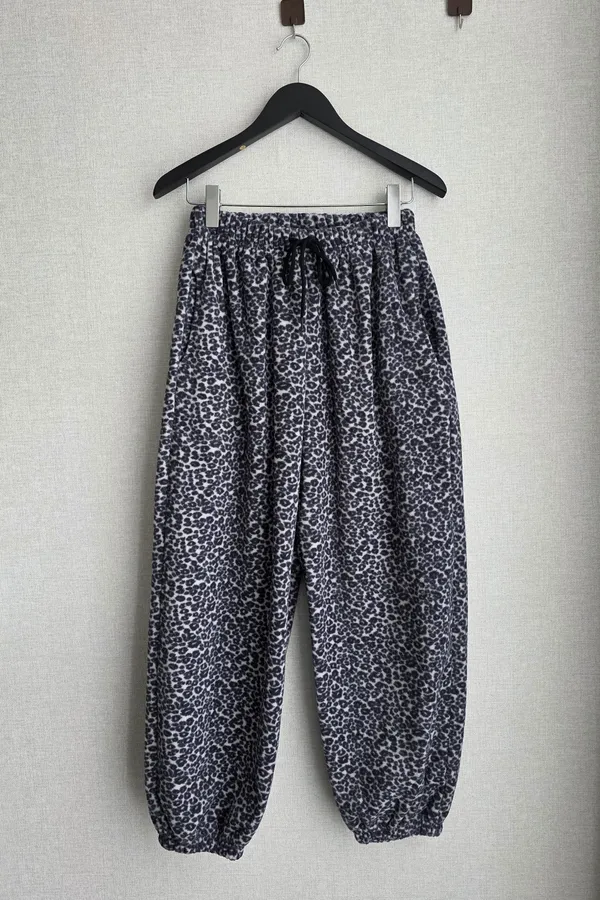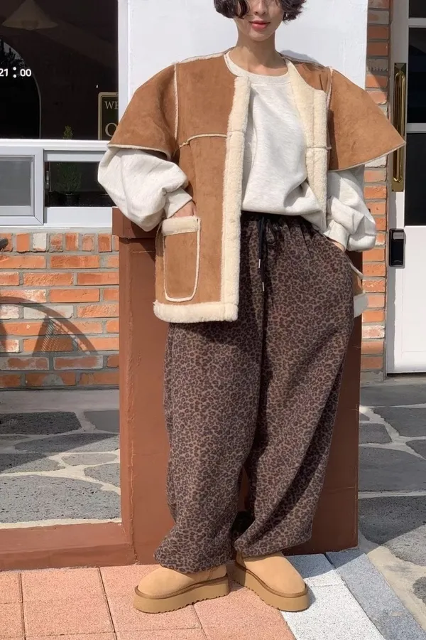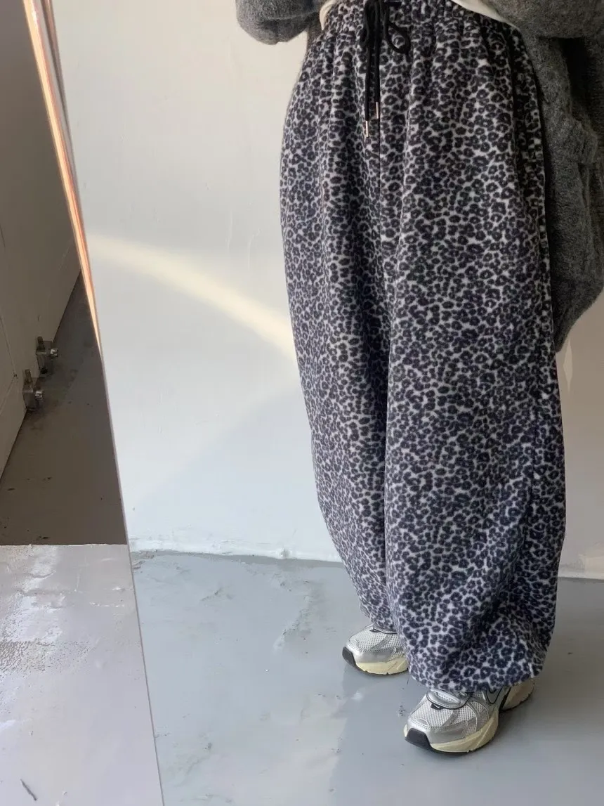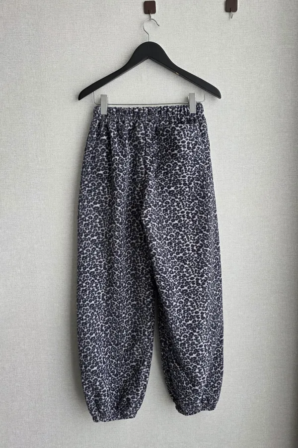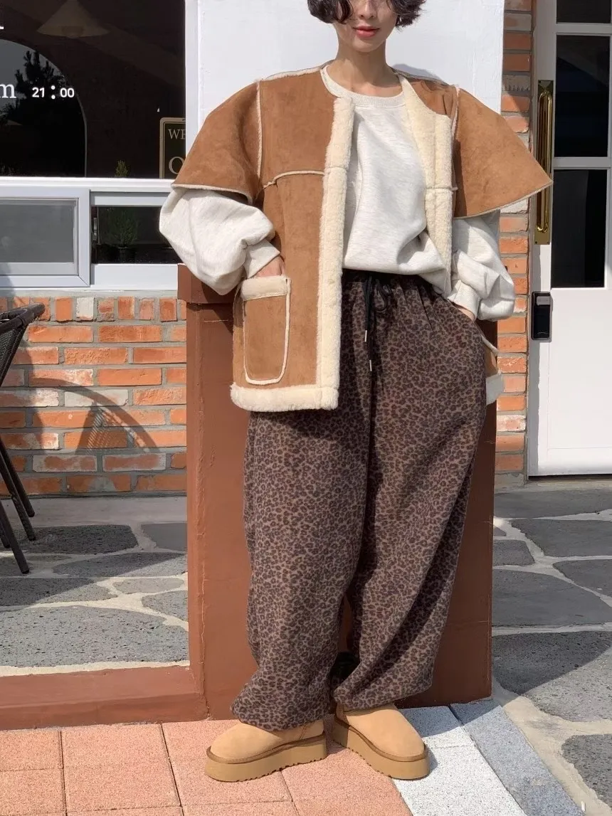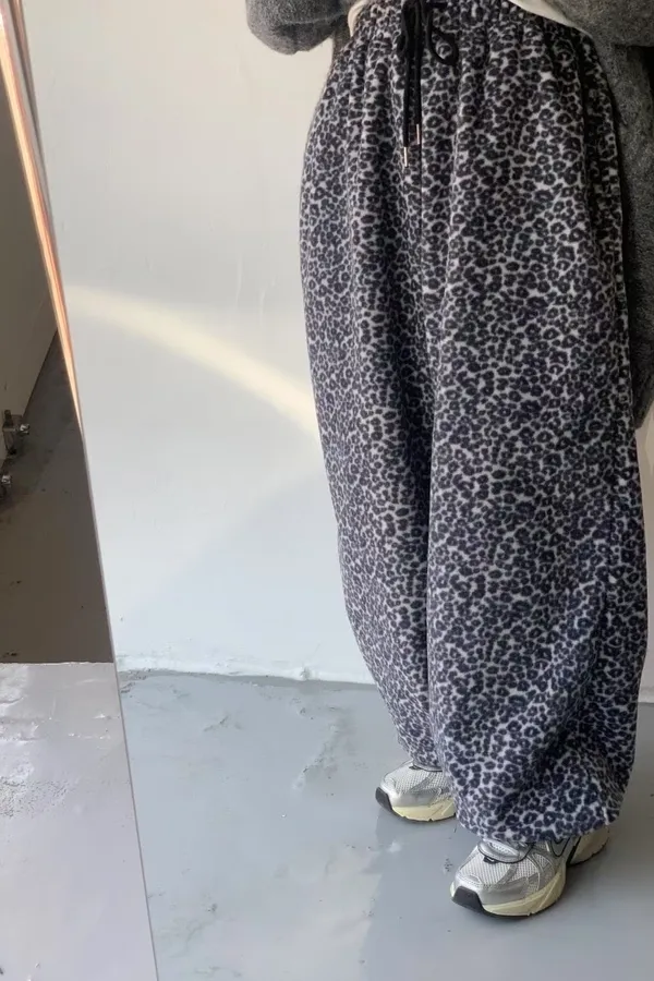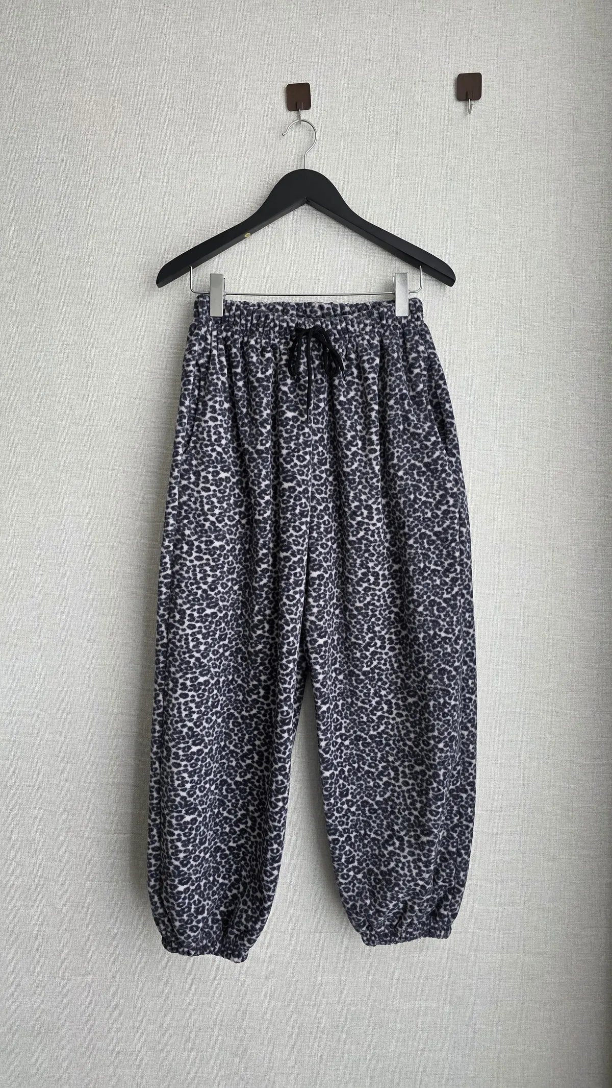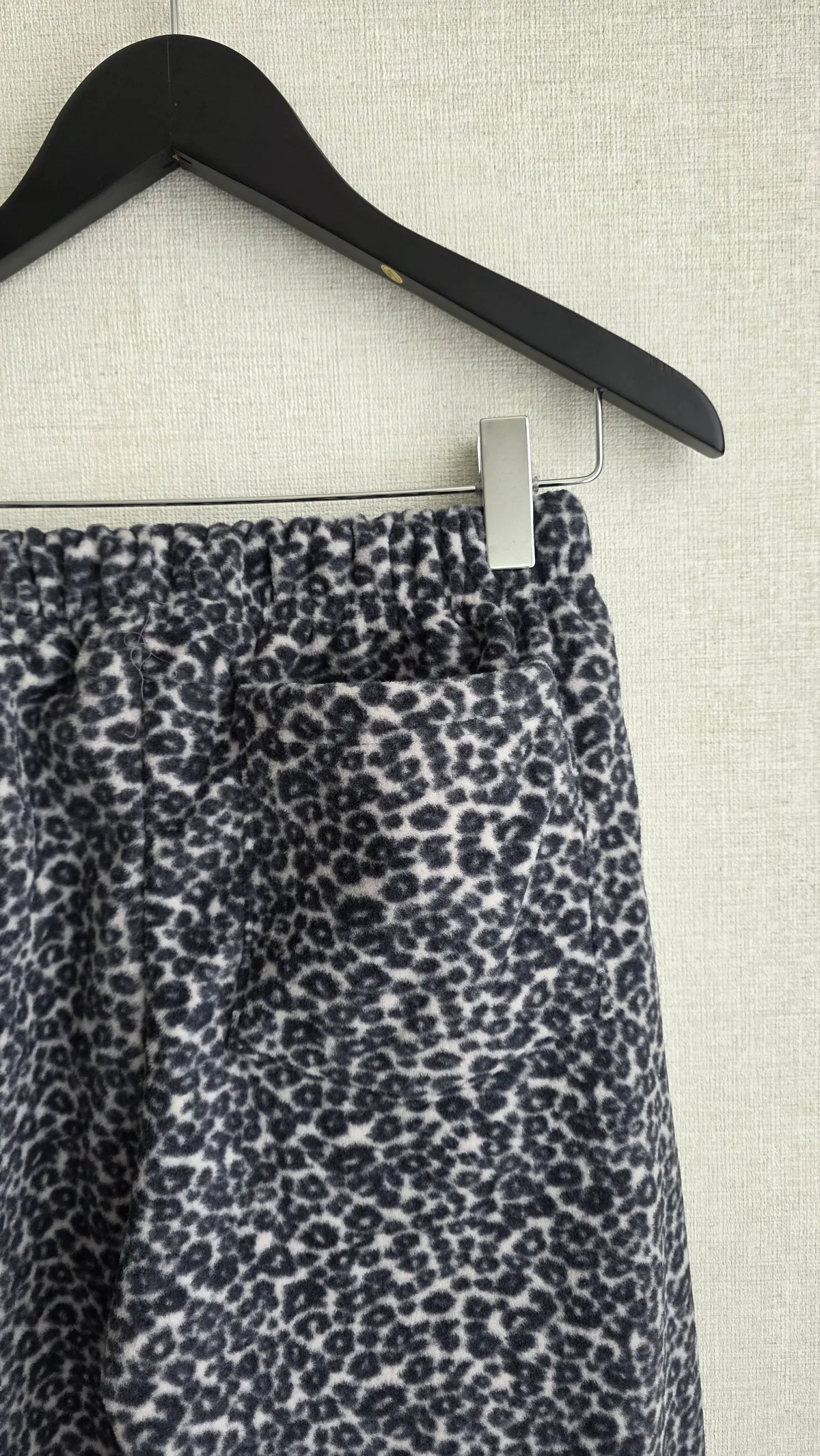P102993 雙倍厚暖刷毛豹紋縮口褲 黑/咖