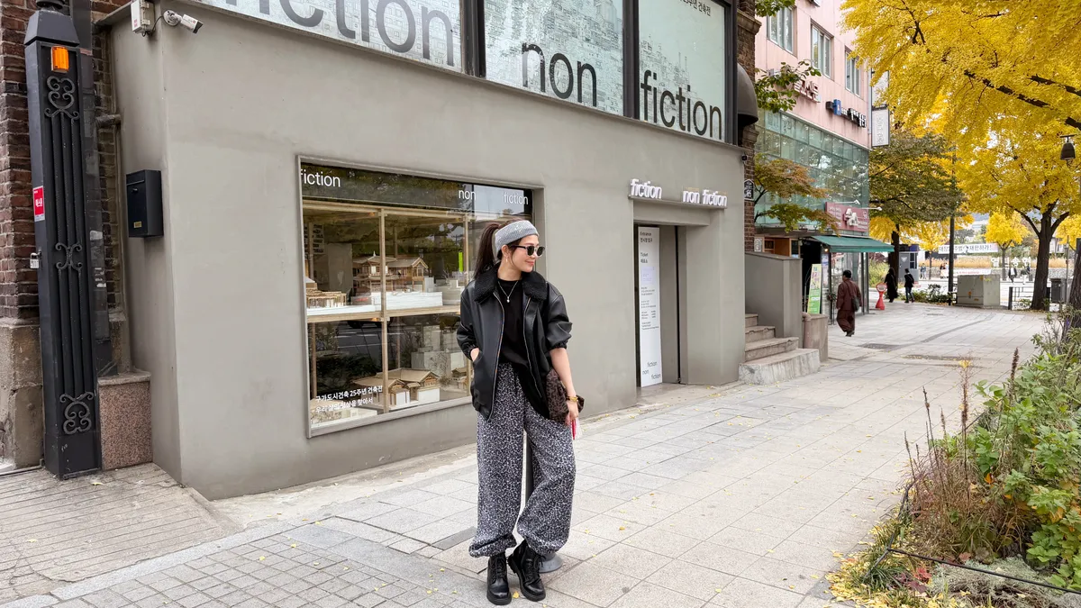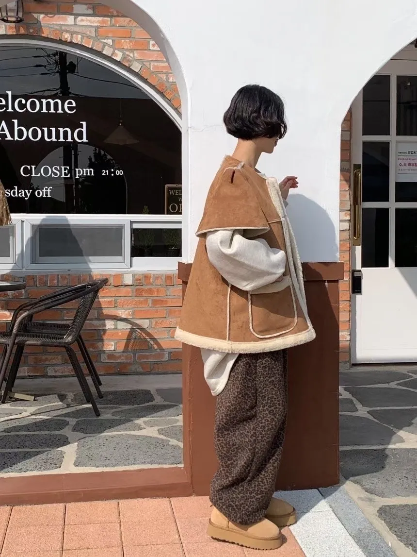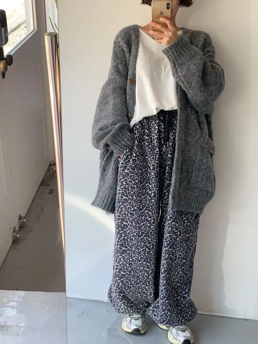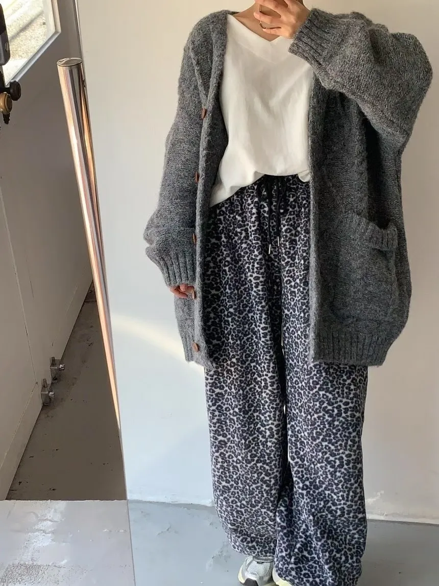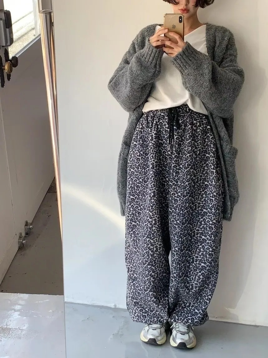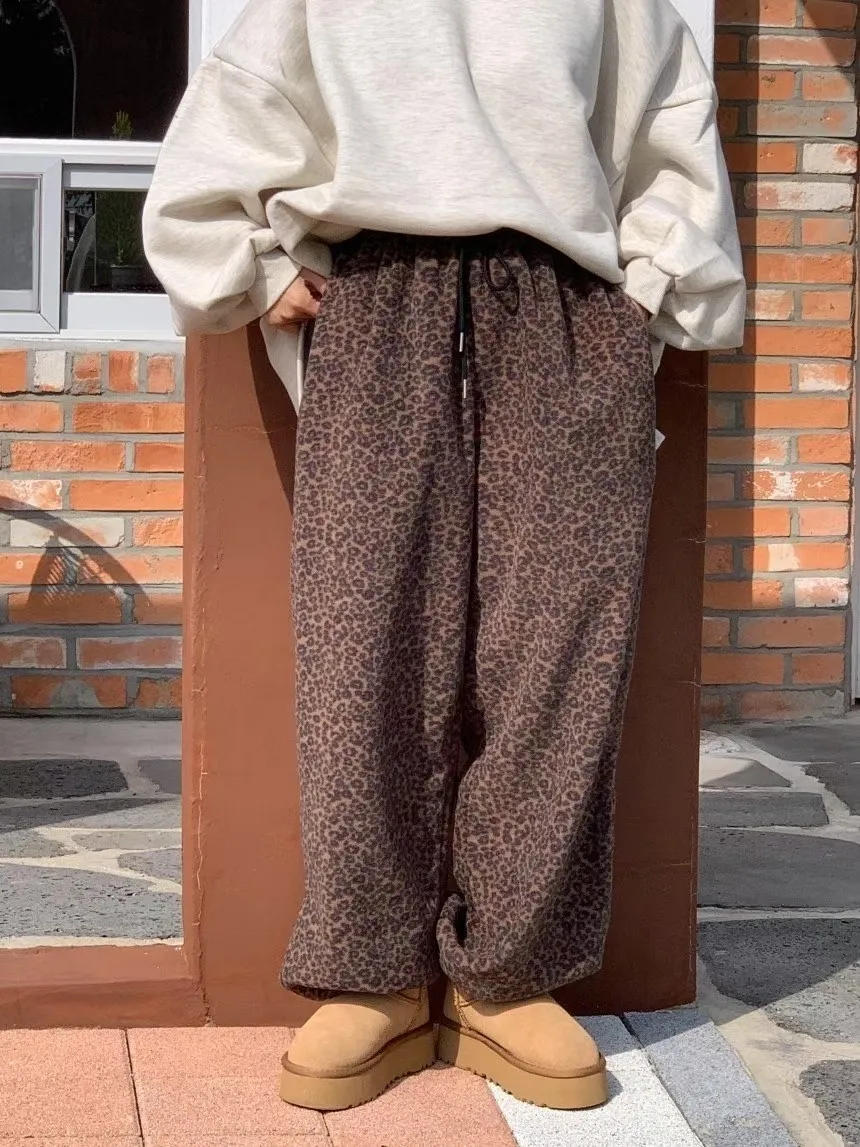 P102993 雙倍厚暖刷毛豹紋縮口褲 黑/咖