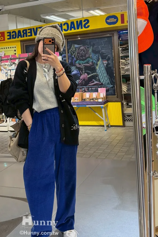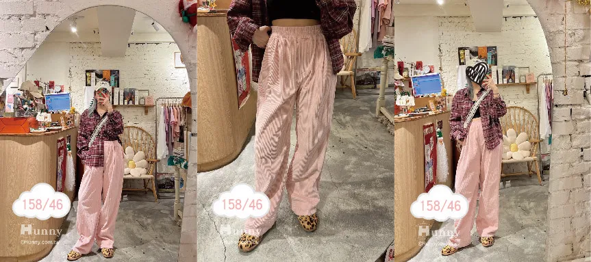 寬褲的版型不會貼腿 所以這件穿起來不會很挑身形喔~