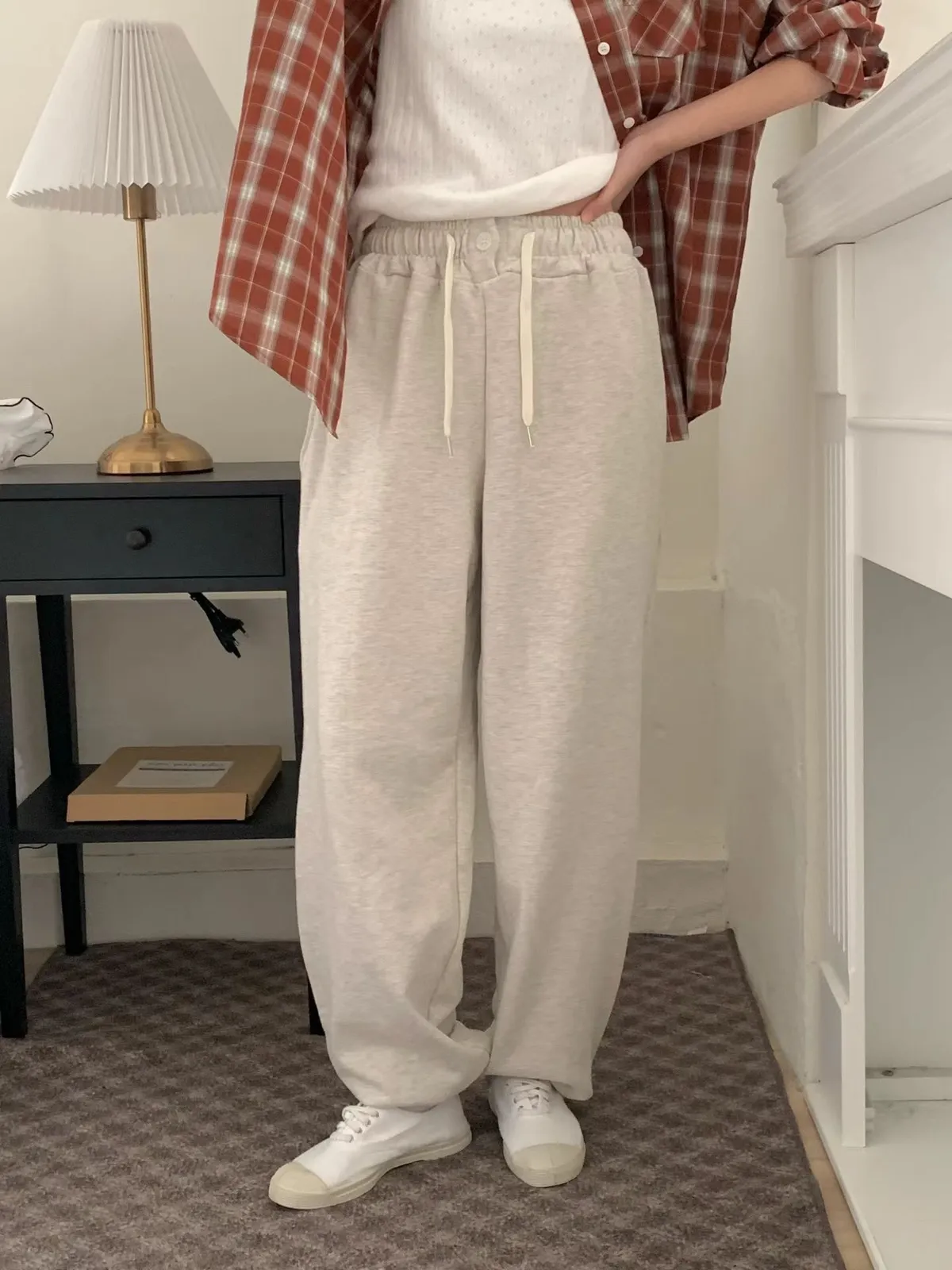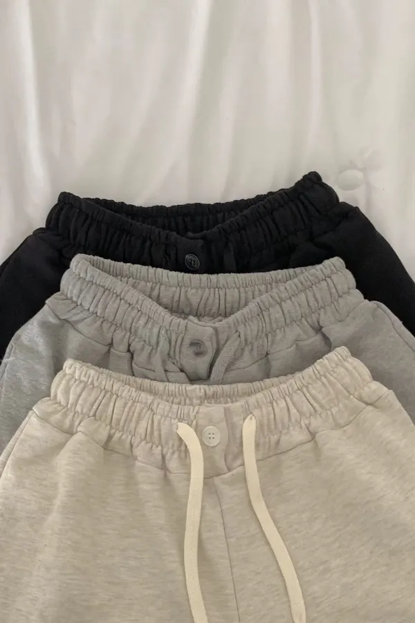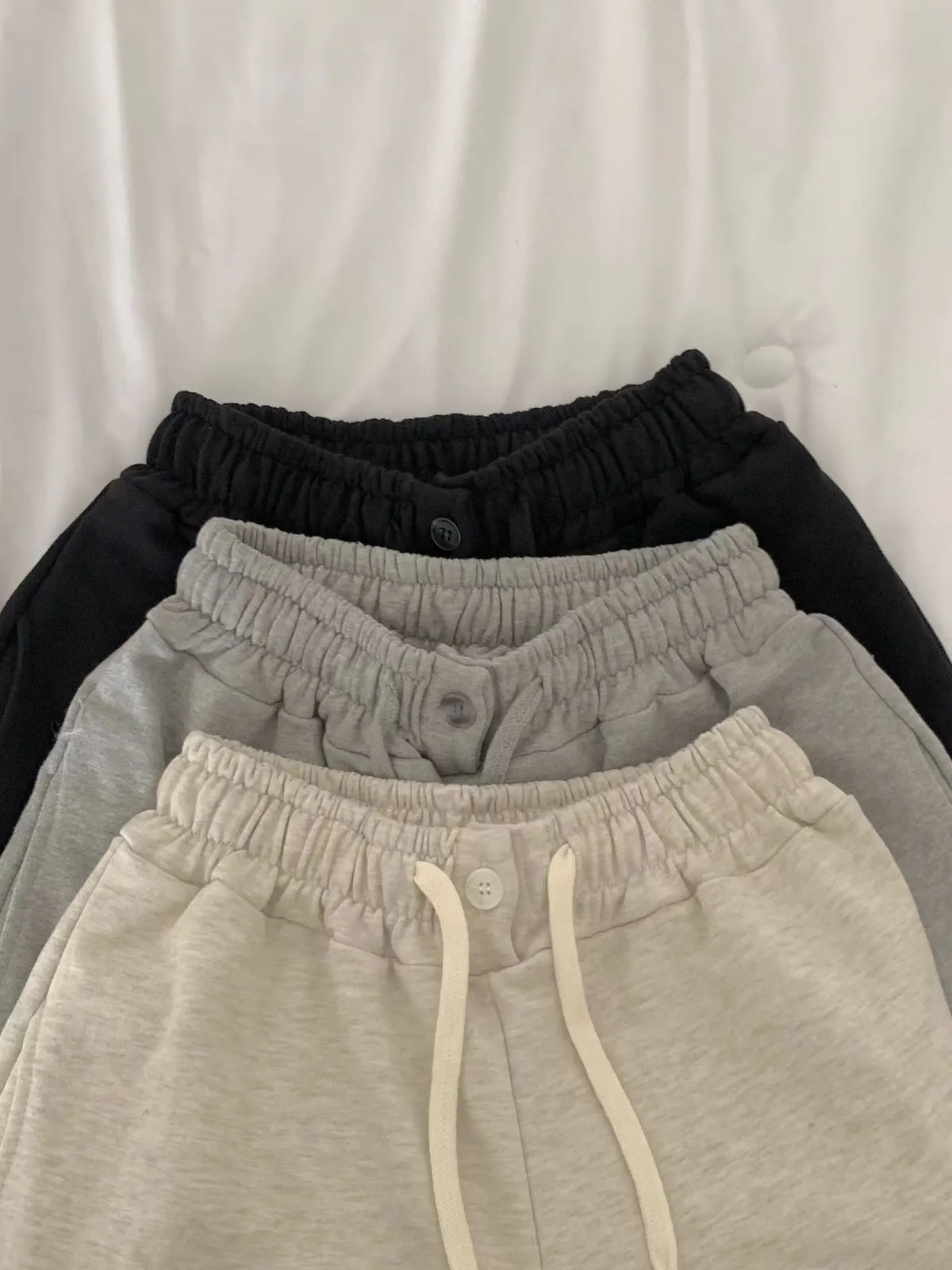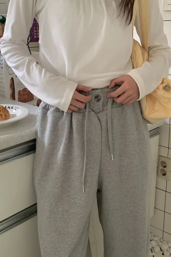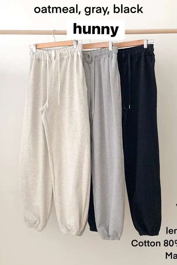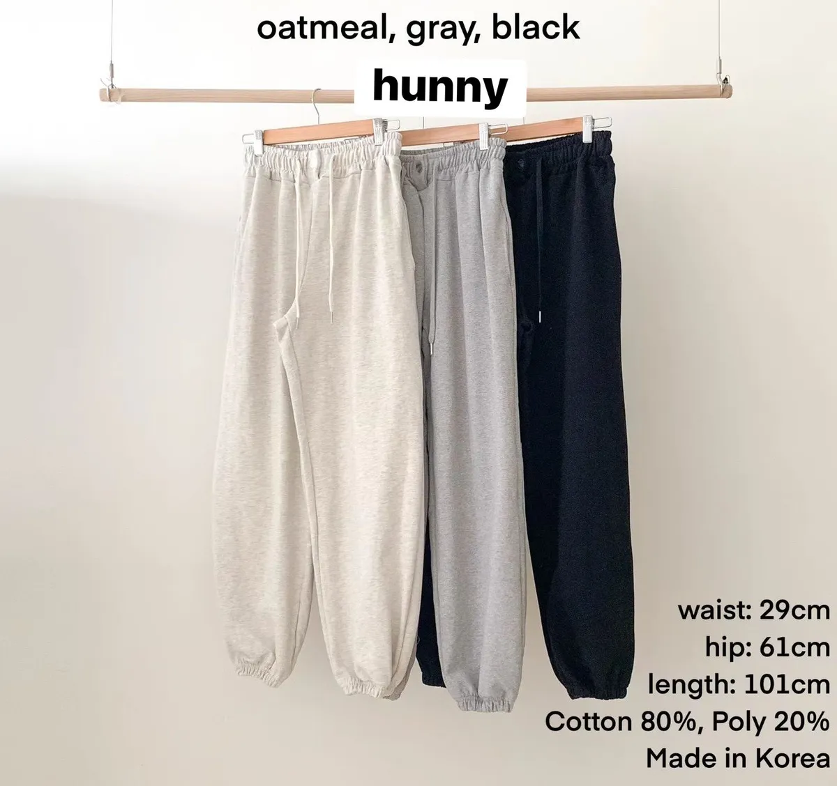 P112813 居然是扣子腰!縮口厚磅數棉褲 黑/灰/雪花米