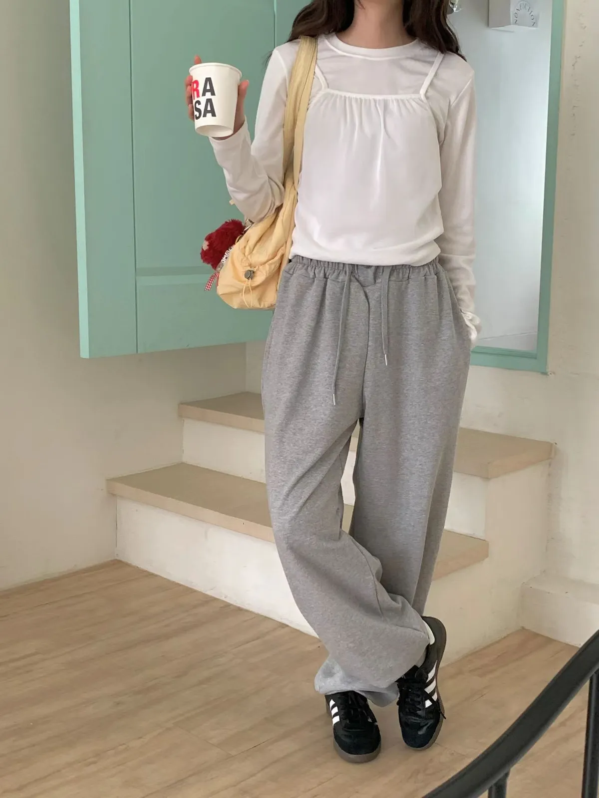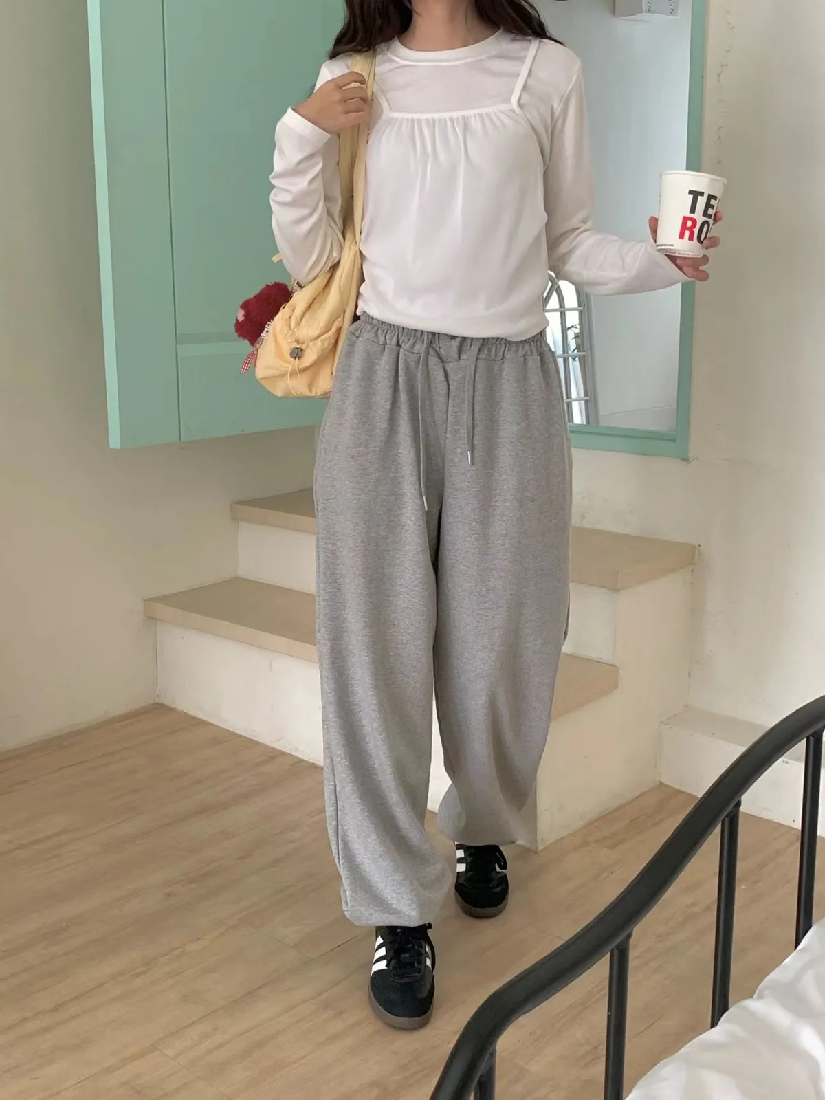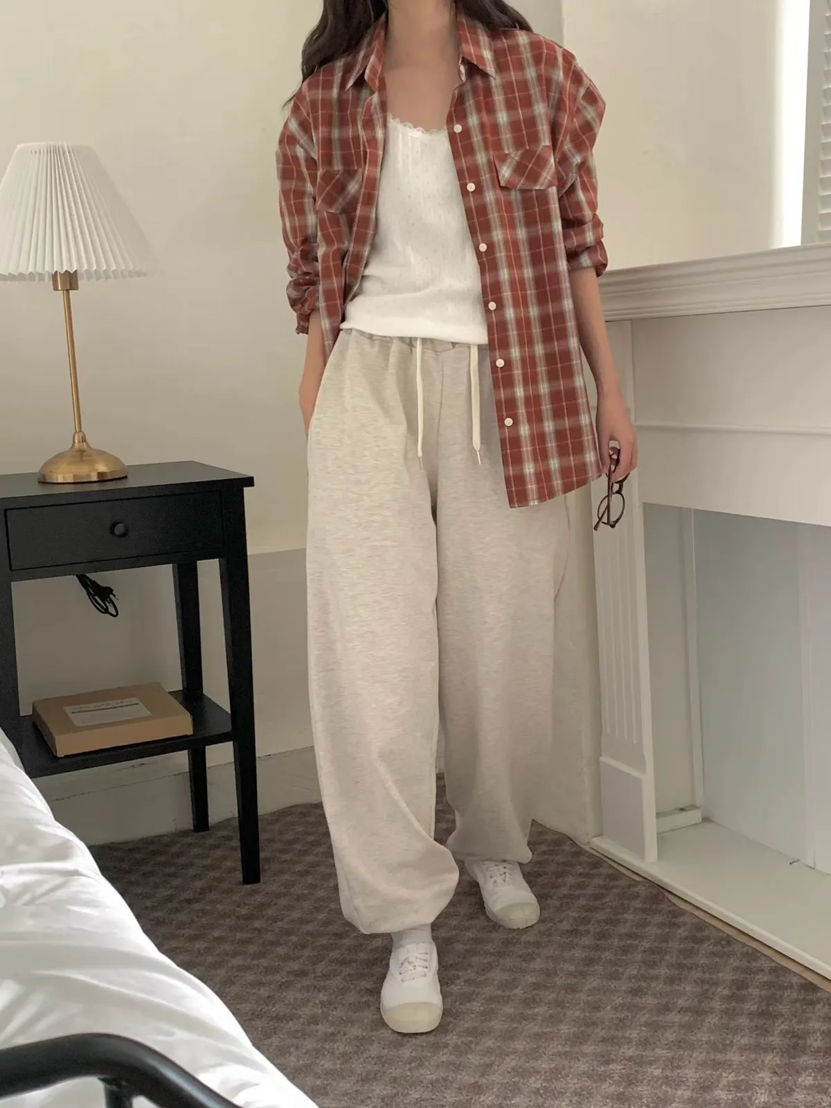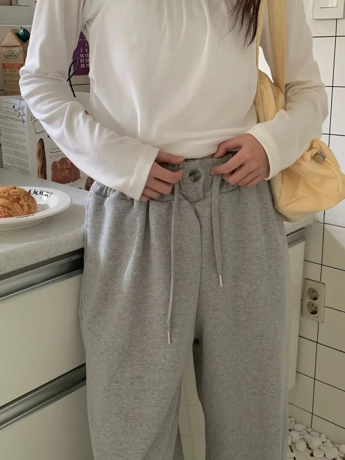 P112813 居然是扣子腰!縮口厚磅數棉褲 黑/灰/雪花米
