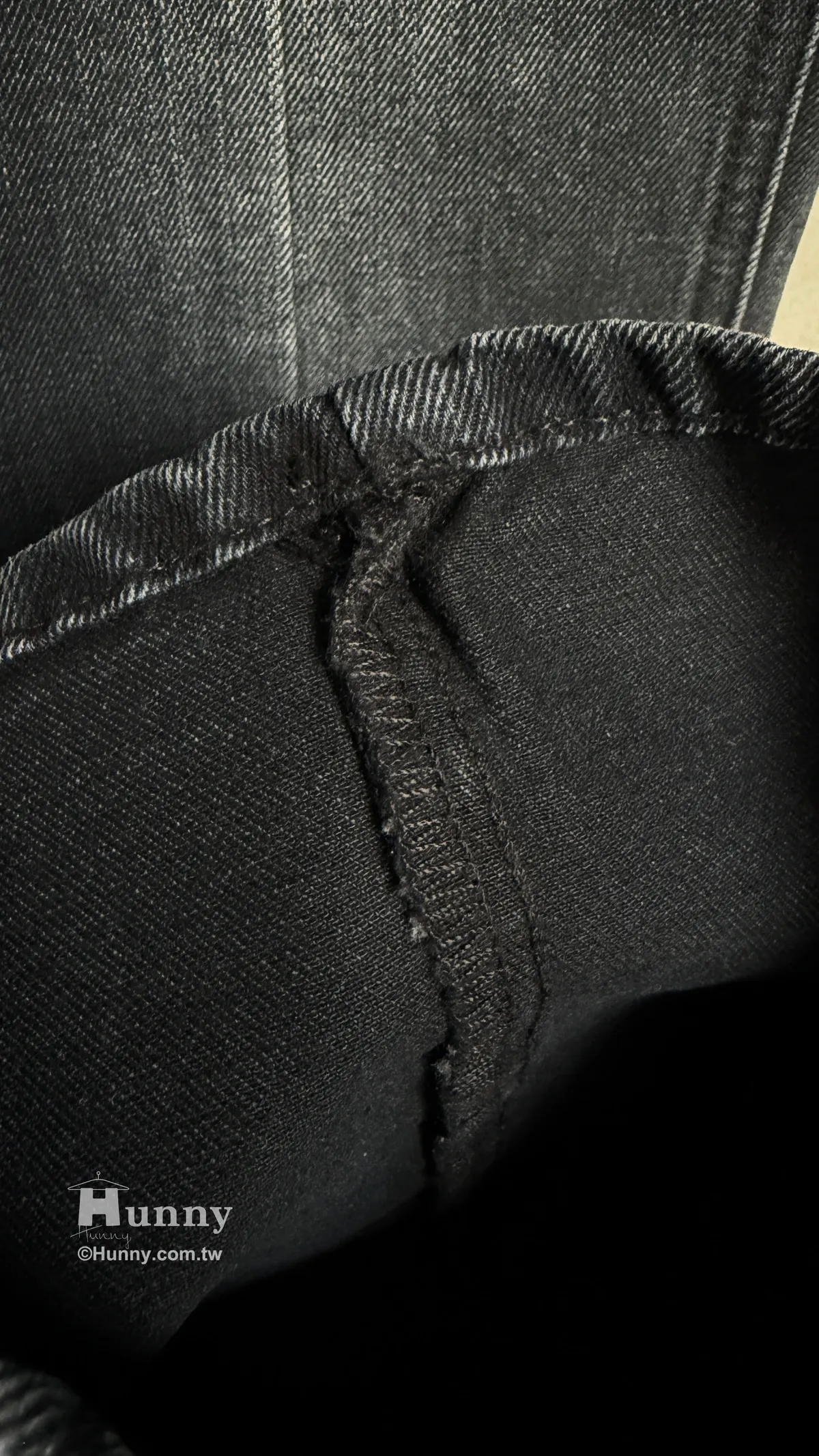 它在褲管的正中間做了一道非常紮實的立體中壓線。