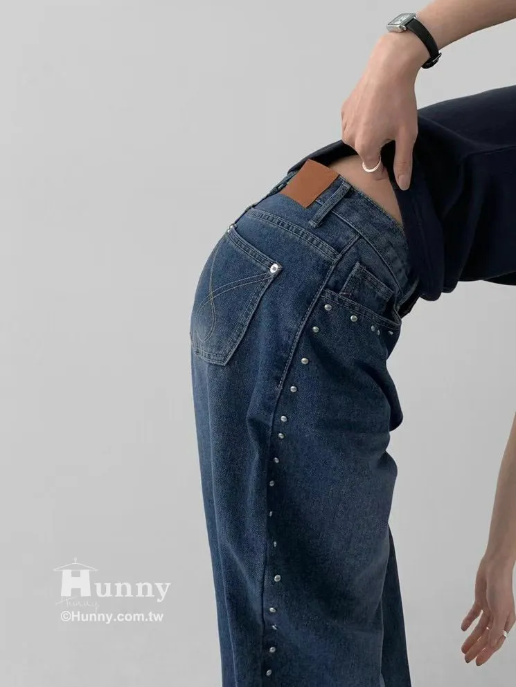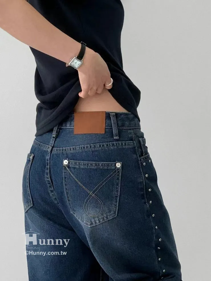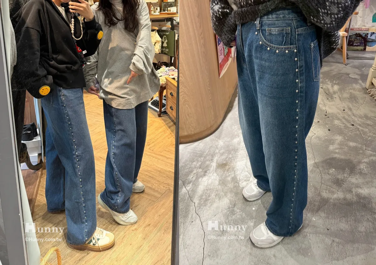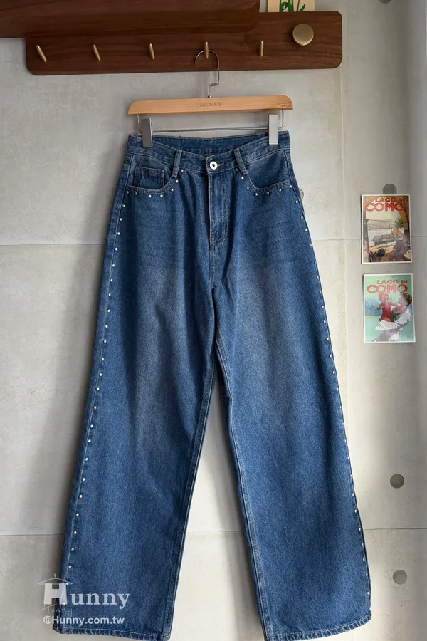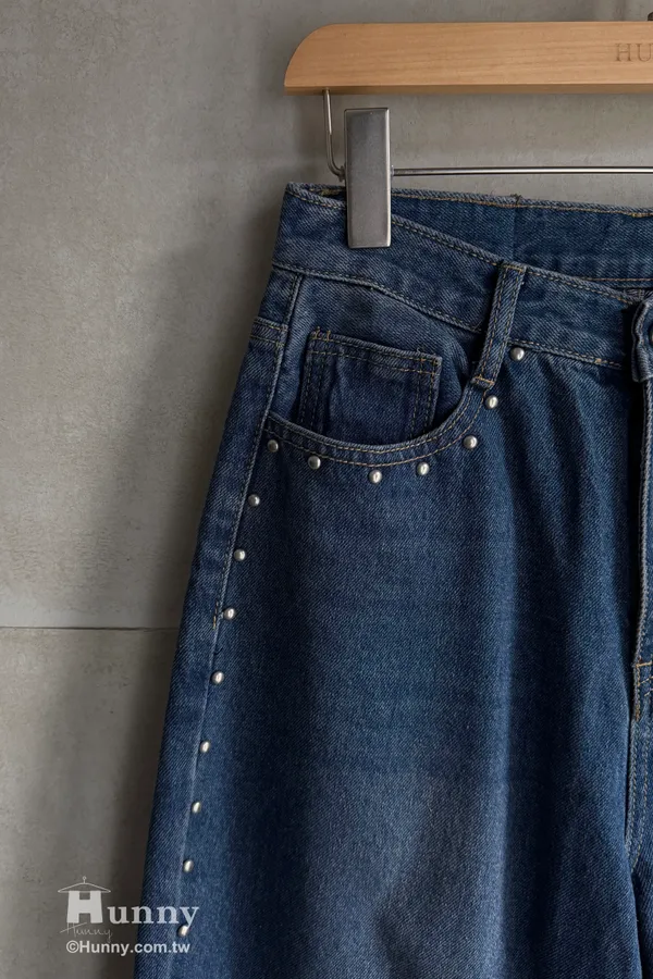這條褲子最精華的地方就在側邊這一排手工感十足的鉚釘。