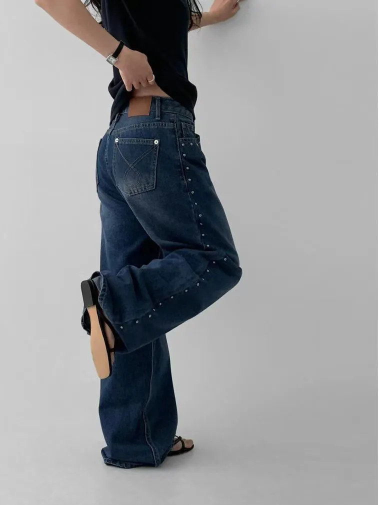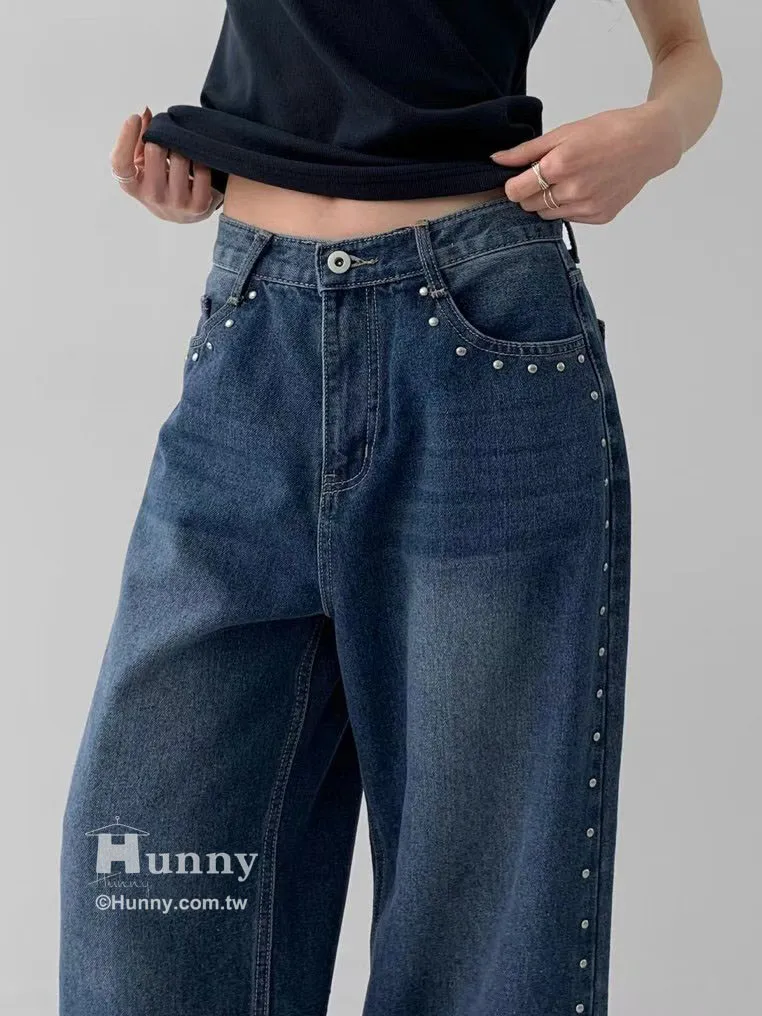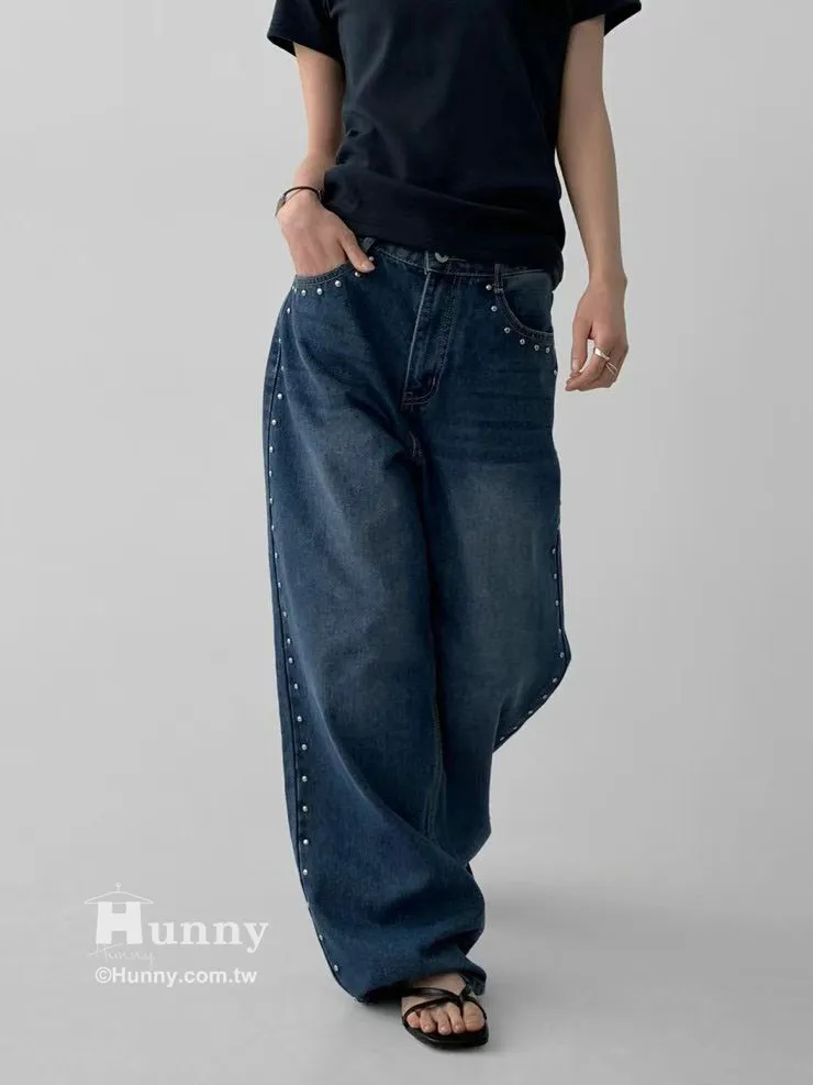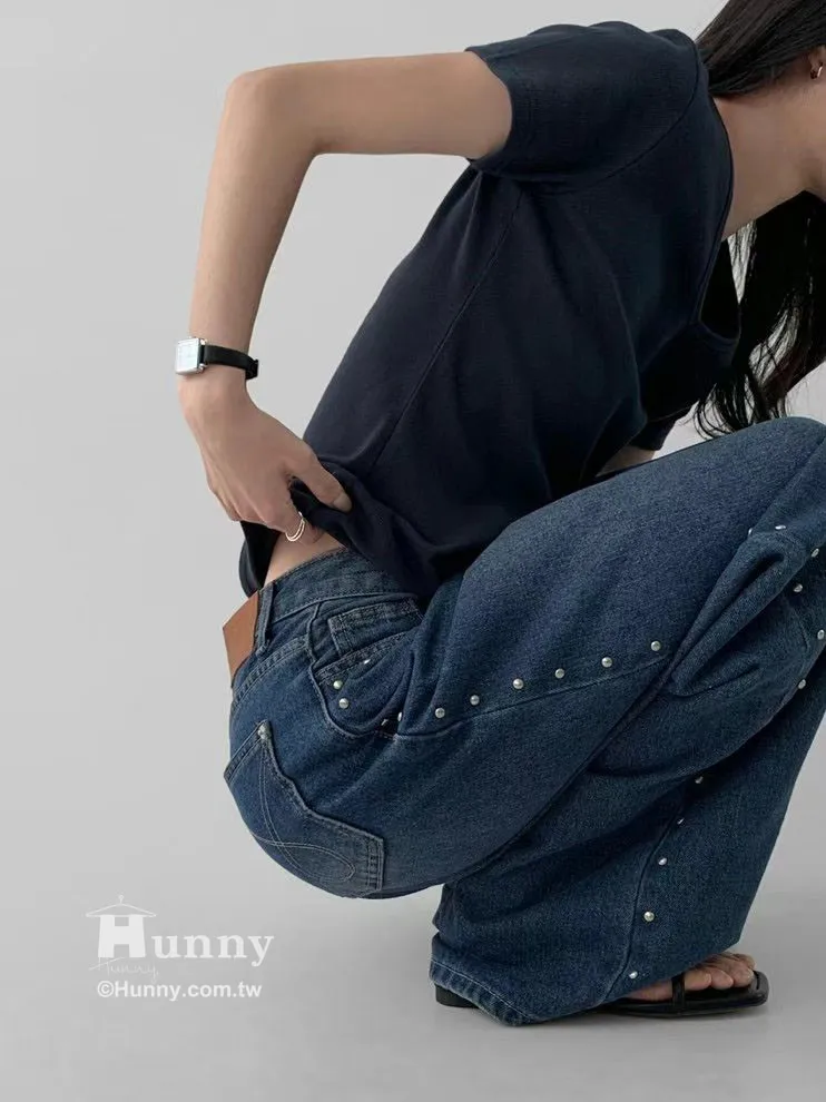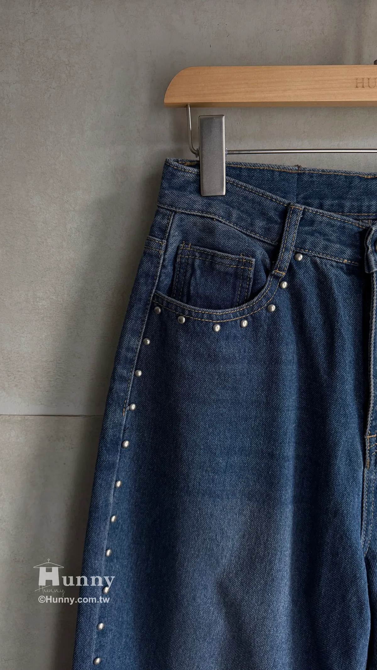 這條褲子最精華的地方就在側邊這一排手工感十足的鉚釘。