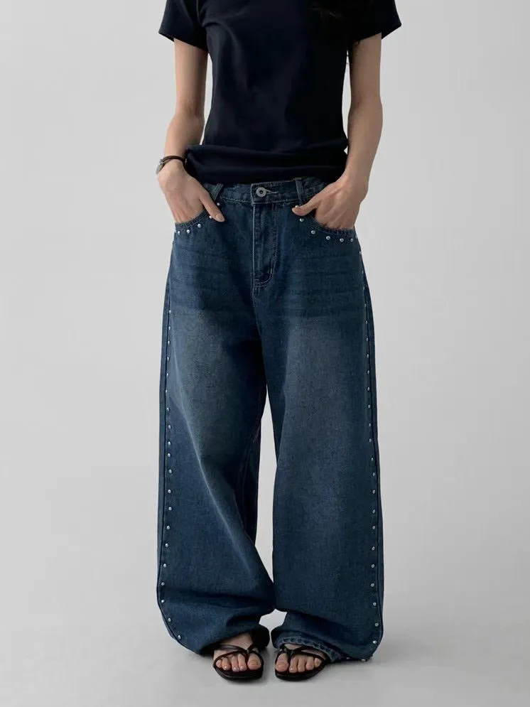 黑灰色的洗水色調配上銀色鉚釘,