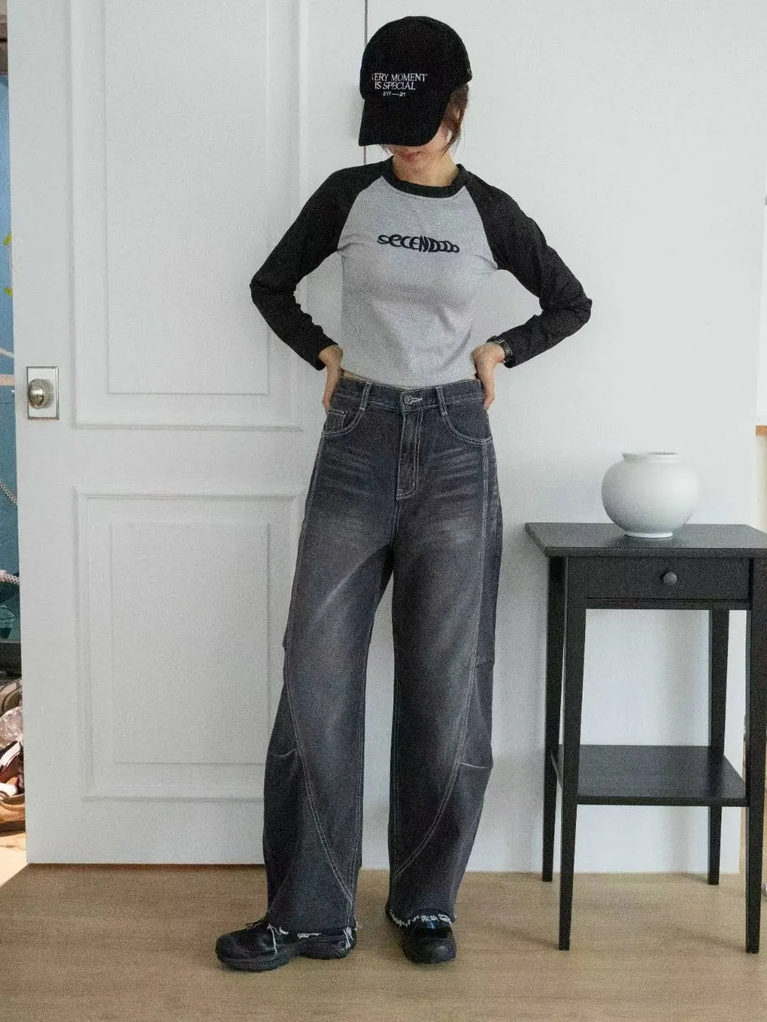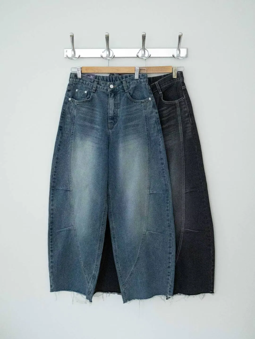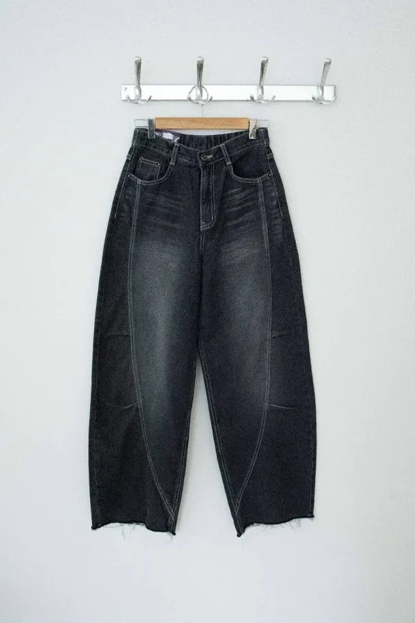 p12814 更好看的3d牛仔彎刀褲 黑/藍 S~XL 黑L現貨